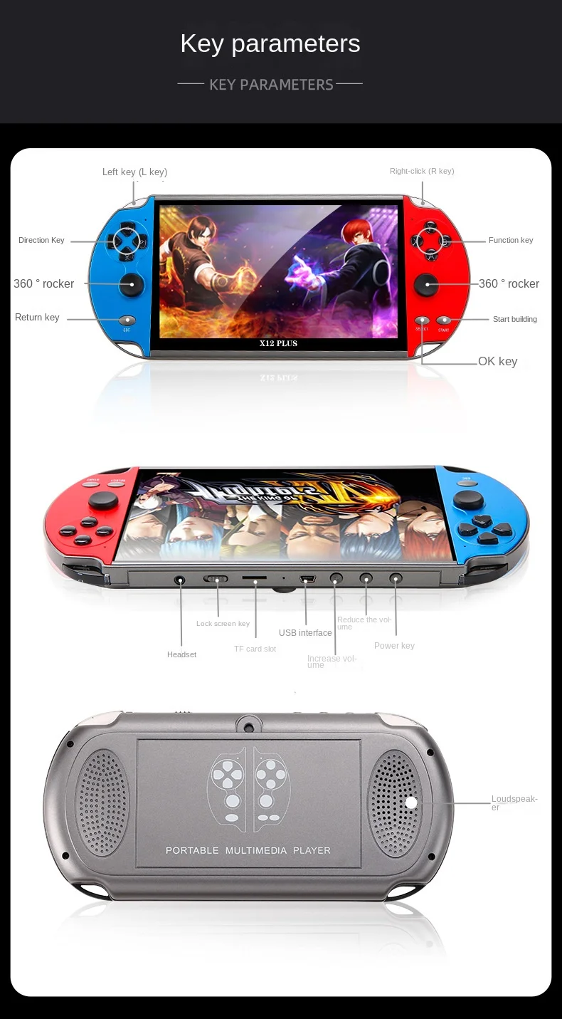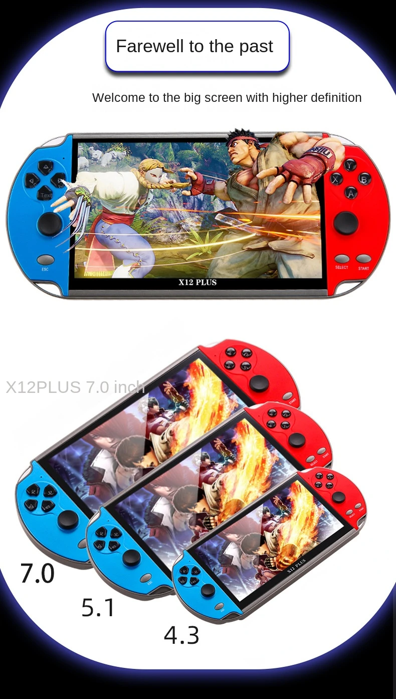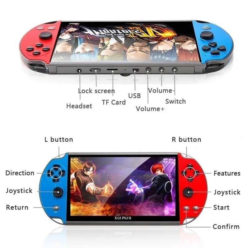 X12 Plus 2+16G Schermo HD da 7 pollici Console di gioco 20000+Giochi Lettore di giochi portatile Retro Classic Console per videogiochi Console PSP 2500mAh Supporto batteria Video MP3 Lettore di e-book Fotocamera Fotografia TV AV