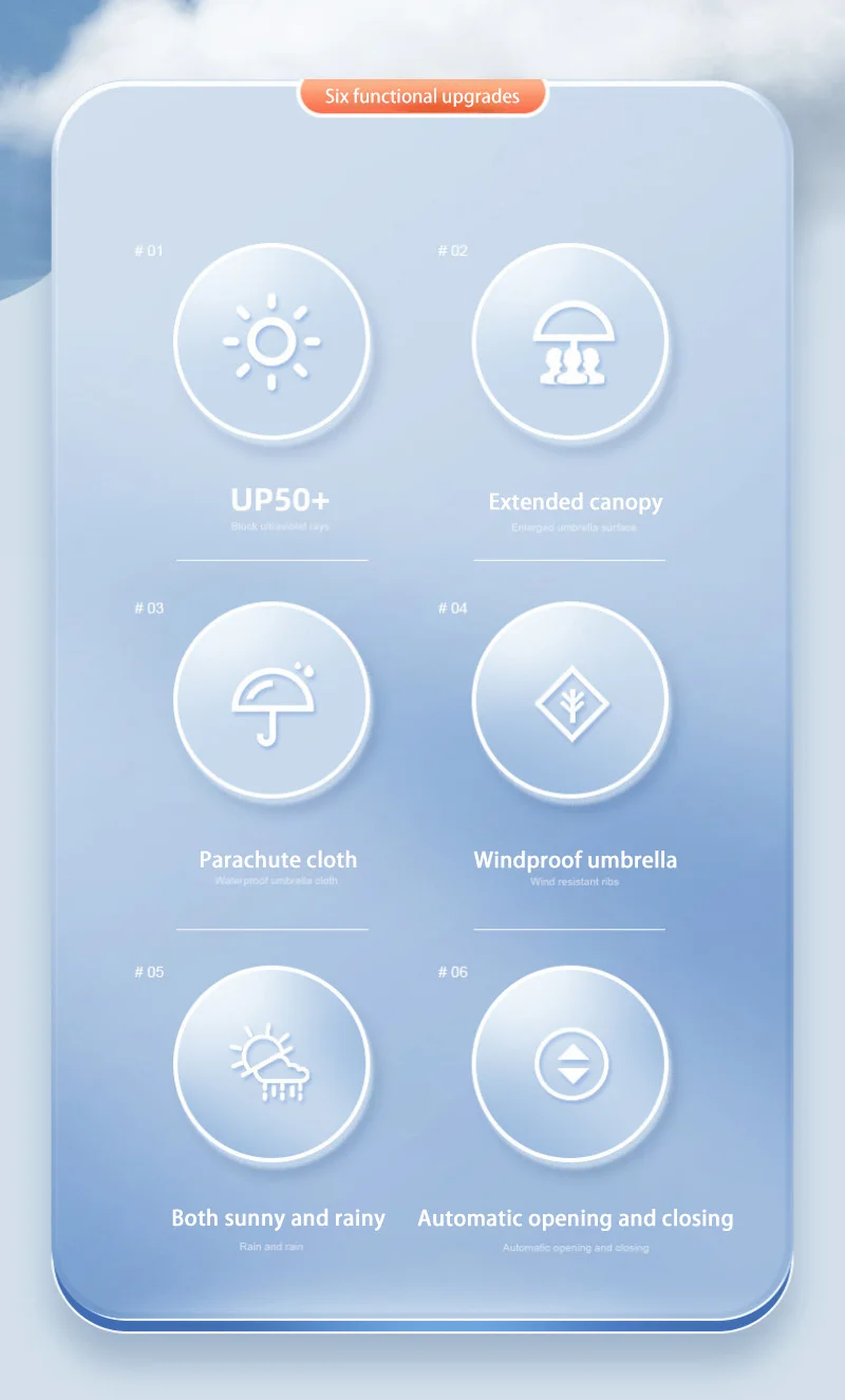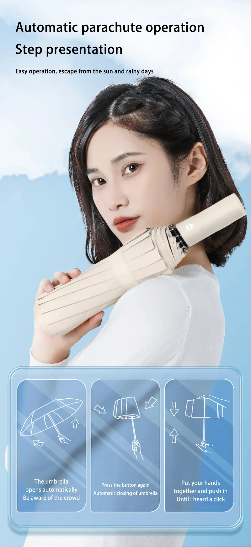 Esperienza tattile con apertura e chiusura: apertura e chiusura completamente automatica, apertura e chiusura con un clic sui ombrelli, facile da retrattarsi e rilasciare, abbandonare la sensazione di plastica economica, utilizzando materiale ABS per portare una pelle come al tatto.