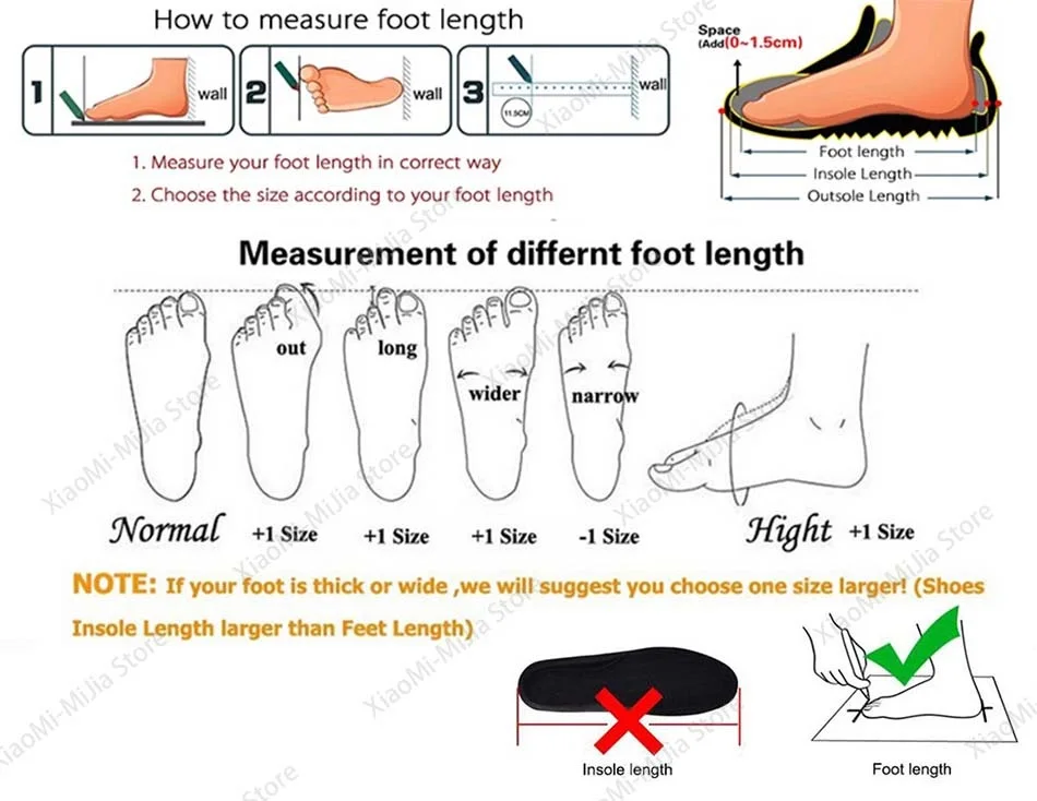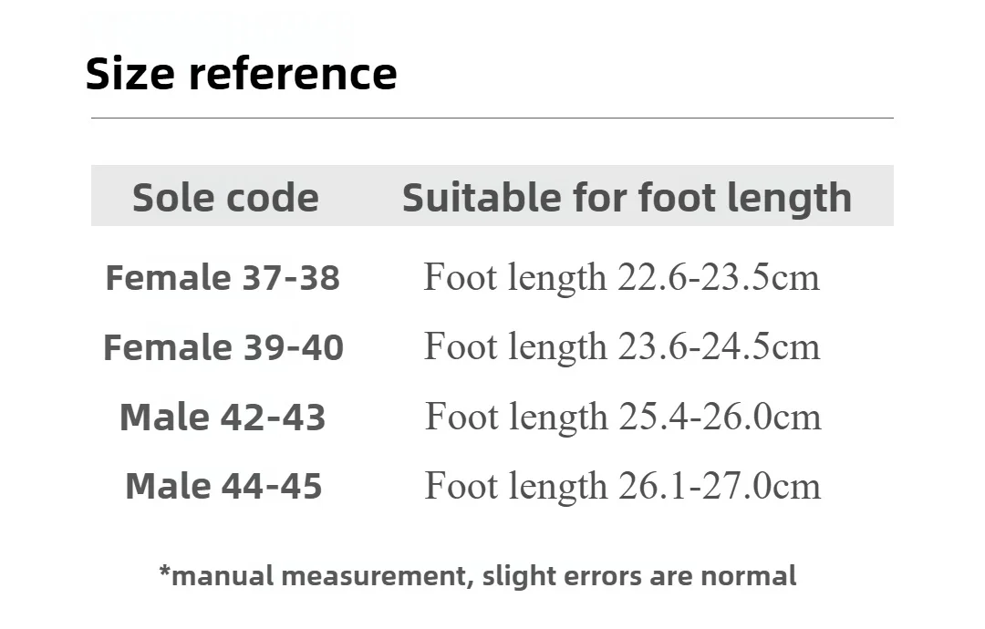1.Misura la lunghezza dei tuoi piedi seguendo le istruzioni seguenti.2.Fai riferimento alla nostra tabella delle taglie per vedere quale taglia corrisponde alla lunghezza dei tuoi piedi.3.Se uno dei tuoi piedi è più grande o più lungo di un altro, devi scegliere la taglia adatta al tuo piede più grande.4.Se il collo del piede o il piede sono più grandi del solito, ti consigliamo di acquistare una taglia più grande.5.Tieni presente che potrebbe verificarsi una discrepanza se utilizzi il metodo di misurazione sbagliato.