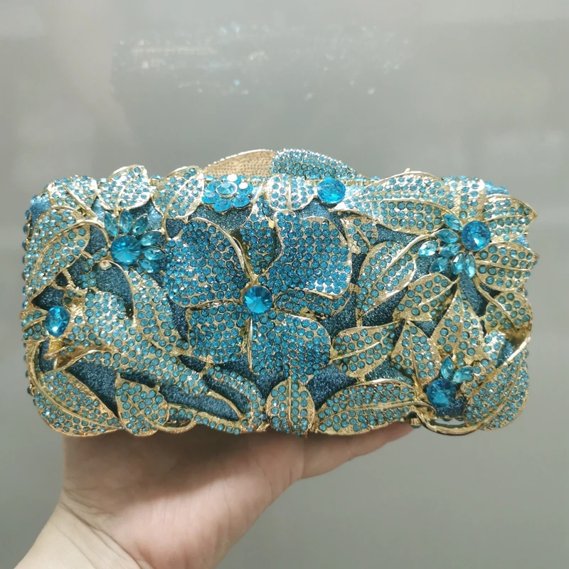XIYUAN Borse da sera a fiori da donna scavate Pochette in cristallo Borsa da sposa in pietra e borsetta Borsa Minaudiere per cena da sposa