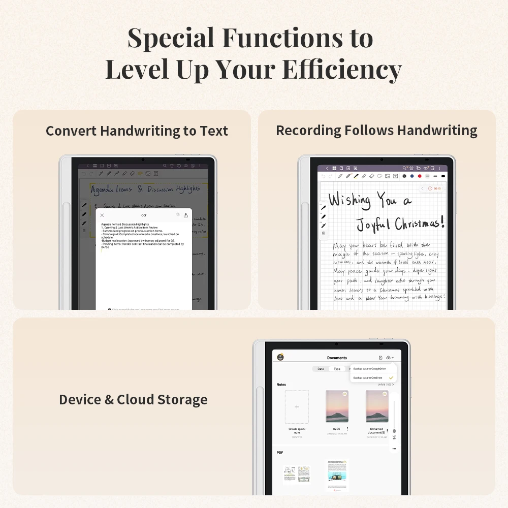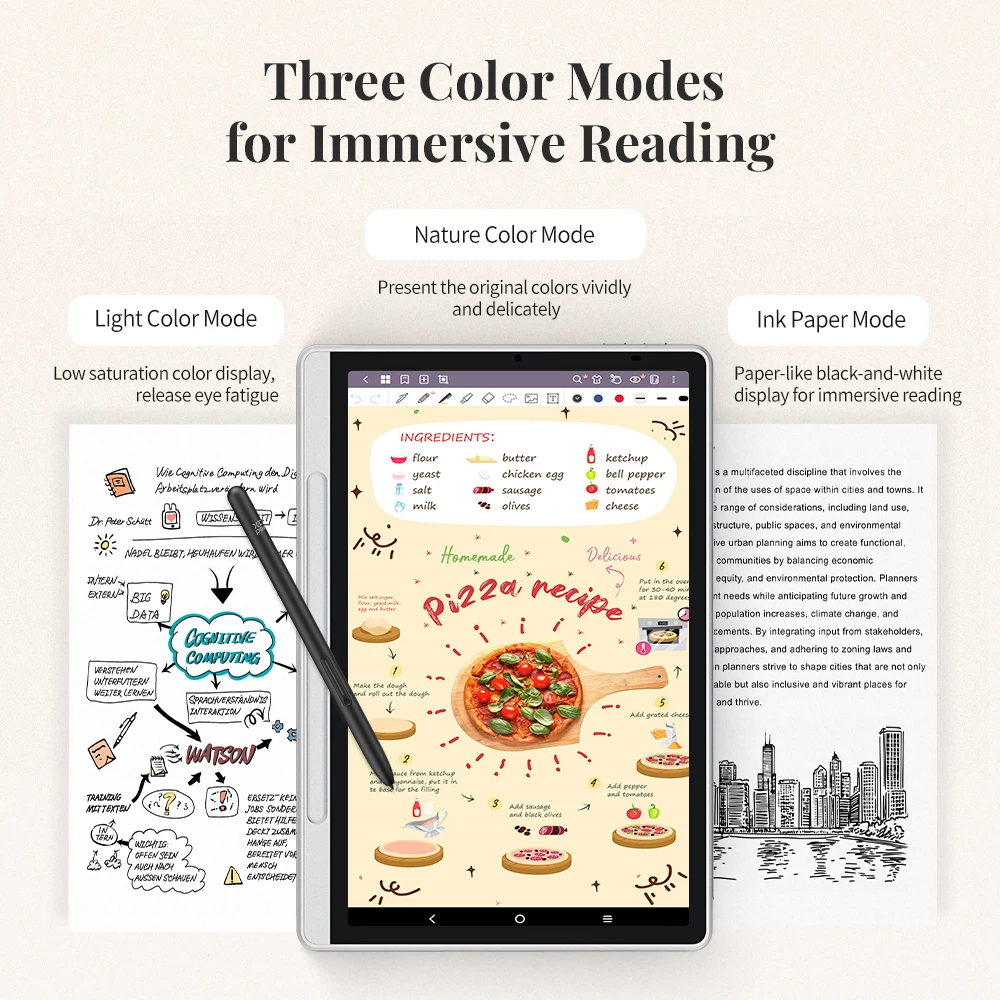 Il display X-Paper AG nano inciso da 10,95 pollici riduce significativamente il riflessione e l’abbagliamento, che fornisce un’esperienza visiva simile alla carta.Le tre modalità colore e un alto tasso di aggiornamento offrono un’immagine di alta qualità per un’esperienza di lettura e scrittura confortevole.