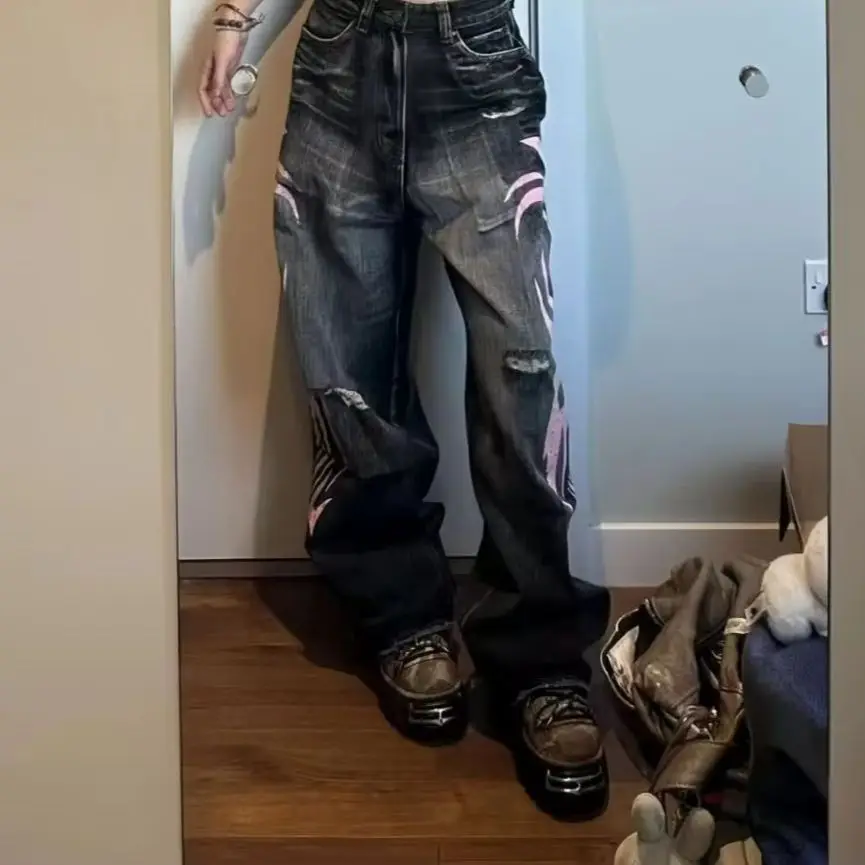 I jeans stampati rosa sono un perfetto esempio di stile dolce e cool. Mi piacciono così tanto. I dettagli dei jeans lavati e invecchiati sono ben lavorati e ci sono buchi nel design. Lo stile street trendy piace alle persone a prima vista. L’importante è che il venditore spedisca la merce molto velocemente, quindi non devo aspettare molto tempo per ricevere il mio pacco.