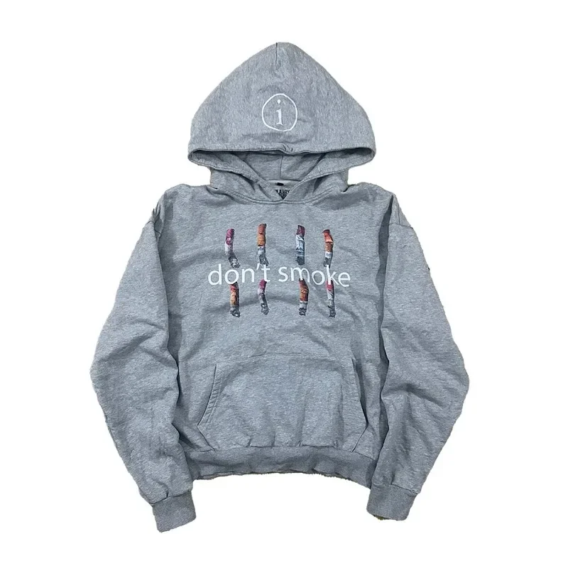 Y2K Felpa con cappuccio sportiva grigia Maglione con stampa fumo retrò Uomo Donna Nuova moda Vintage Classic Hip Hop Streetwear Abbigliamento Giacca ampia