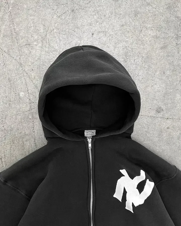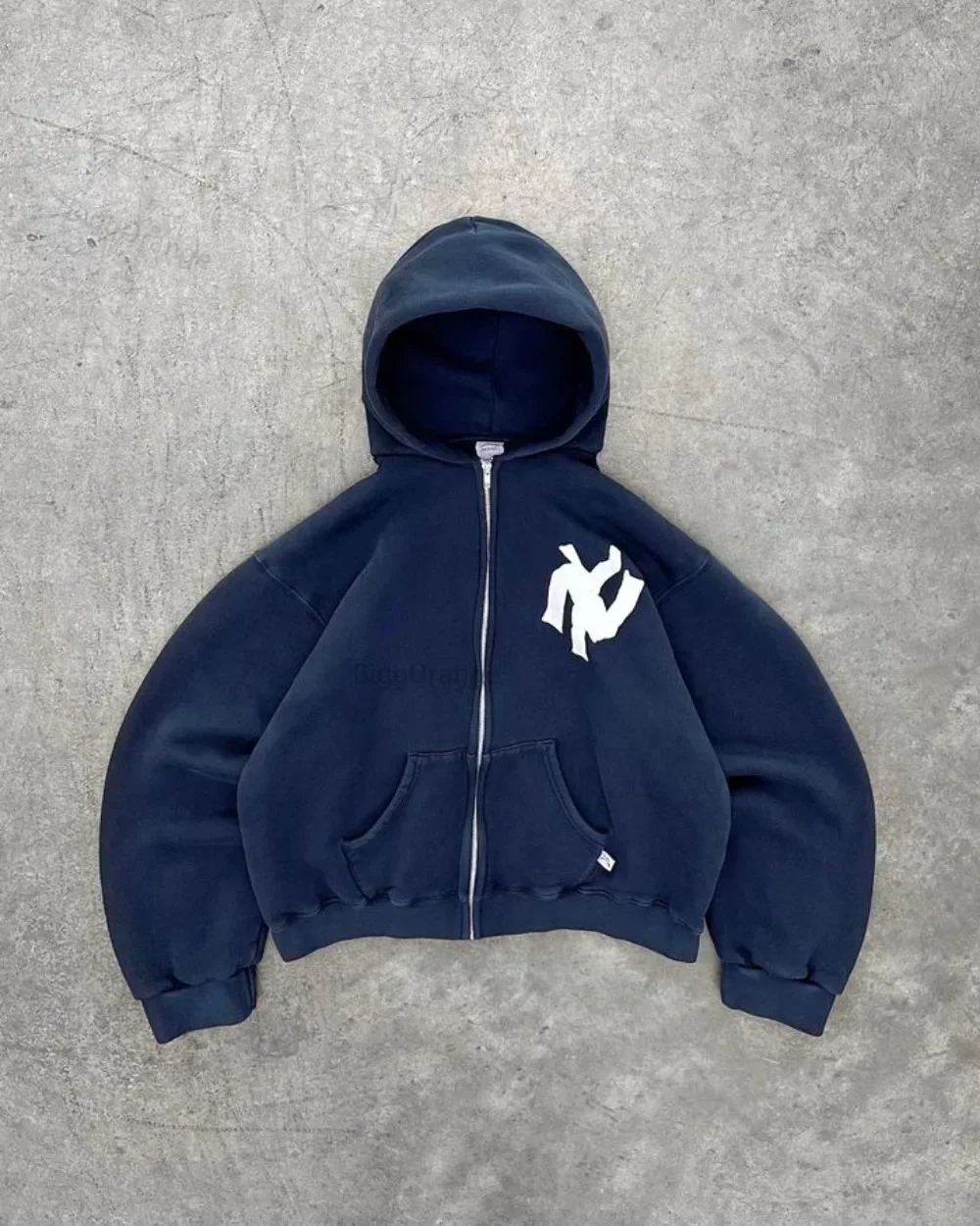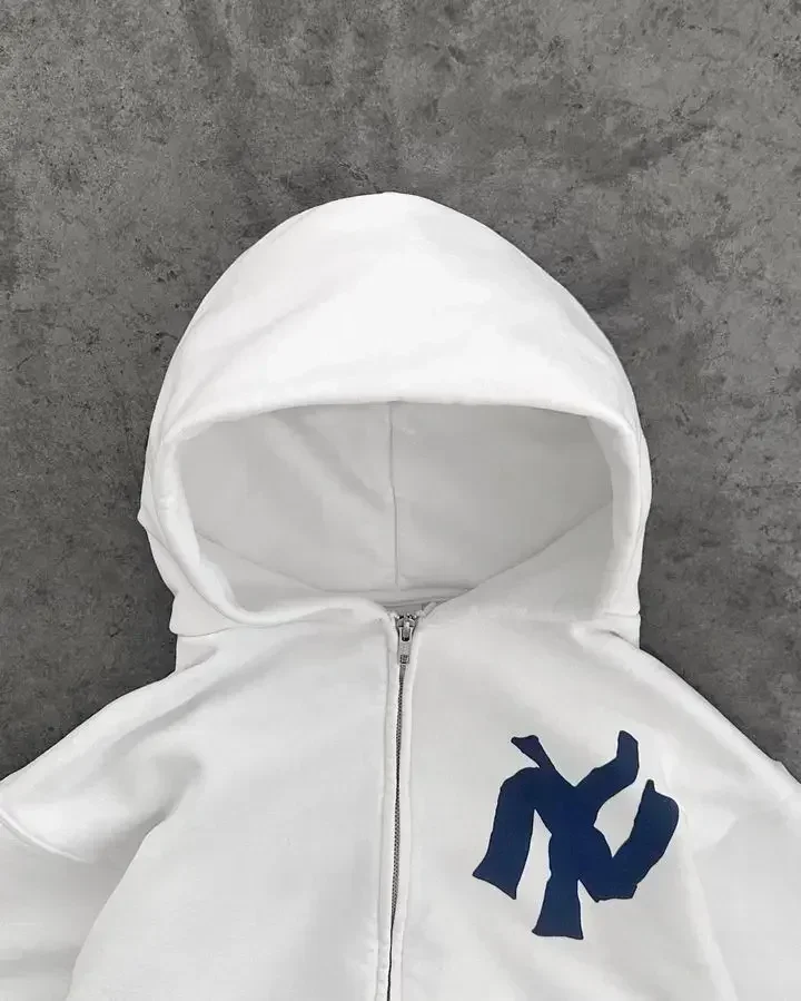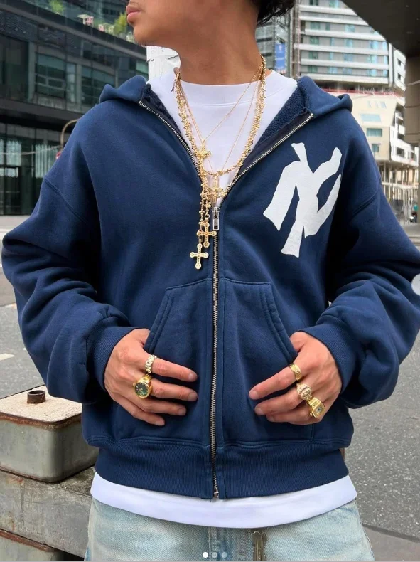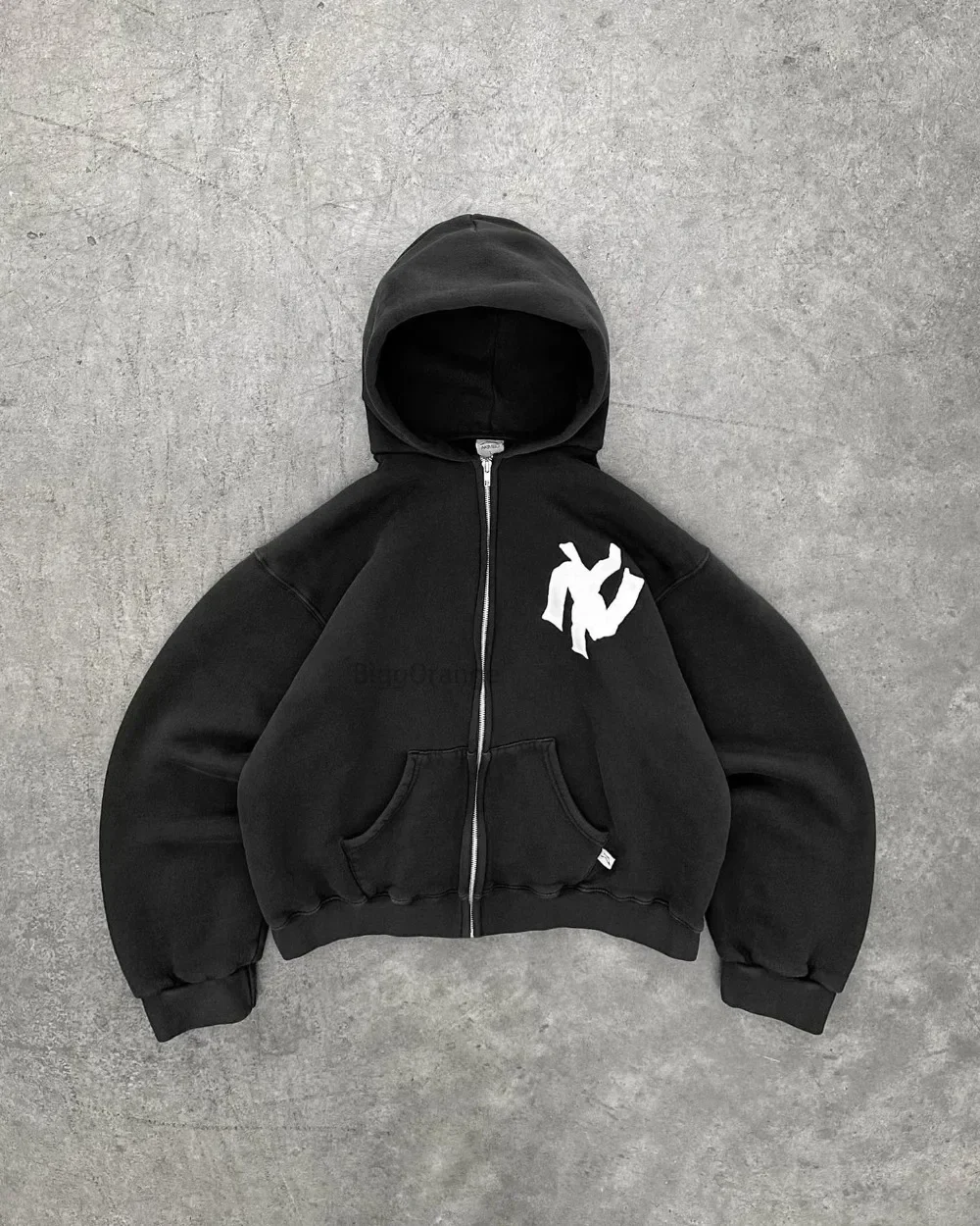 Y2K Harajuku Fashion Letter Pattern Felpa con cappuccio stampata Cappuccio all’anca Felpa con cerniera oversize per uomo e donna allentata casual