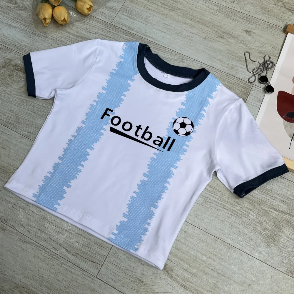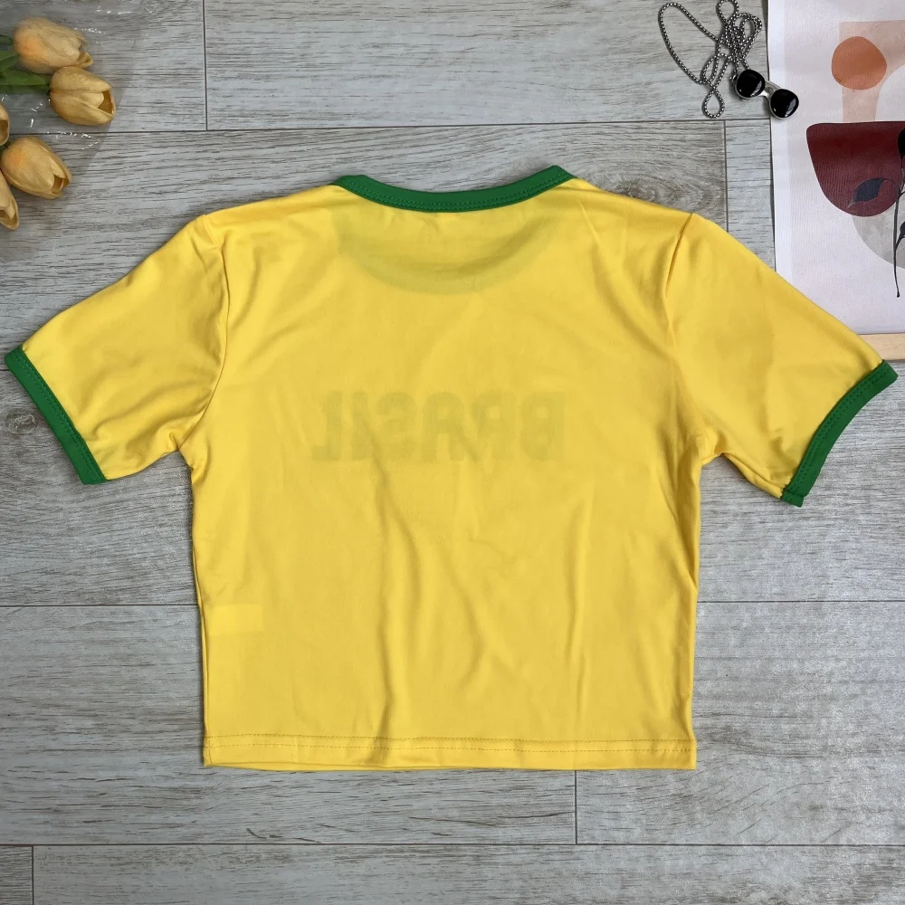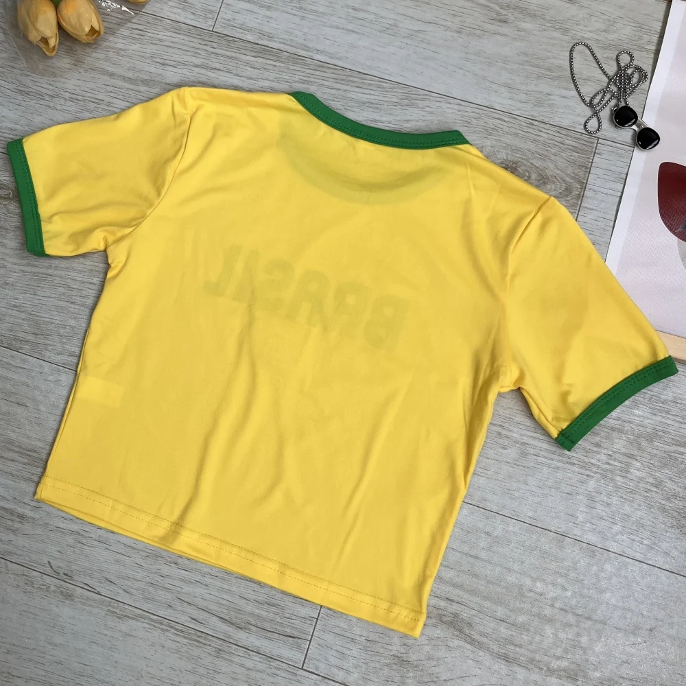 Maglie da calcio in brasile uniforme squadra nazionale fan Club lettera stampa Streetwear Slim Y2K Crop Top donna maglia da calcio Top