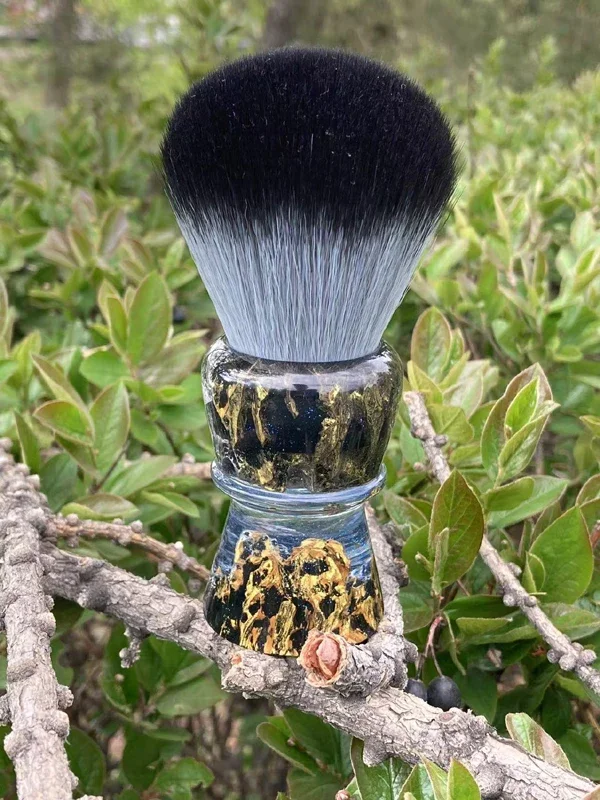 YAQI ROCKS Pennello da barba bagnato da uomo con manico in resina per capelli sintetici da 28 mm