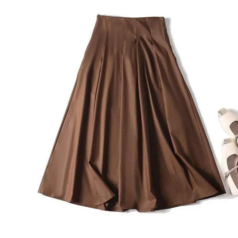Gonna a trapezio pieghettata stile francese per pendolarismo per abbigliamento da ufficio vintage a vita alta da donna