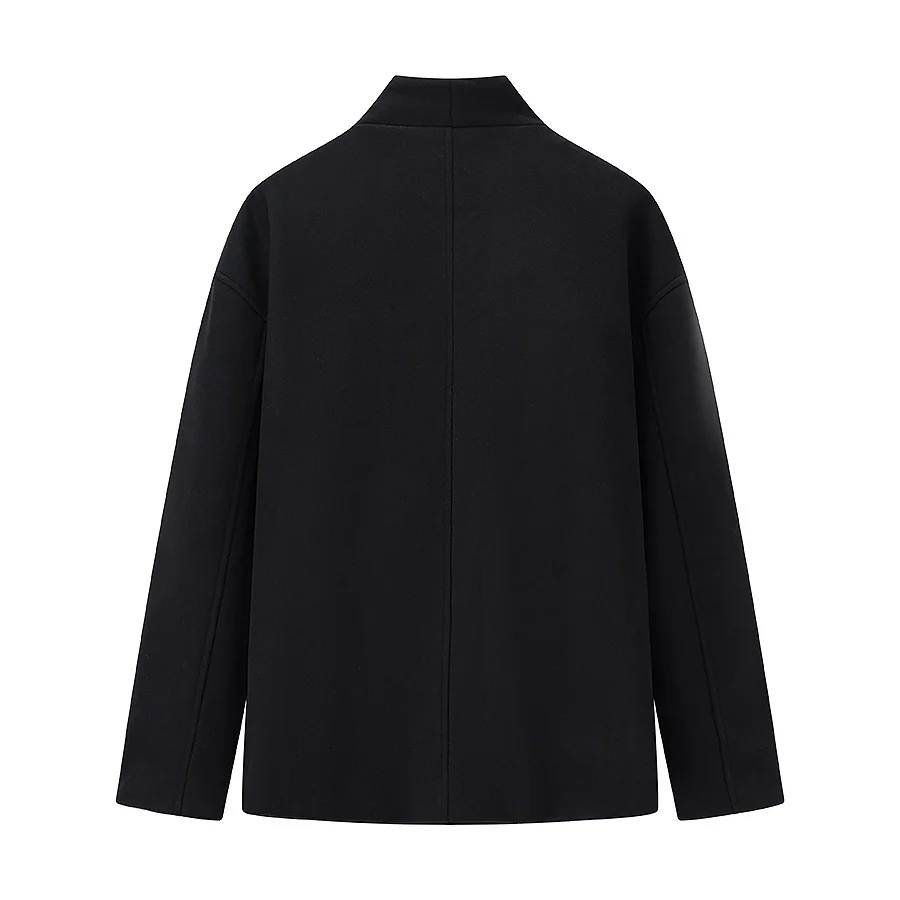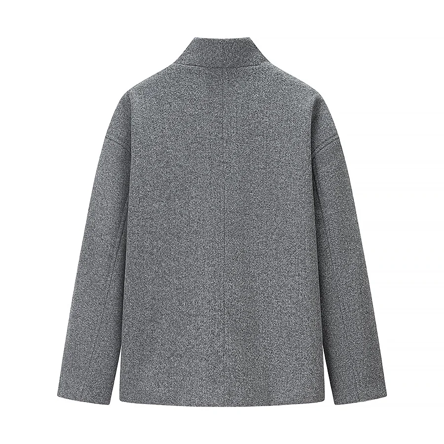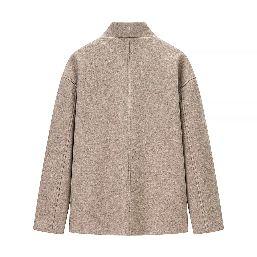 Cappotto di lana elegante doppiopetto da donna di nuova moda, manica lunga, colletto alla coreana