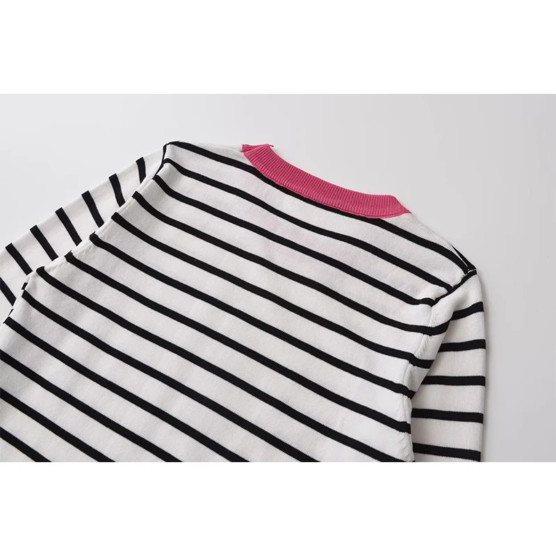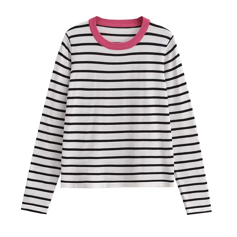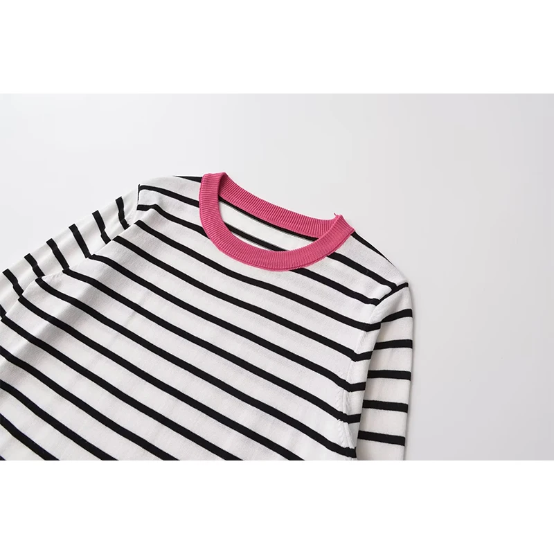 Maglione lavorato a maglia Casual a righe a maniche lunghe O collo delle nuove donne