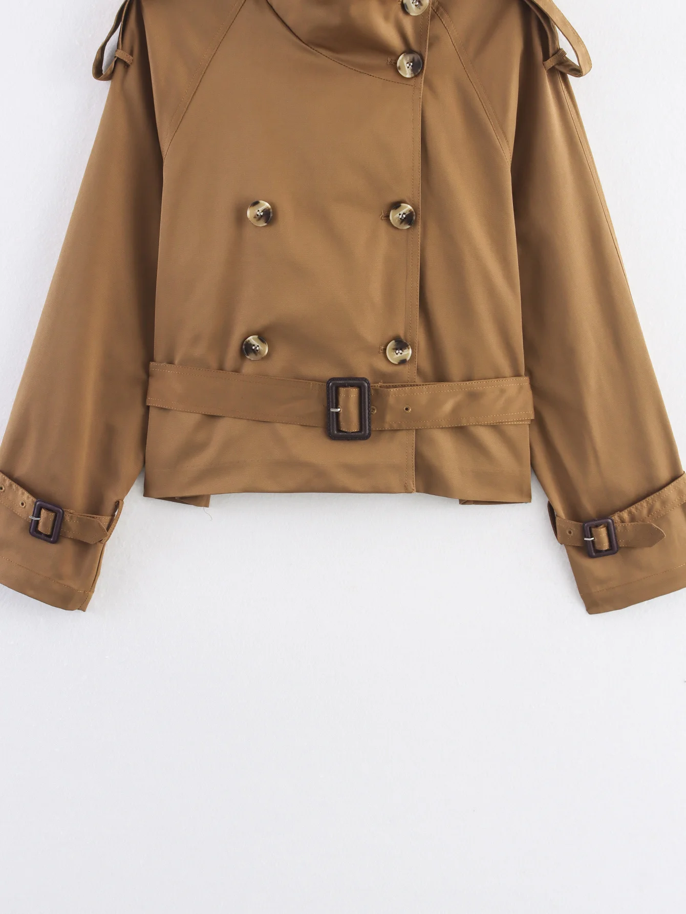 Vintage doppiopetto con cintura corta a vento per donna manica lunga alta