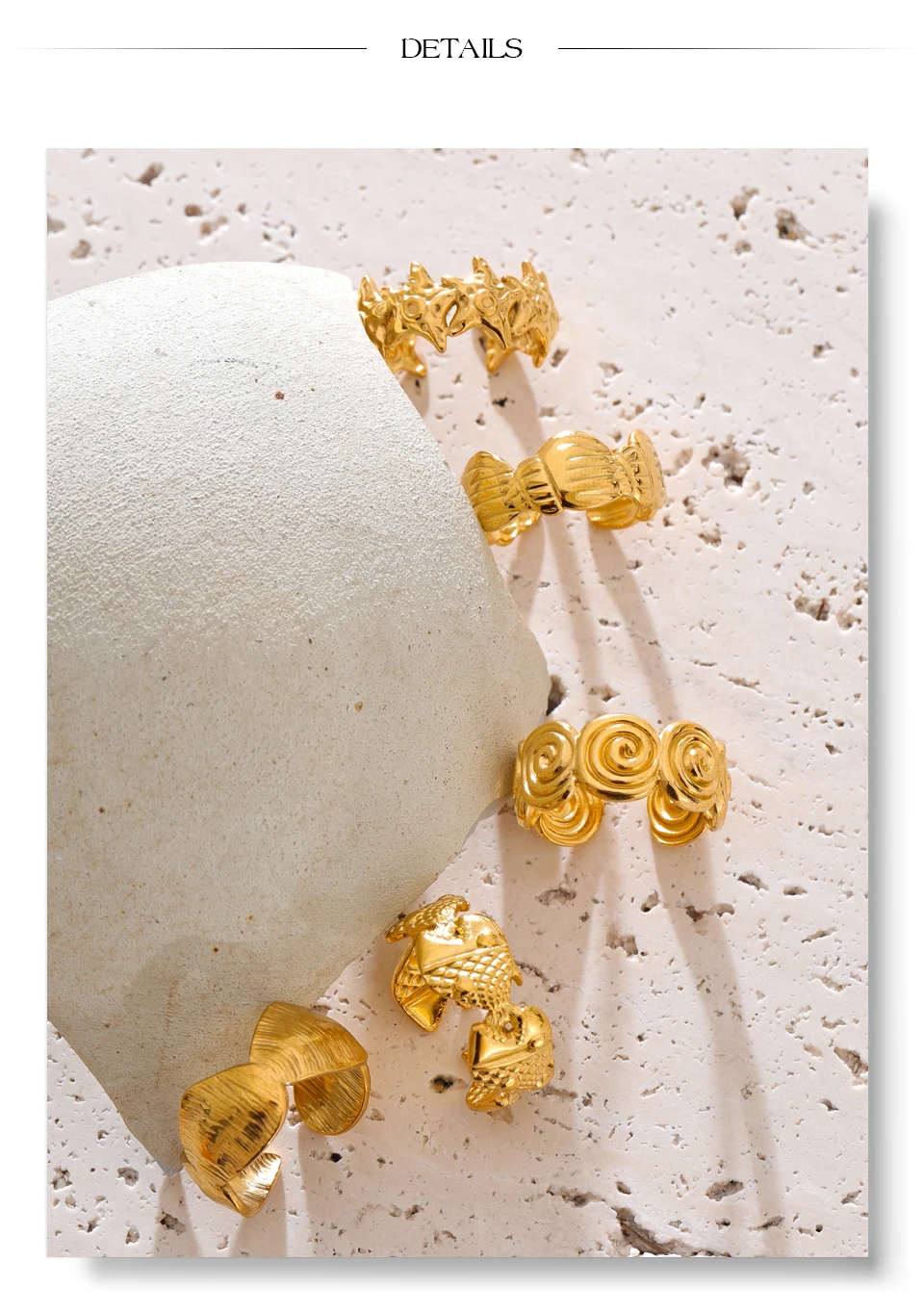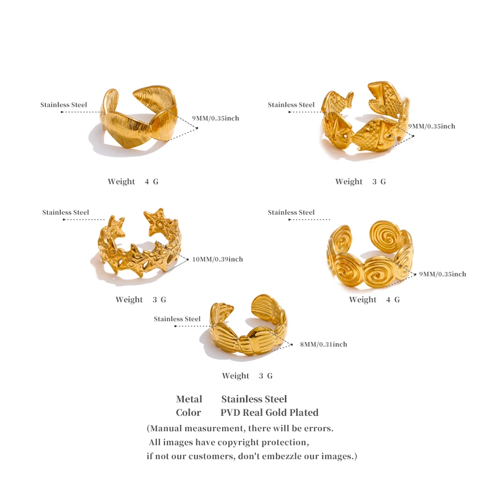 3 recensioni per Yhpup 2025 Ocean Style Conch Shell Modello di pesce Anello dorato aperto PVD placcato in acciaio inossidabile antiruggine Commercio all’ingrosso di gioielli estivi