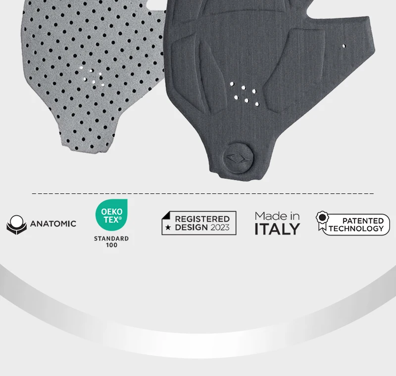•Stampaggio integrato : Paramano dal taglio ergonomico senza cuciture.