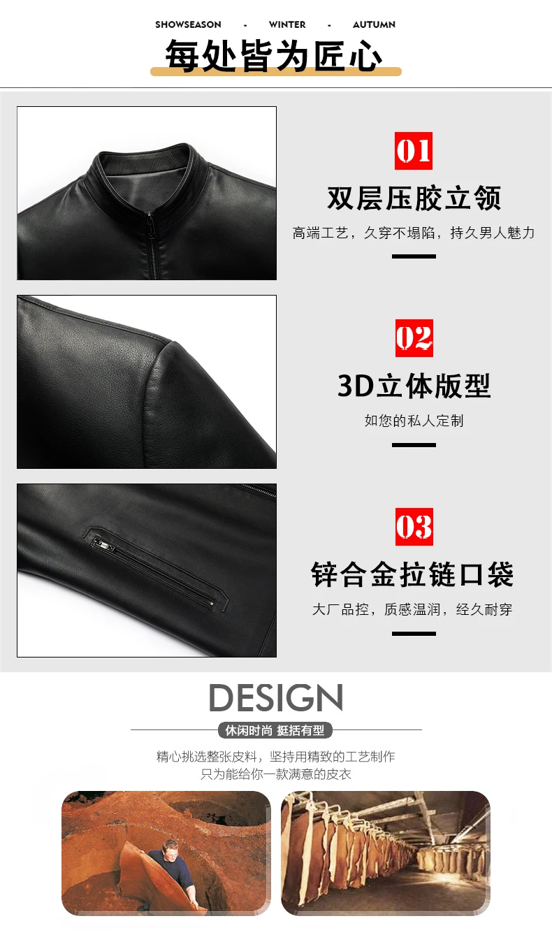 Dal 1991 Negozio, vendite dirette in fabbrica, qualità affidabile.Iniziato nel 1991, è stato focalizzato sulla ricerca e allo sviluppo, produzione e vendita di abbigliamento in pelle da uomo per più di 30 anni.Supporta la vendita all’ingrosso, reclutare gli agenti locali, benvenuti per discutere sulla cooperazione