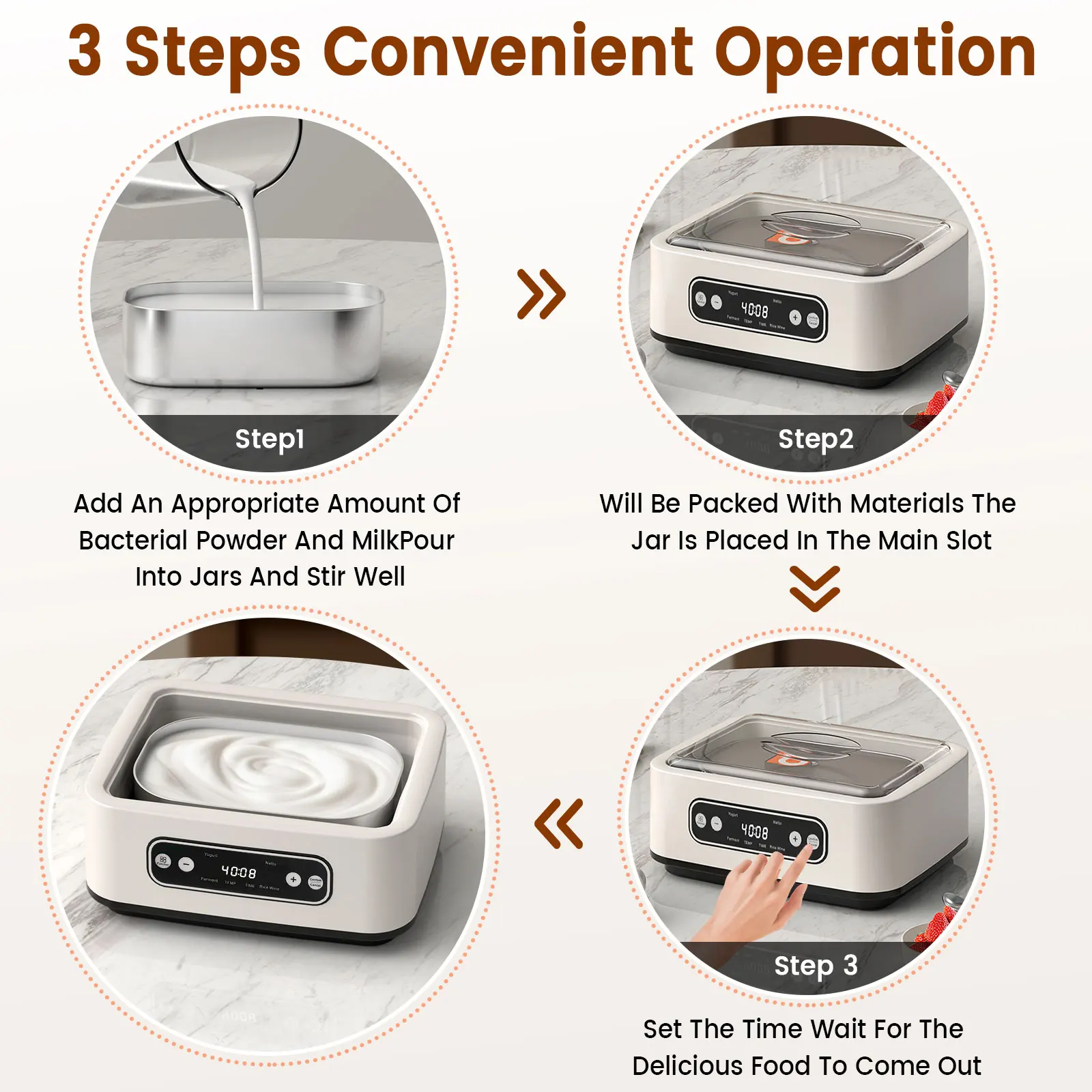 ✅Display digitale a LED: lo schermo LCD intuitivo consente di impostare con precisione l’ora e la temperatura, garantendo una consistenza liscia e uniforme dello yogurt.Il tempo del processo è chiaro a colpo d’occhio, eliminando le congetture.