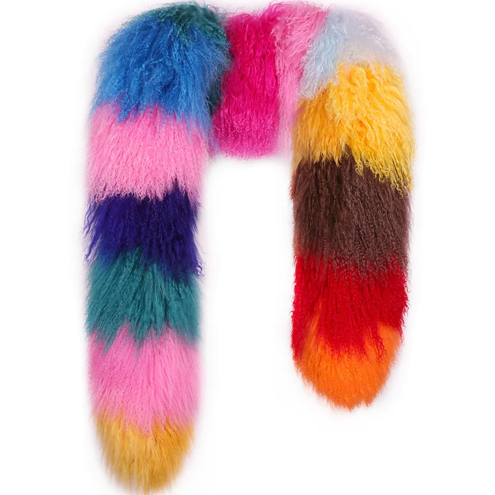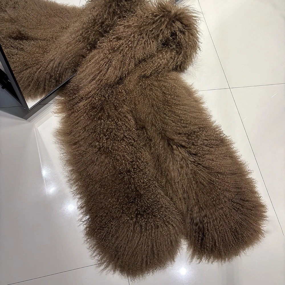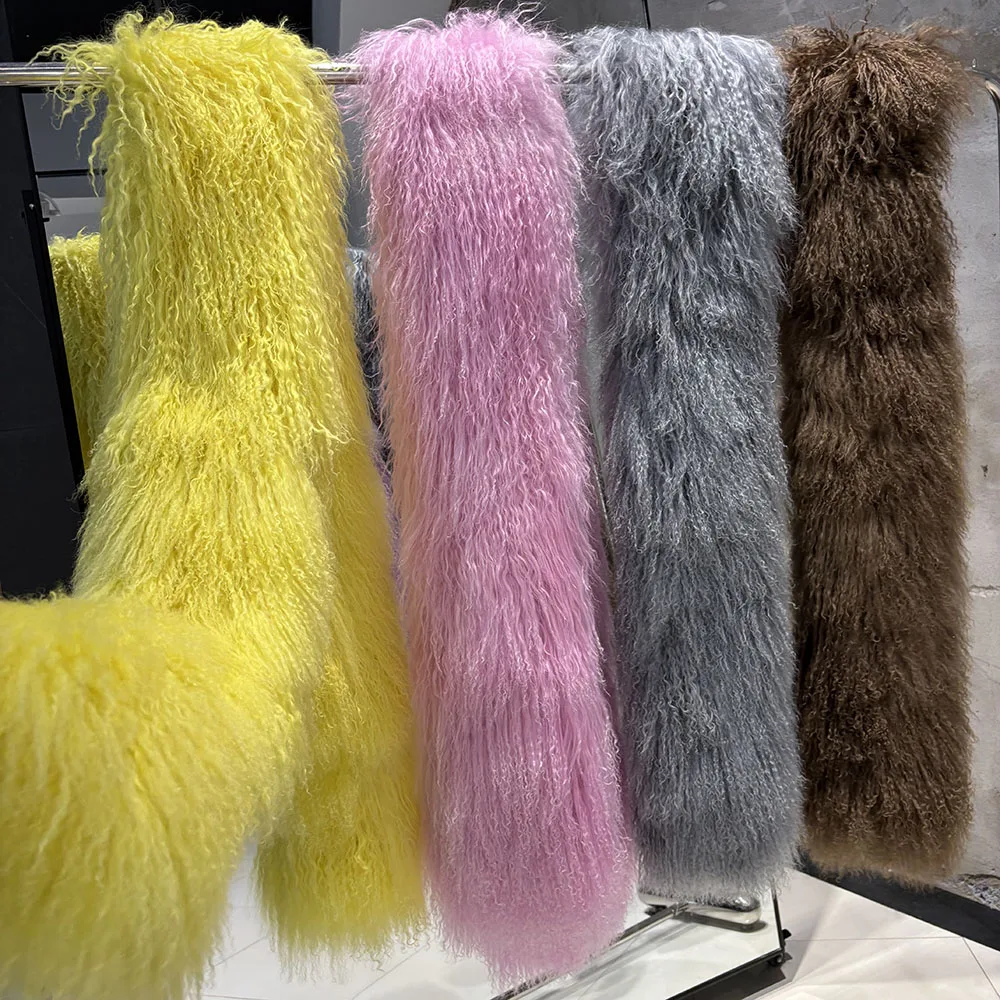YOLOAgain 2025 Scialle da donna con sciarpa in vera pelliccia di pecora della Mongolia calda invernale