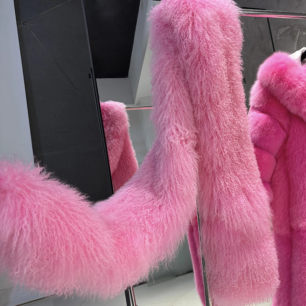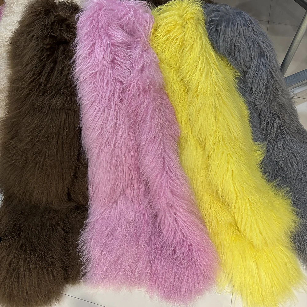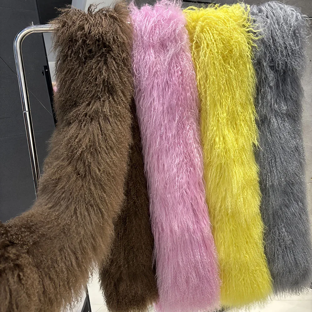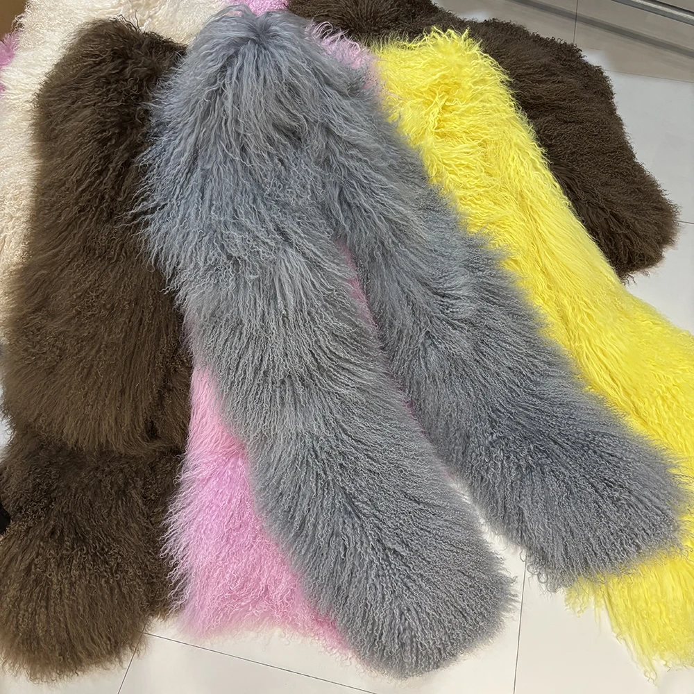 YOLOAgain 2025 Scialle da donna con sciarpa in vera pelliccia di pecora della Mongolia calda invernale