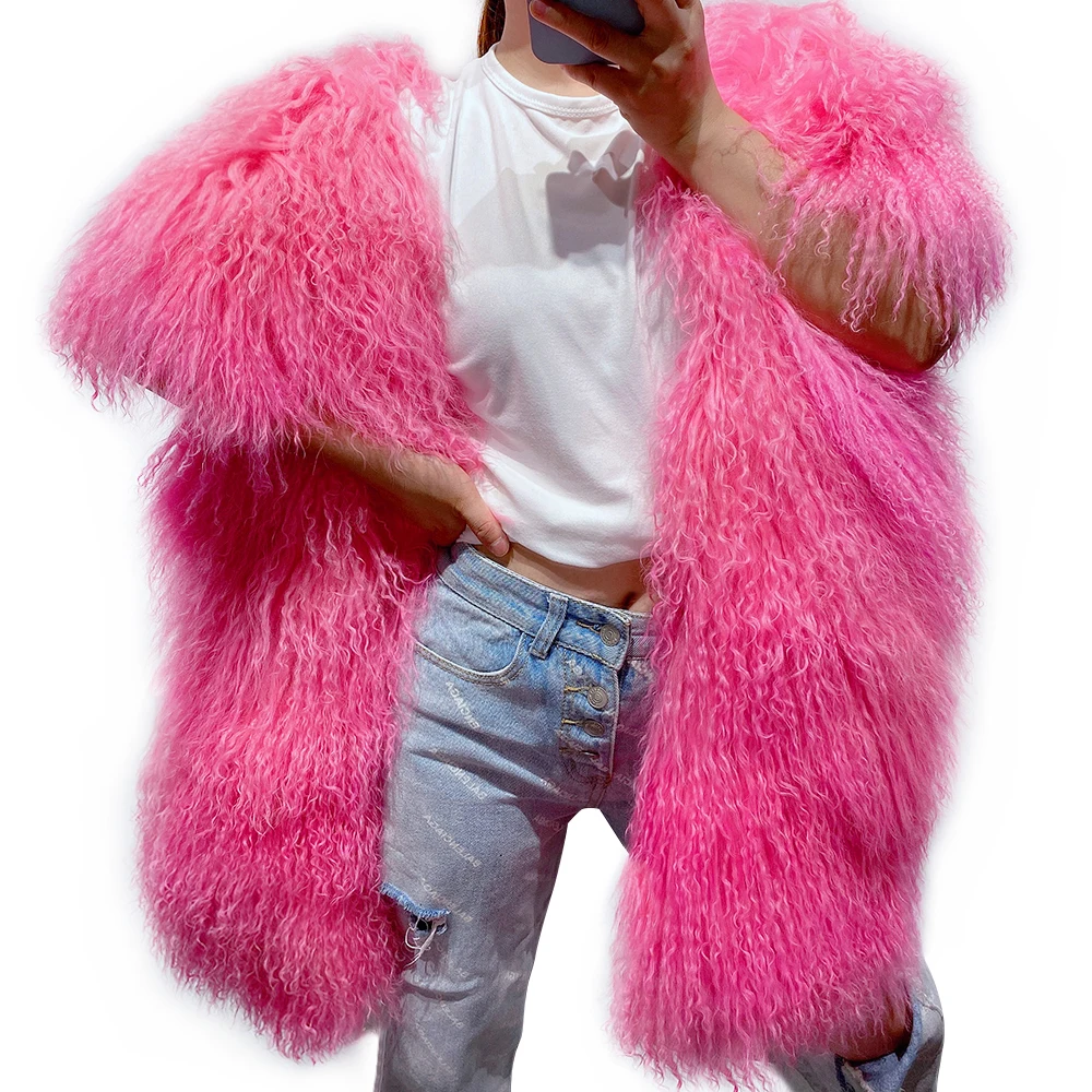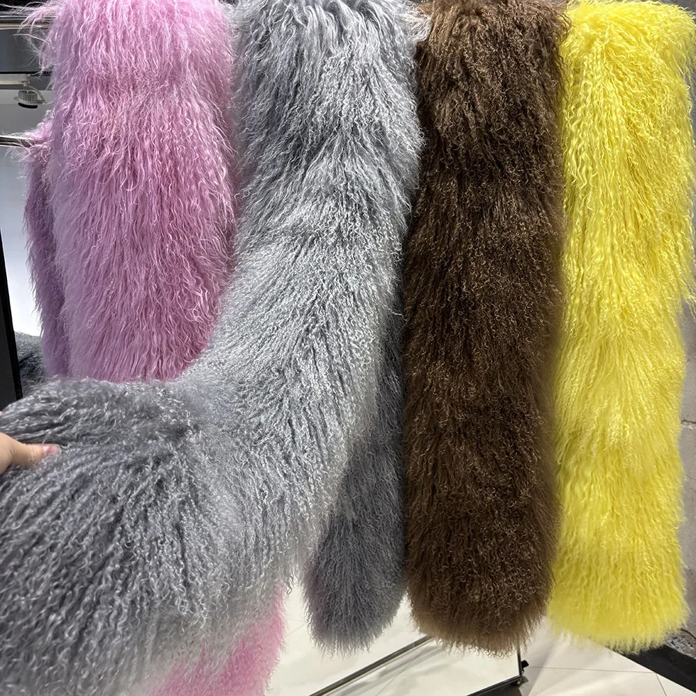 YOLOAgain 2025 Scialle da donna con sciarpa in vera pelliccia di pecora della Mongolia calda invernale