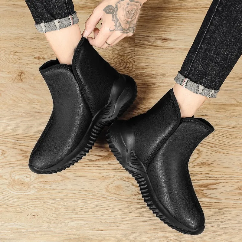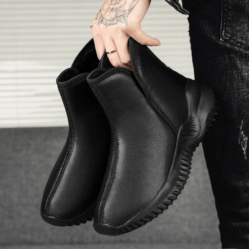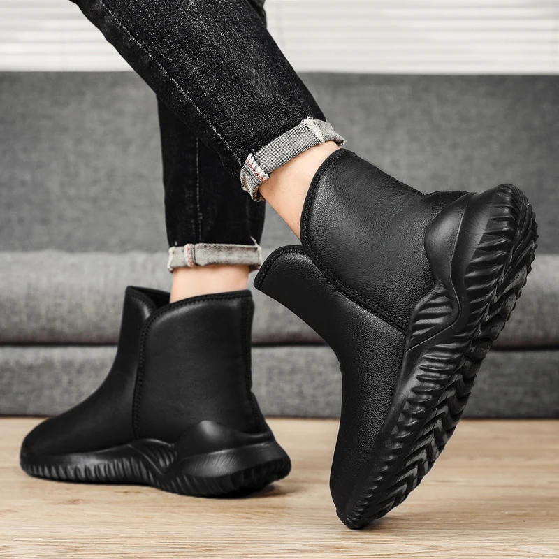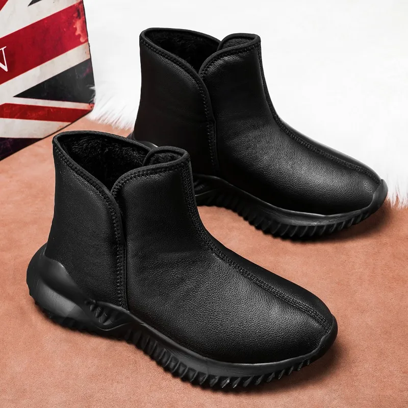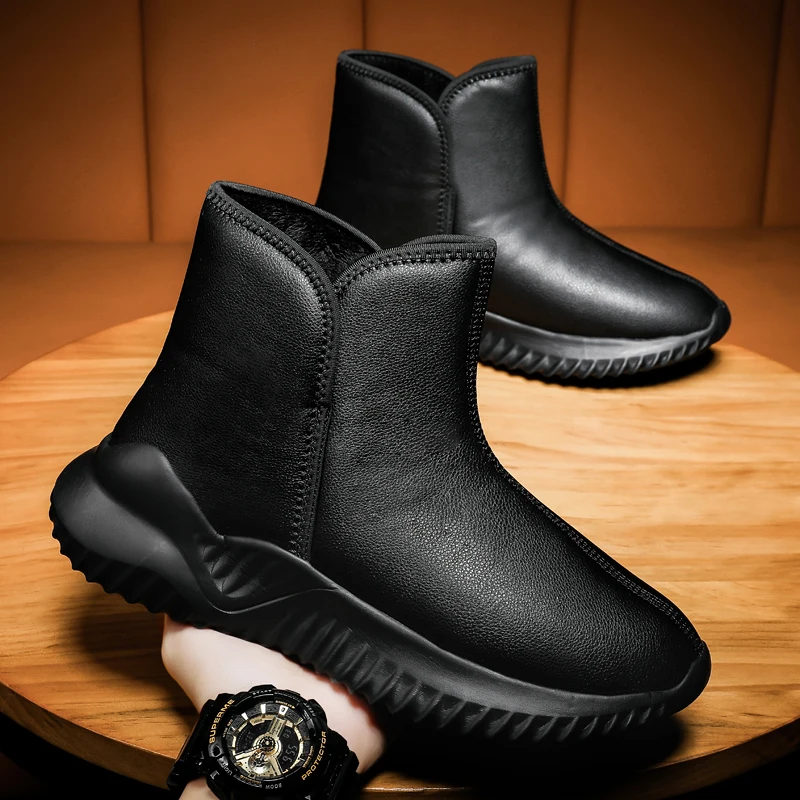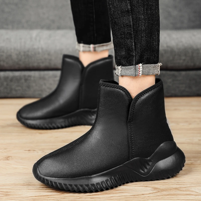 YRZL stivali neri invernali da uomo 2024 stivali da uomo in peluche caldi stivali in cotone leggero antiscivolo scarpe invernali comode da uomo
