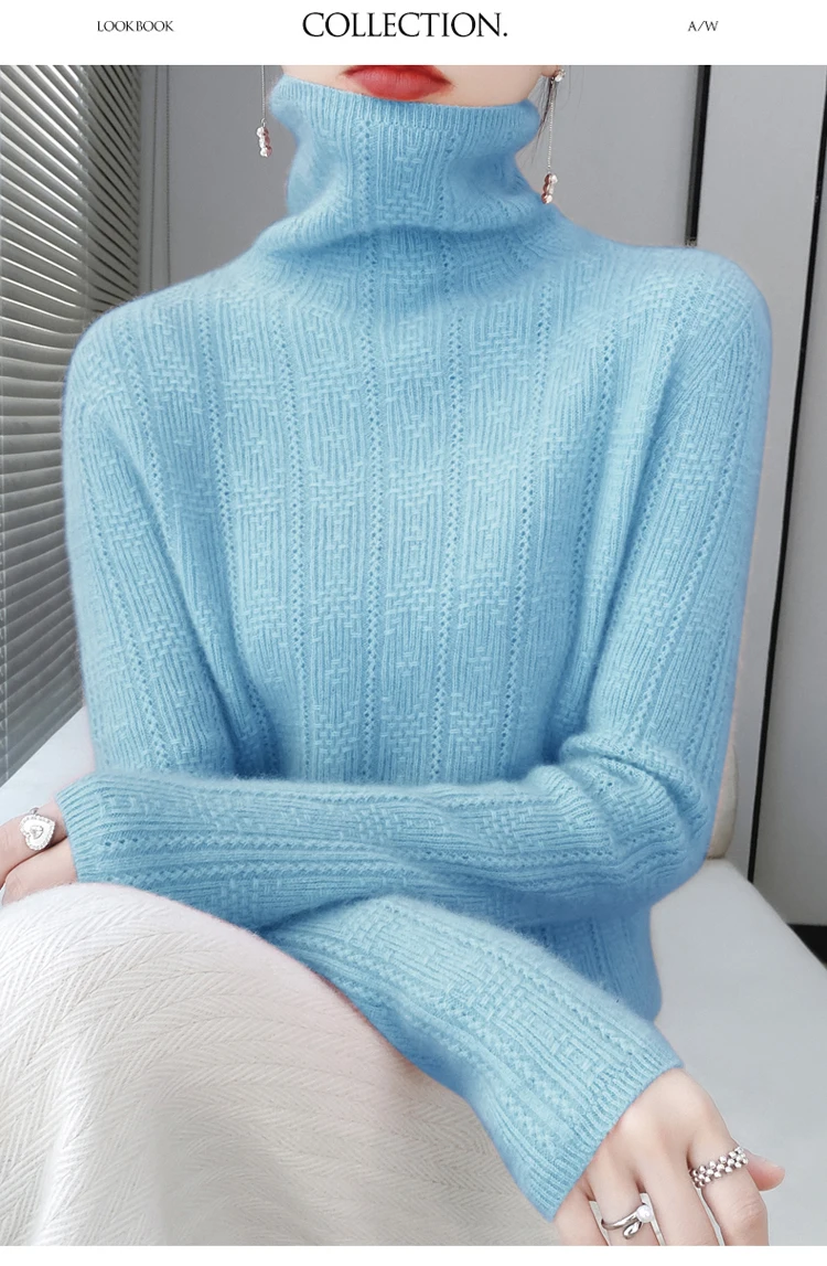 YTFidio 100% lana donna tridimensionale collo a pelo cavo maglioni a maniche lunghe Pullover solido maglieria Basic 96 1YTFidio 100% lana donna tridimensionale collo a pelo cavo maglioni a maniche lunghe Pullover solido maglieria Basic 96