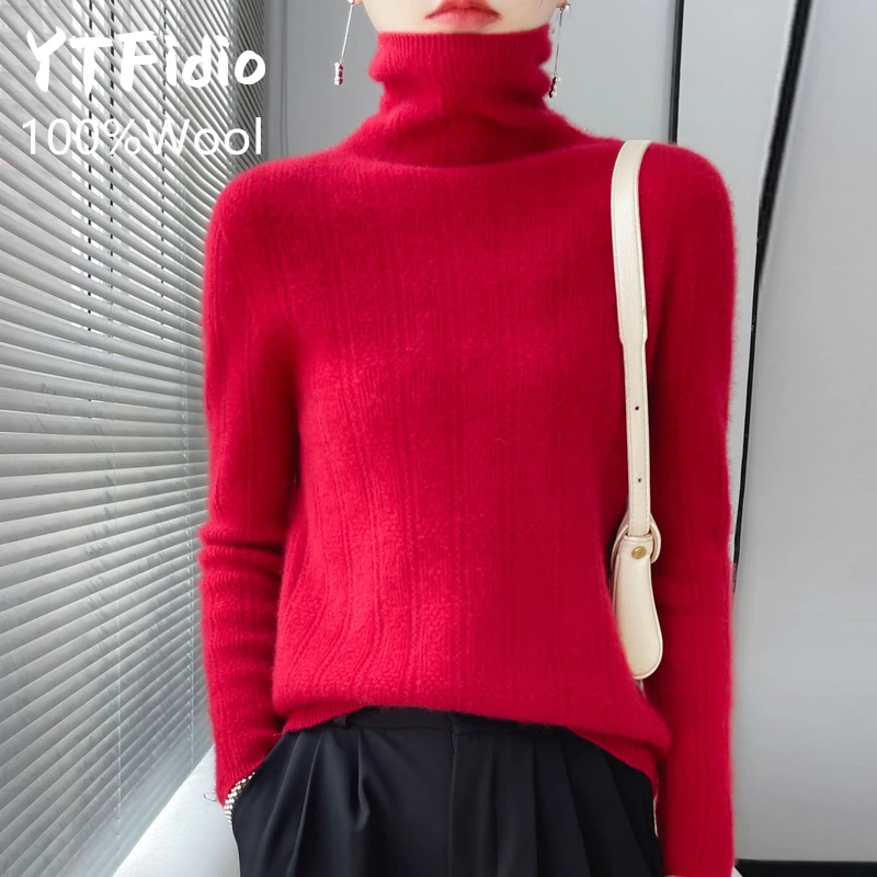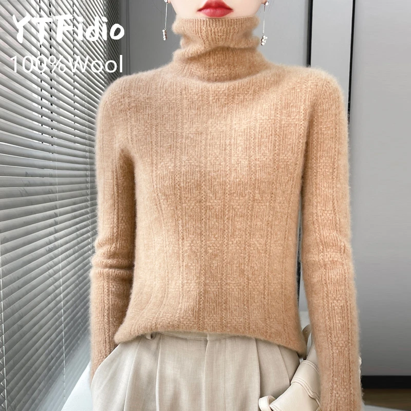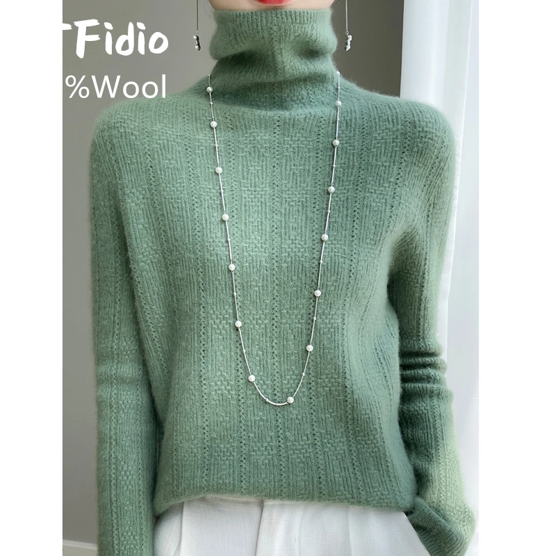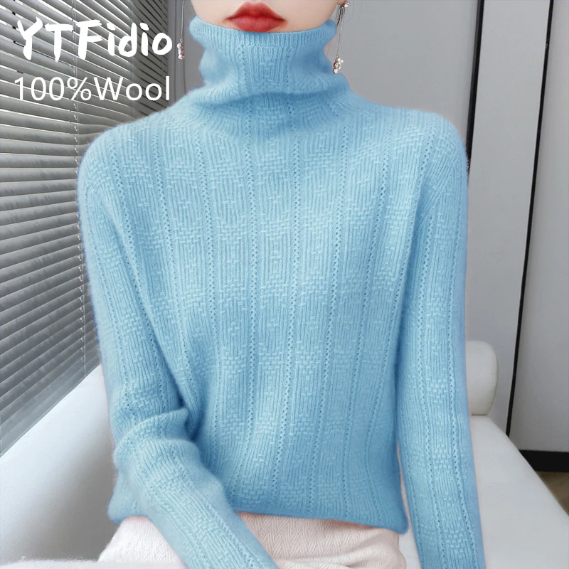 YTFidio 100% lana donna tridimensionale collo a pelo cavo maglioni a maniche lunghe Pullover solido maglieria Basic 96 1YTFidio 100% lana donna tridimensionale collo a pelo cavo maglioni a maniche lunghe Pullover solido maglieria Basic 96