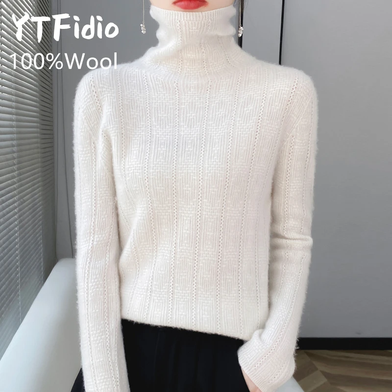 YTFidio 100% lana donna tridimensionale collo a pelo cavo maglioni a maniche lunghe Pullover solido maglieria Basic 96