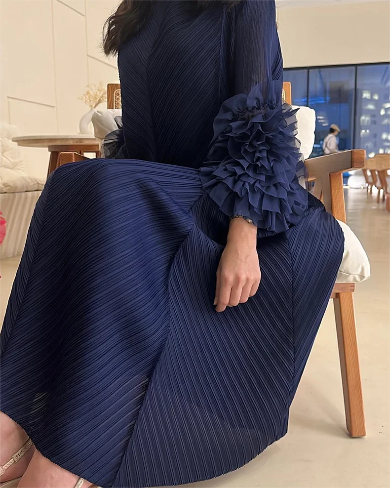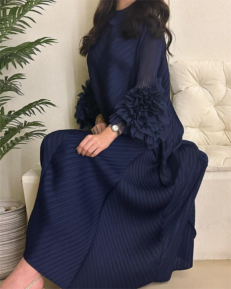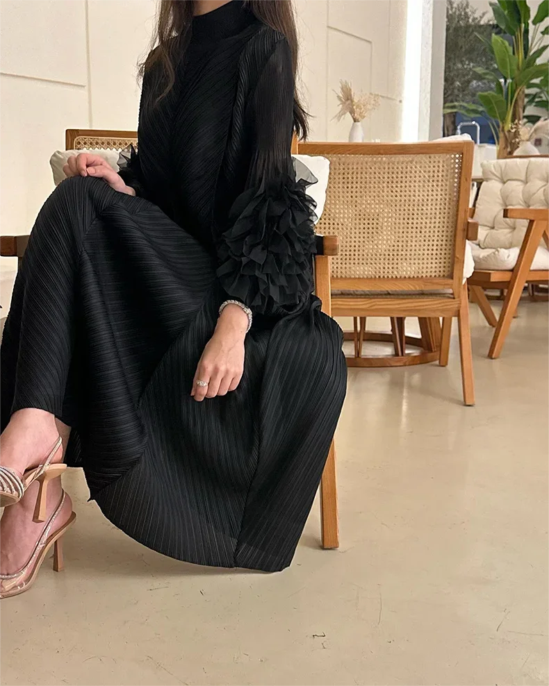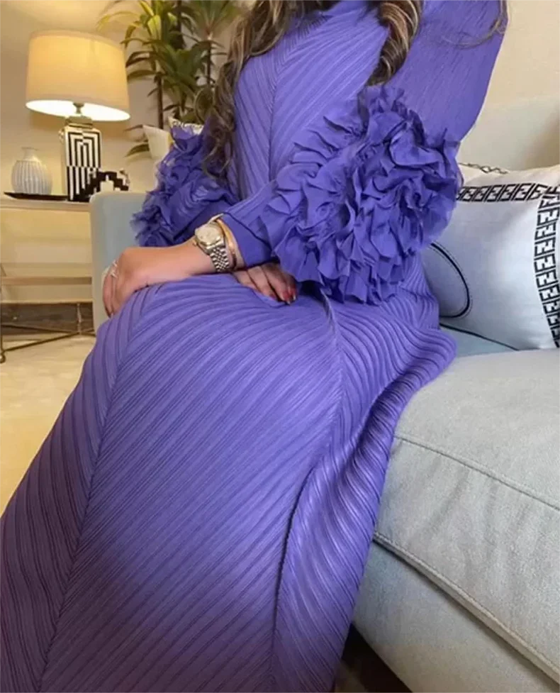 YUDX Vendite Calde 2024 Estate Nuovi Abiti Formali A Pieghe per Le Donne Maglia Del Manicotto Del Petalo Solido Del Partito di Sera Lunghi Maxi Abiti