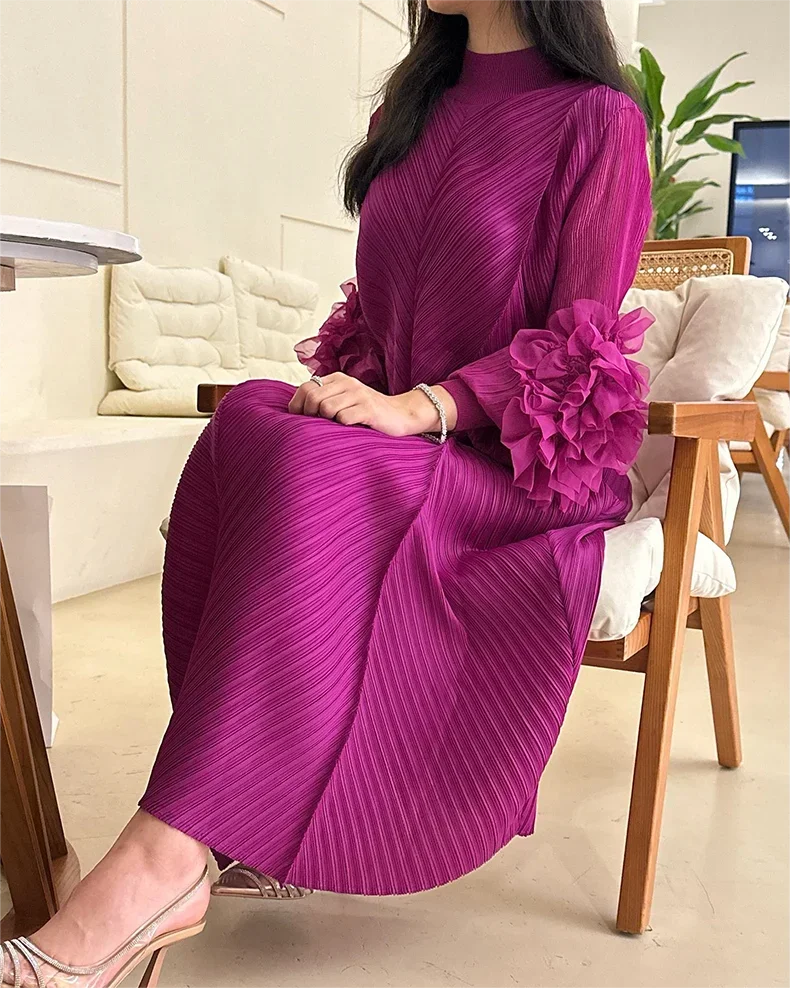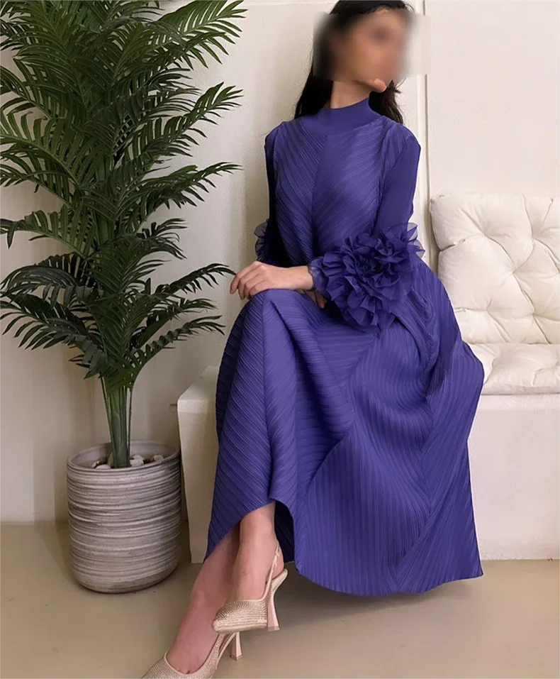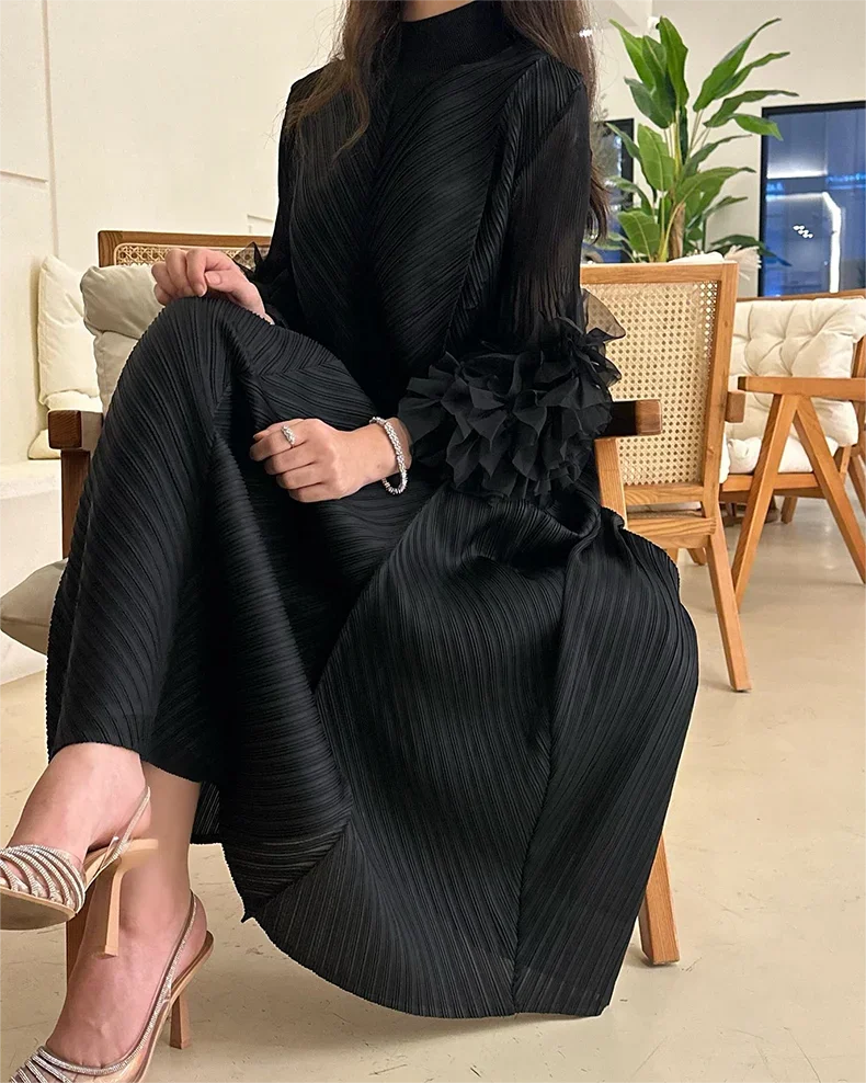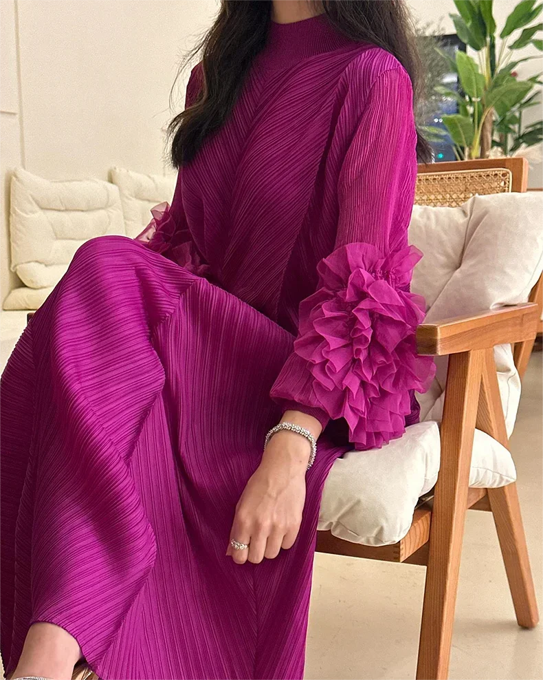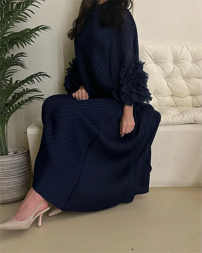 YUDX Vendite Calde 2024 Estate Nuovi Abiti Formali A Pieghe per Le Donne Maglia Del Manicotto Del Petalo Solido Del Partito di Sera Lunghi Maxi Abiti