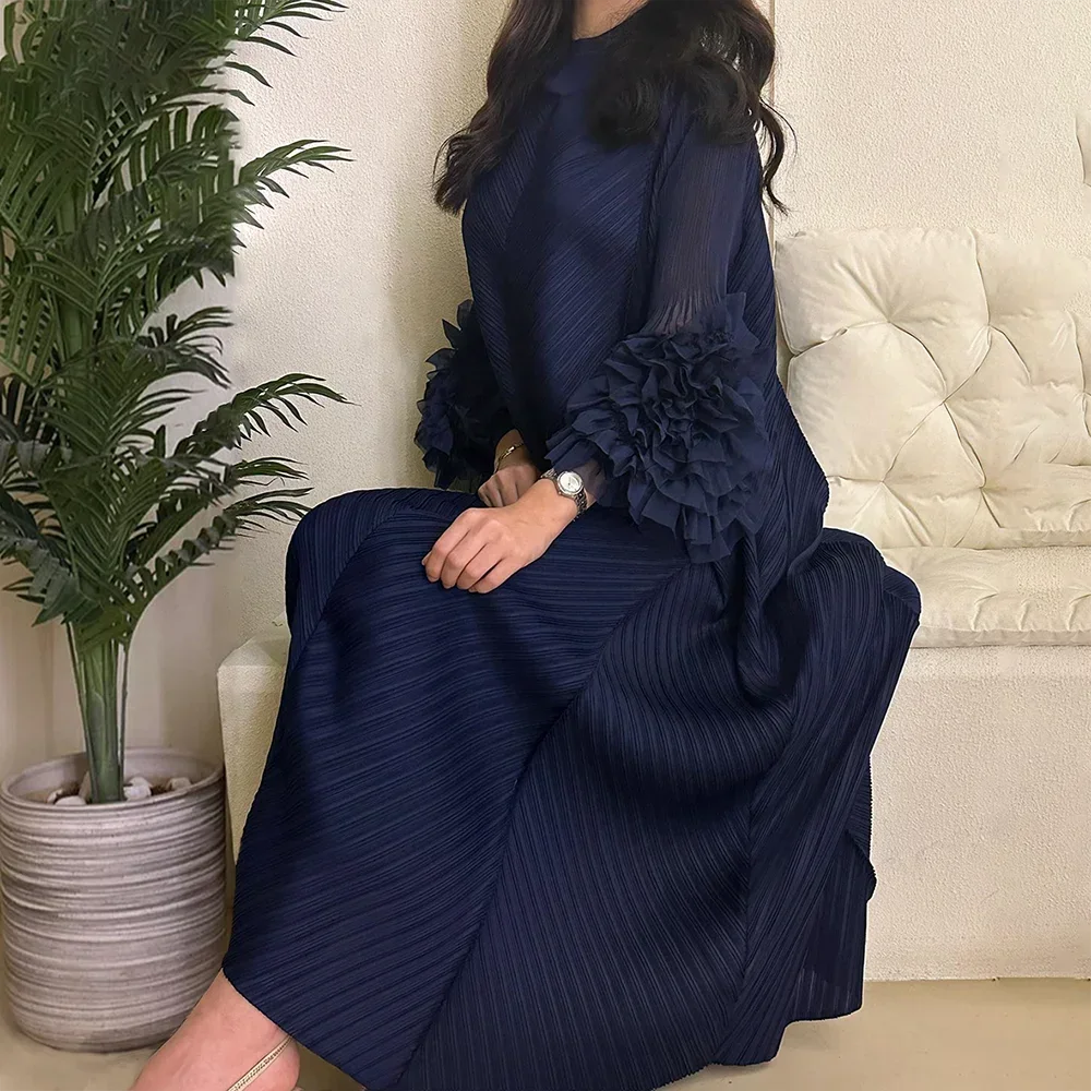 YUDX Vendite Calde 2024 Estate Nuovi Abiti Formali A Pieghe per Le Donne Maglia Del Manicotto Del Petalo Solido Del Partito di Sera Lunghi Maxi Abiti