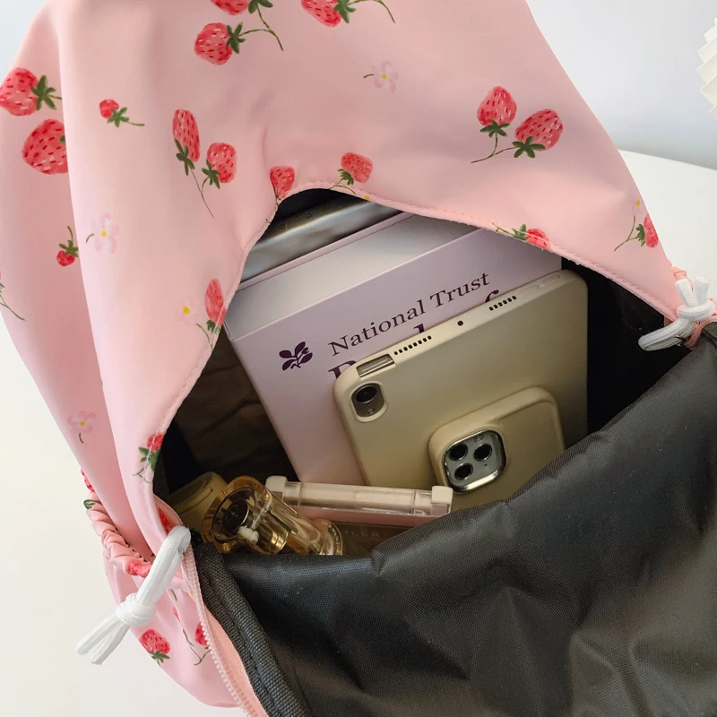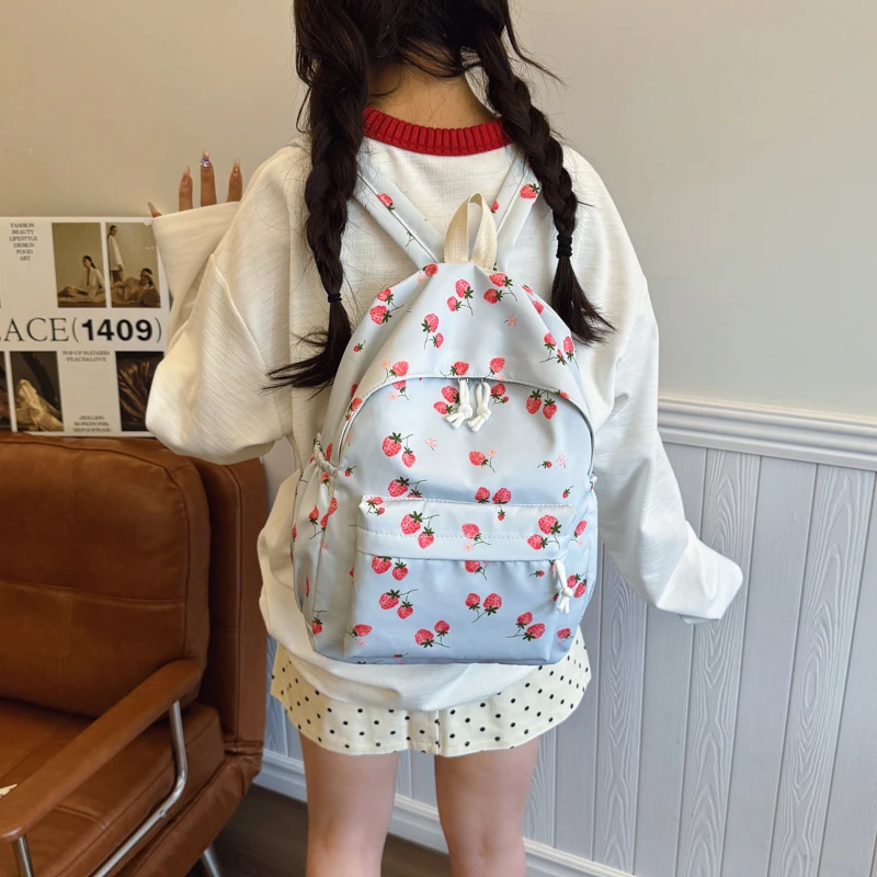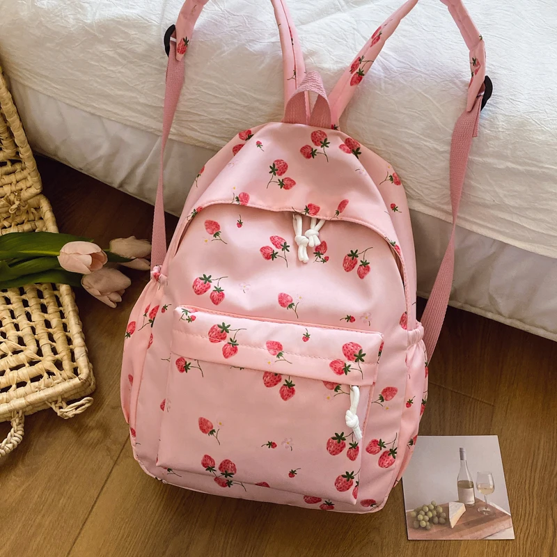 Zaino a forma di fragola Nuovo zaino estivo Zaino per ragazze da donna Borsa per computer per studenti di moda semplice di grande capacità