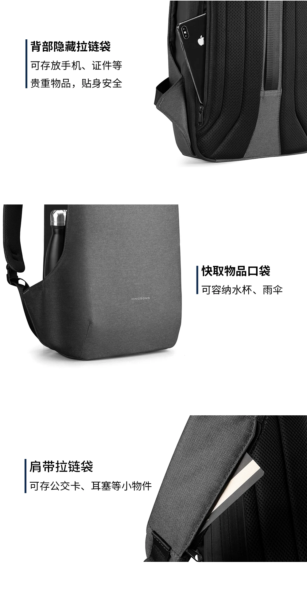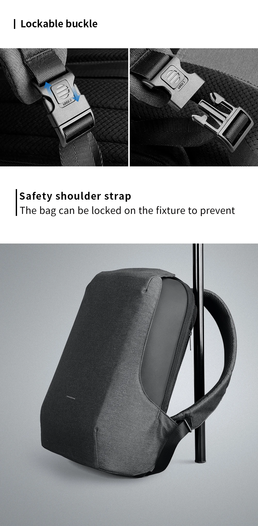 Zaino antifurto Kingsons da uomo per laptop da 15,6 pollici aperto da 180 gradi con ricarica USB borsa da scuola impermeabile per ragazzi studenti universitari 1Zaino antifurto Kingsons da uomo per laptop da 15,6 pollici aperto da 180 gradi con ricarica USB borsa da scuola impermeabile per ragazzi studenti universitari