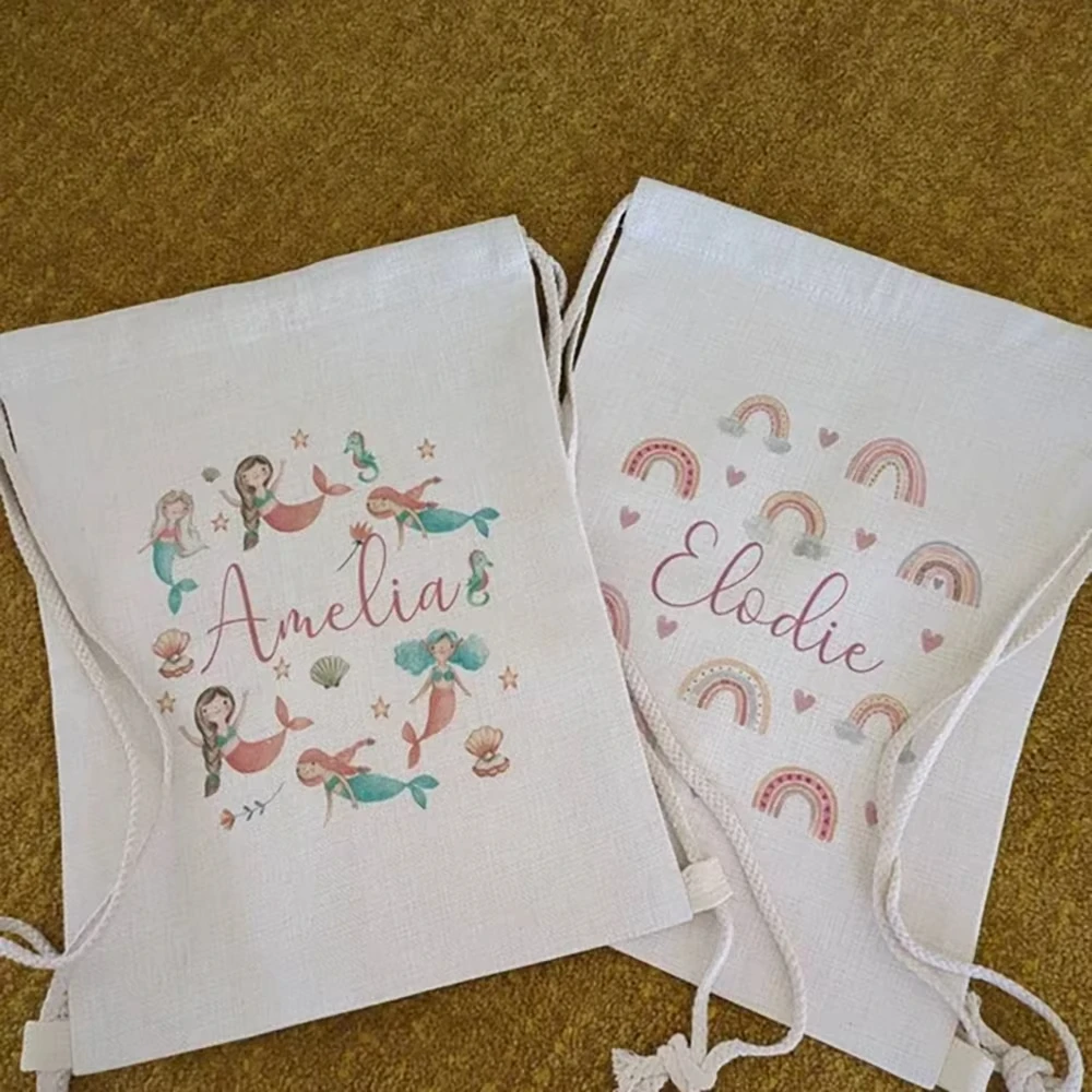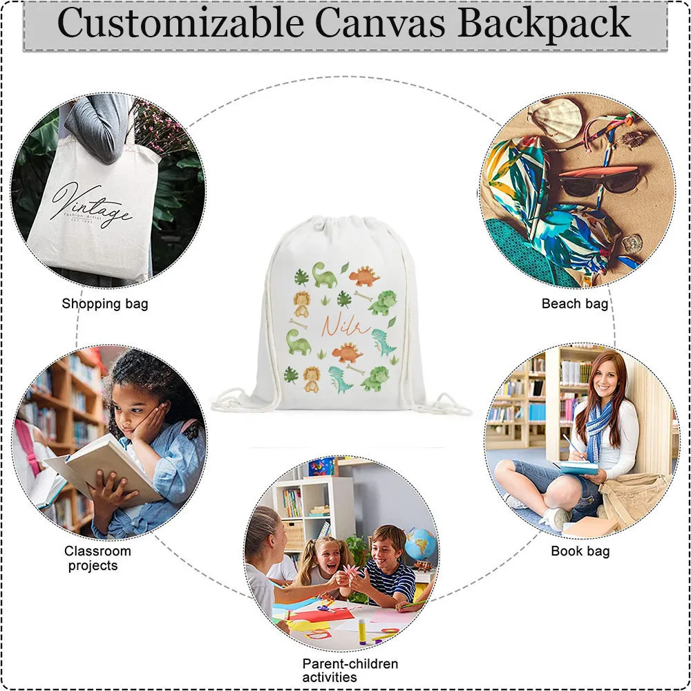 Custom Rainbow Printed Kids Drawstring Backpack Cute Cotton Bag Suitable for Girls Boys School Travel Daily Use Lightweight BagNeed a stylish, eco – friendly gift for your team or clients? Our Customizable Canvas Bags check all boxes: reusable, customizable, and perfect for daily life. Let’s make your brand shine!🌷Why It's Great for You Stay Organized: No more messy school supplies or toys! Pencils, notebooks, snacks—everything finds its spot in this roomy drawstring bag. Perfect for school days, swimming lessons, or birthday outings.Durable & Lightweight: Made of sturdy canvas, it holds up well yet feels light. Easy for kids to carry around all day.Customizable Style: Add your kid's name or a cute print. It's not just a bag; it's a personalized companion for school, playdates, and all kids' adventures.🎁How to Order