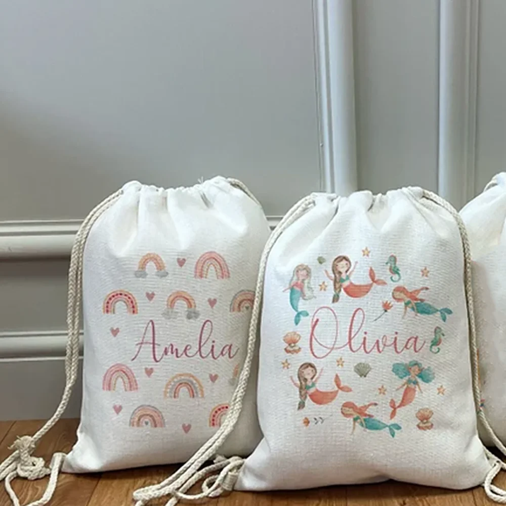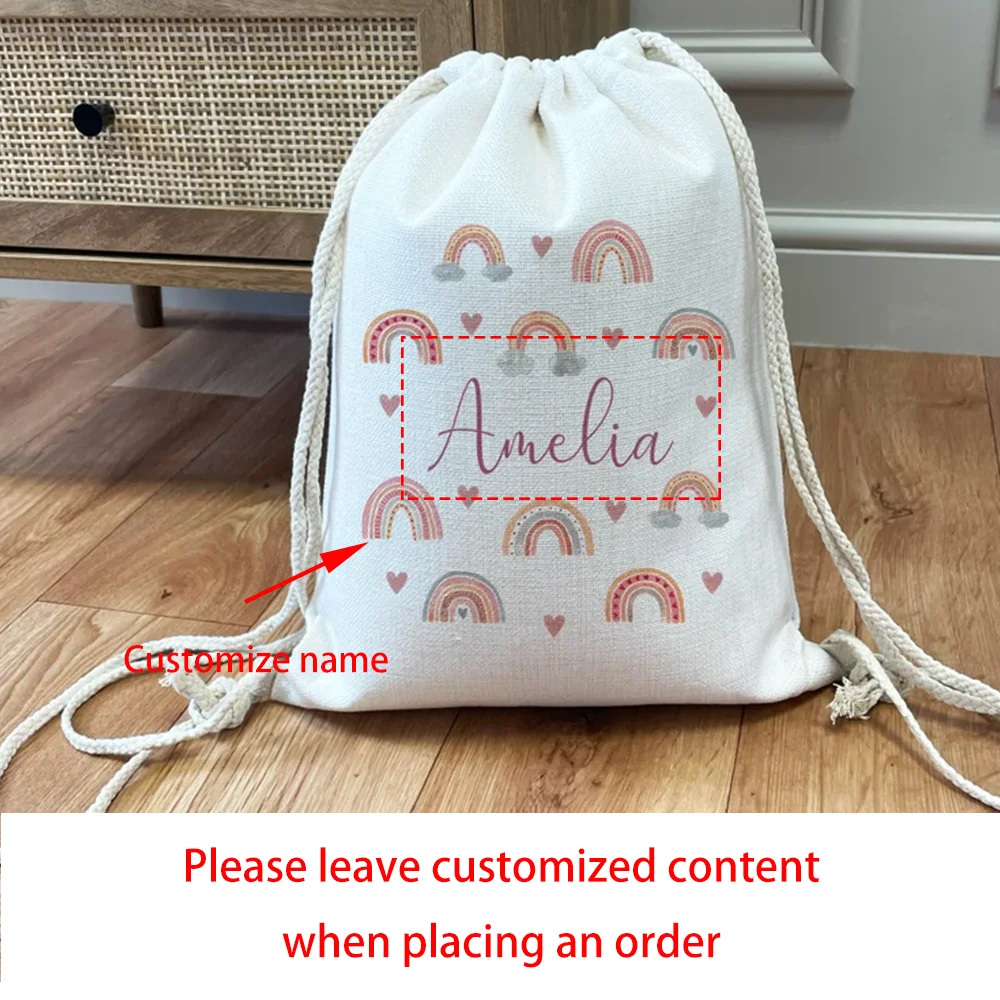 Custom Rainbow Printed Kids Drawstring Backpack Cute Cotton Bag Suitable for Girls Boys School Travel Daily Use Lightweight BagNeed a stylish, eco – friendly gift for your team or clients? Our Customizable Canvas Bags check all boxes: reusable, customizable, and perfect for daily life. Let’s make your brand shine!🌷Why It's Great for You Stay Organized: No more messy school supplies or toys! Pencils, notebooks, snacks—everything finds its spot in this roomy drawstring bag. Perfect for school days, swimming lessons, or birthday outings.Durable & Lightweight: Made of sturdy canvas, it holds up well yet feels light. Easy for kids to carry around all day.Customizable Style: Add your kid's name or a cute print. It's not just a bag; it's a personalized companion for school, playdates, and all kids' adventures.🎁How to Order