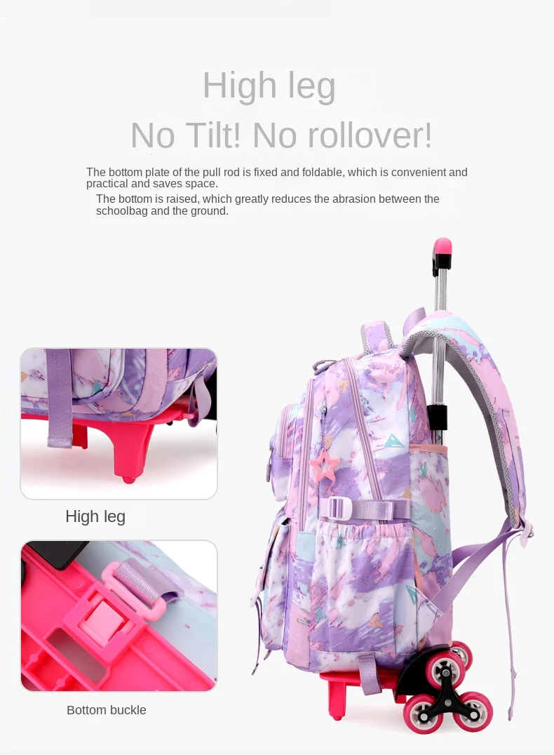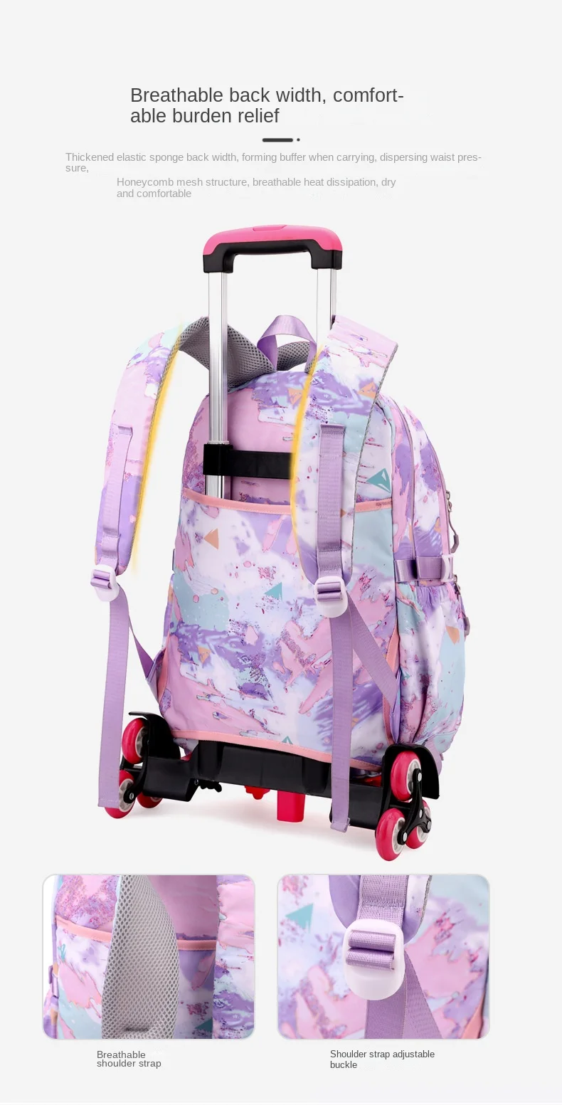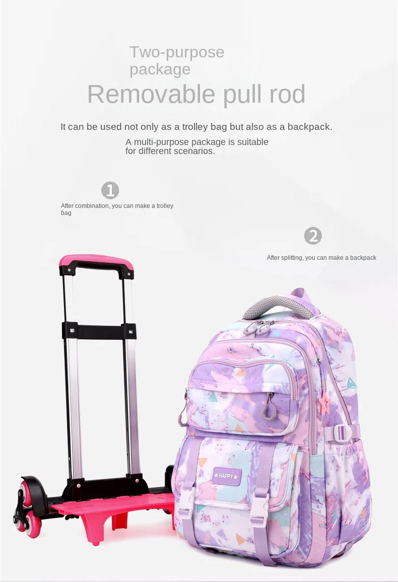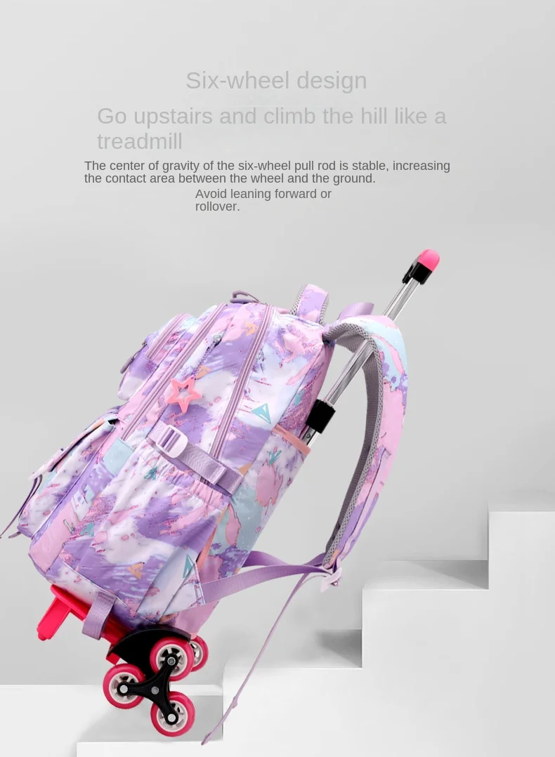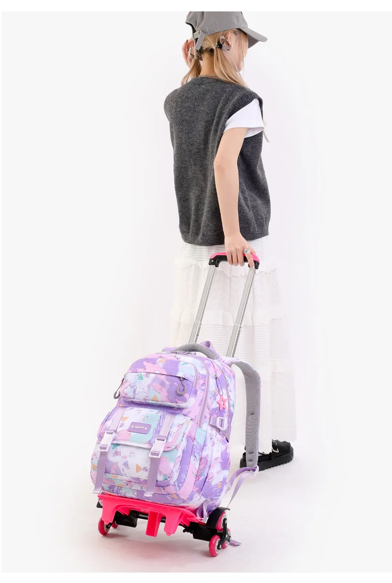 Zaino da scuola per bambini con ruote zaino rotante per ragazze zaino con ruote per studenti Trolley da scuola Trolley da viaggio
