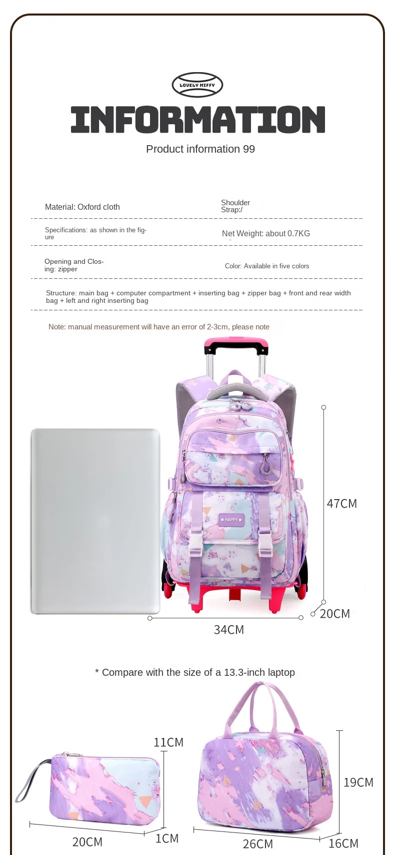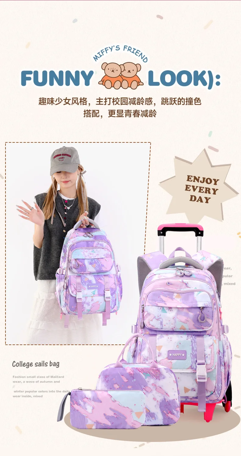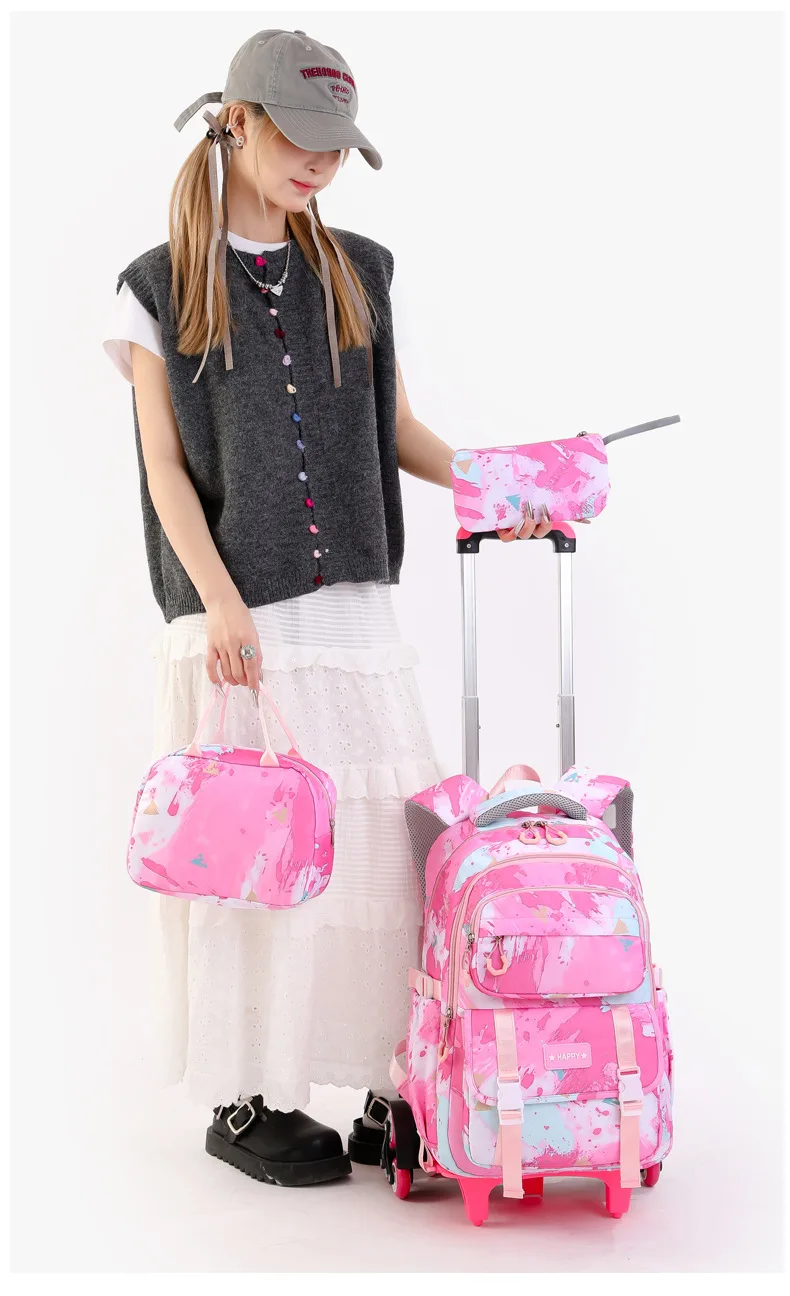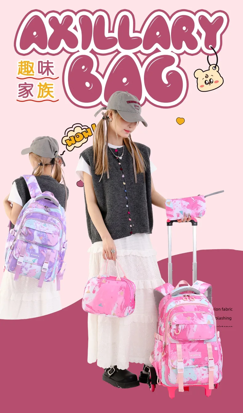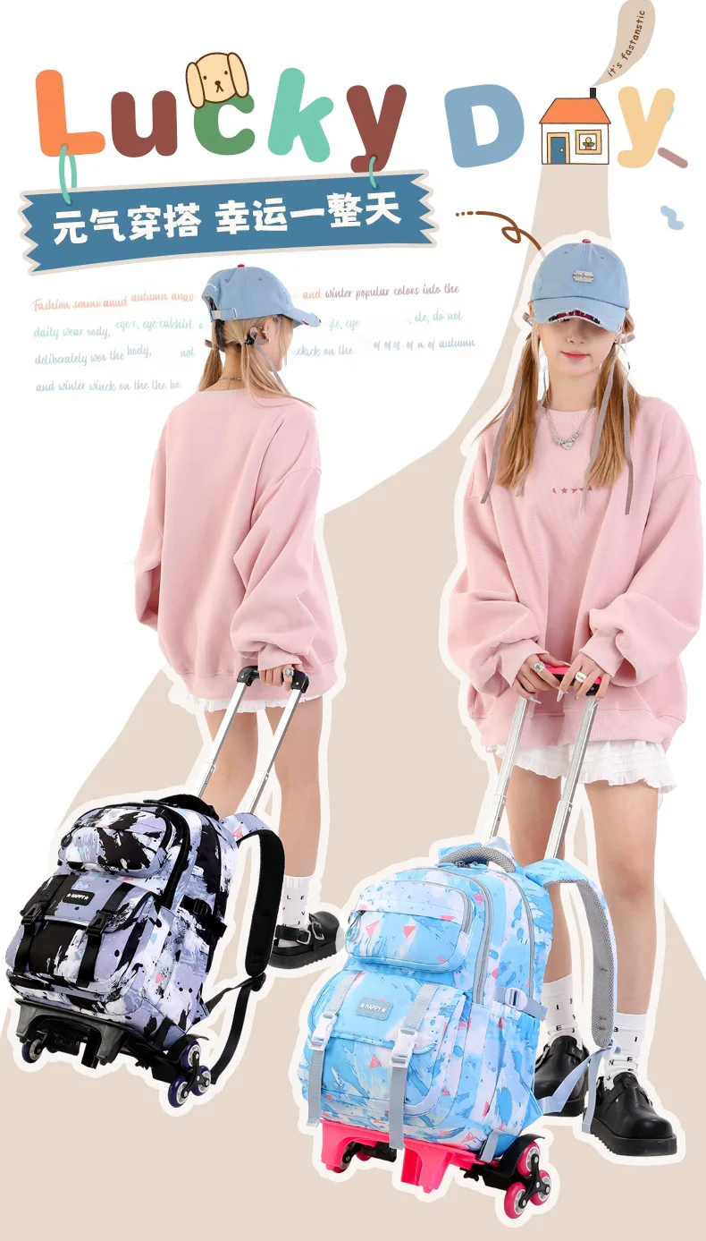 Zaino da scuola per bambini con ruote zaino rotante per ragazze zaino con ruote per studenti Trolley da scuola Trolley da viaggio