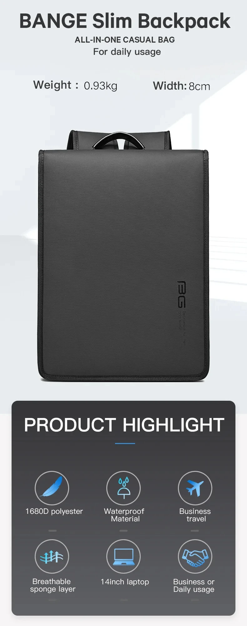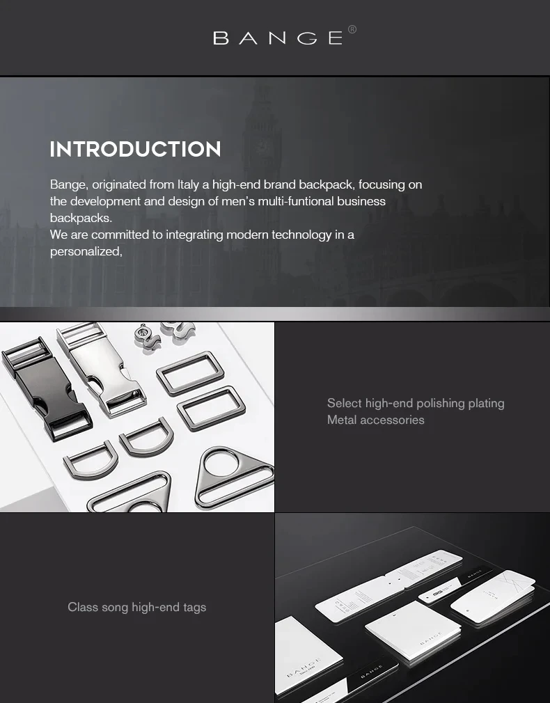 Zaino da uomo BANGE nuovo design impermeabile adatto per borsa per laptop da 15,6 pollici borsa da viaggio per uomo borsa da scuola zaino da lavoro da città