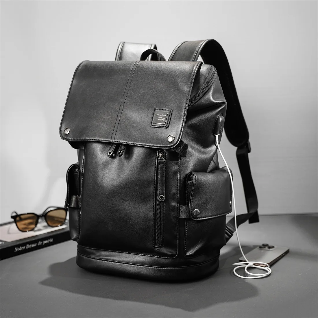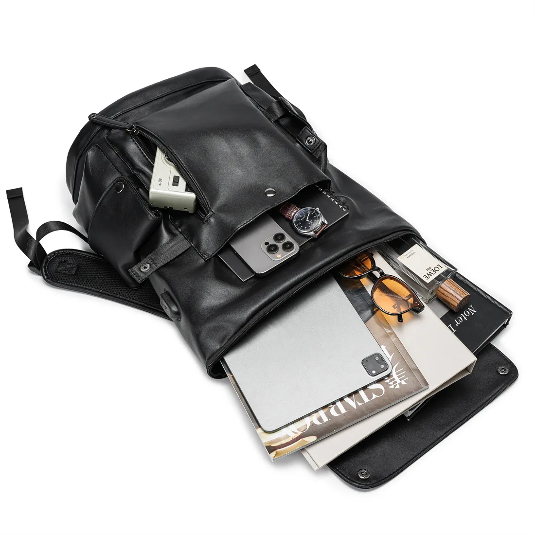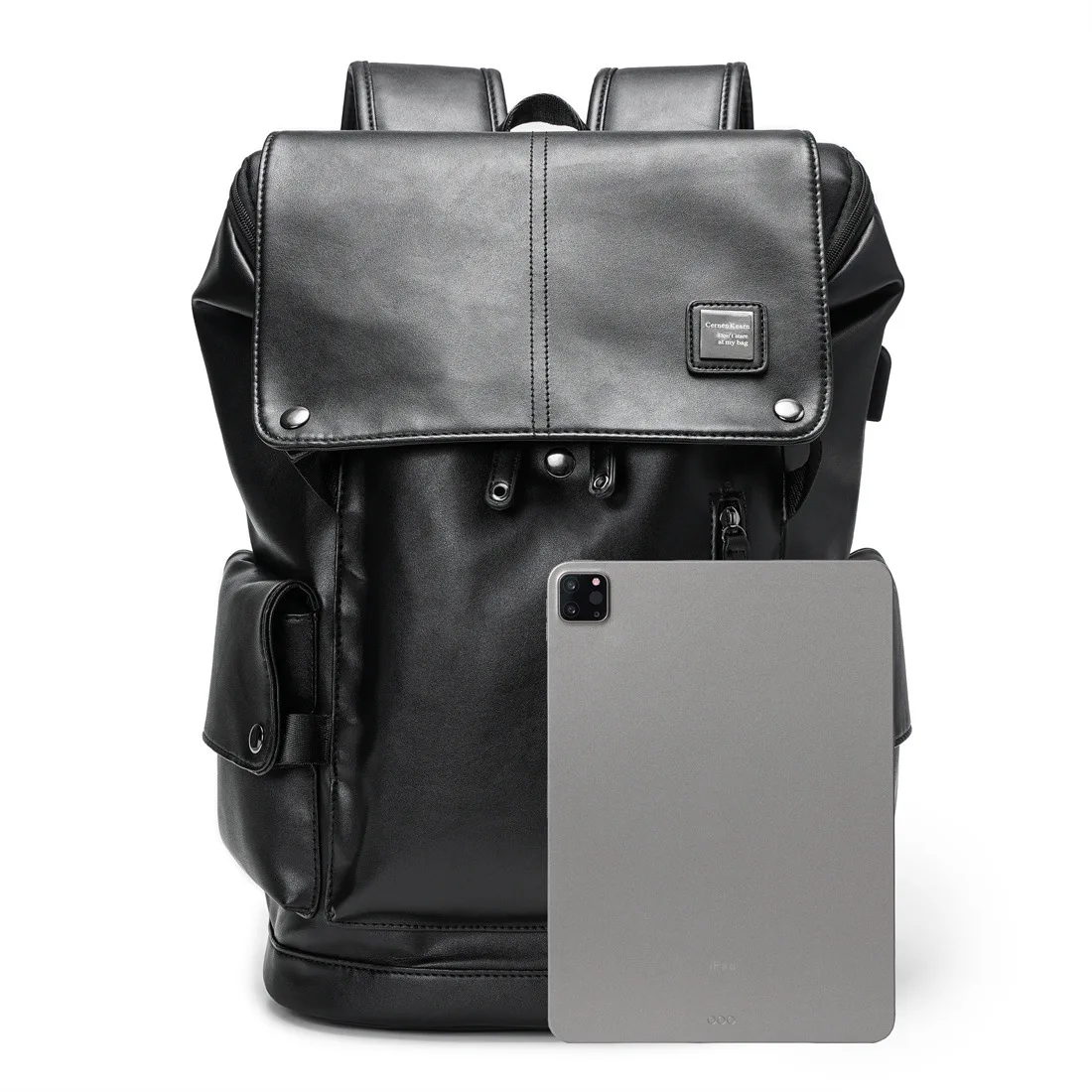 Zaino di alta qualità Zaini da uomo in pelle di lusso Zaino con ricarica USB Borsa per laptop da 14 pollici Zaino da viaggio di grande capacità
