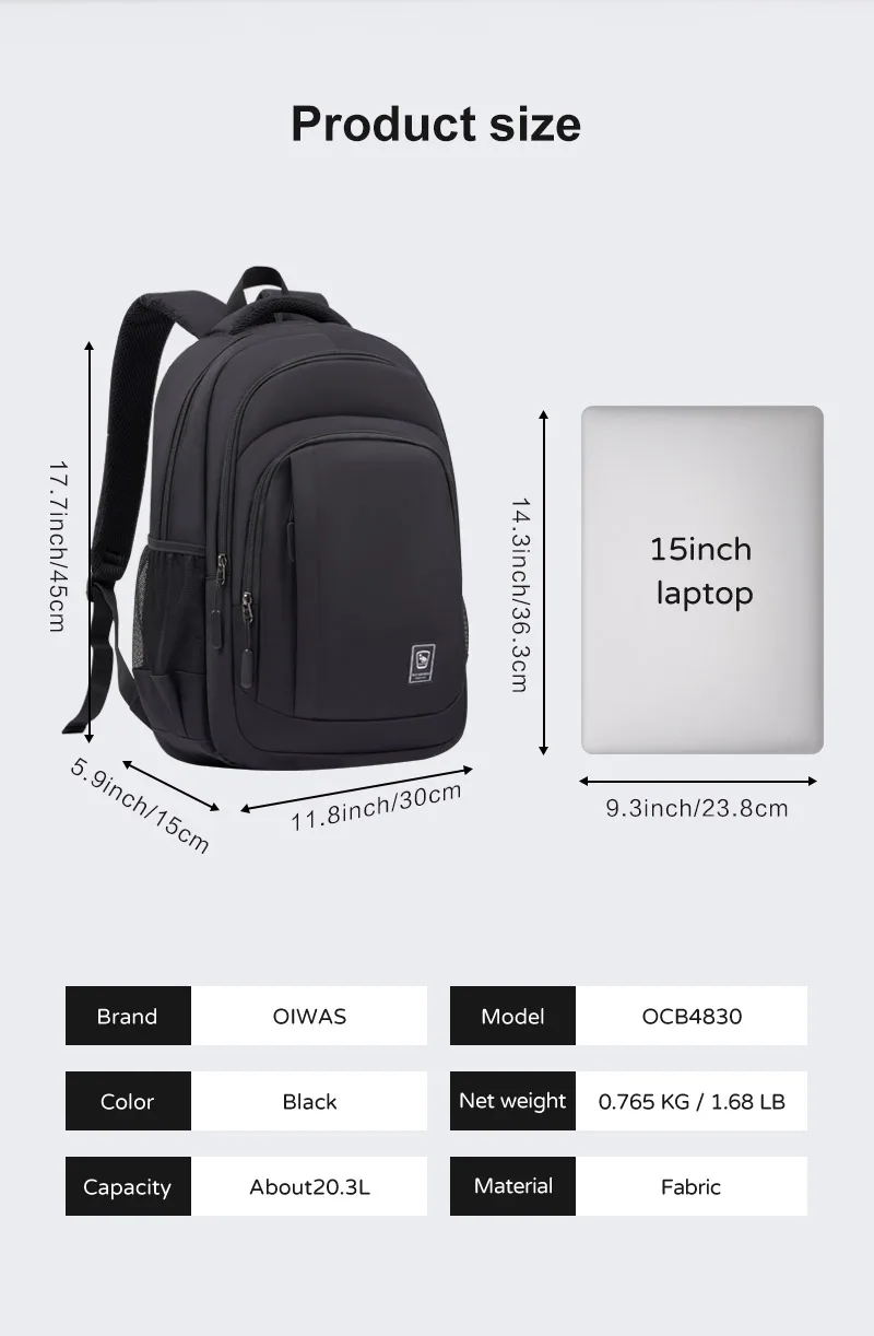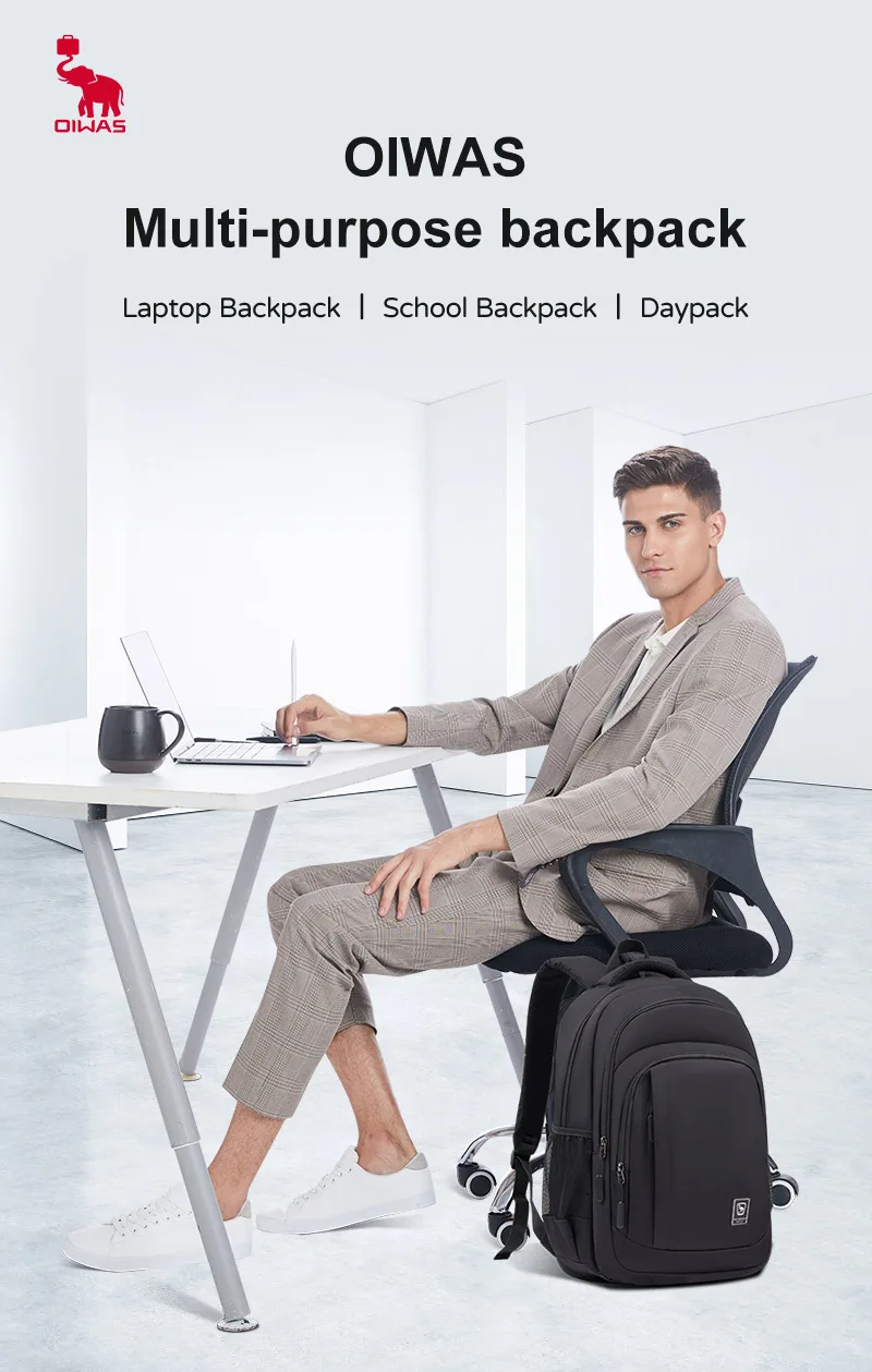 Oibas Business Bag zaino per Laptop multifunzione per la cura della colonna vertebrale borsa portatile impermeabile di grande capacità per il viaggio Bagpack