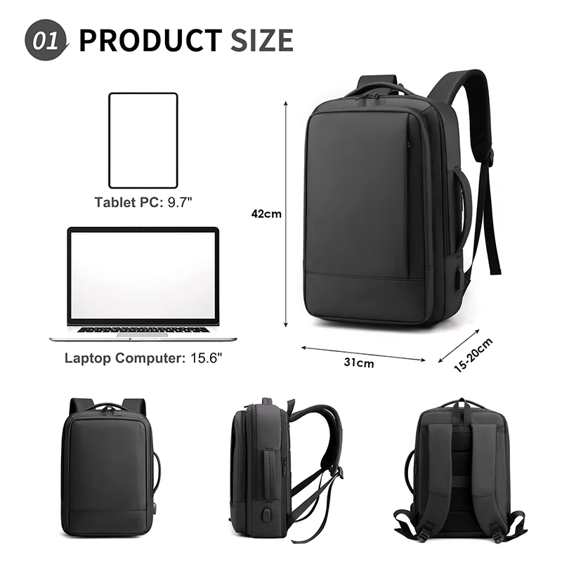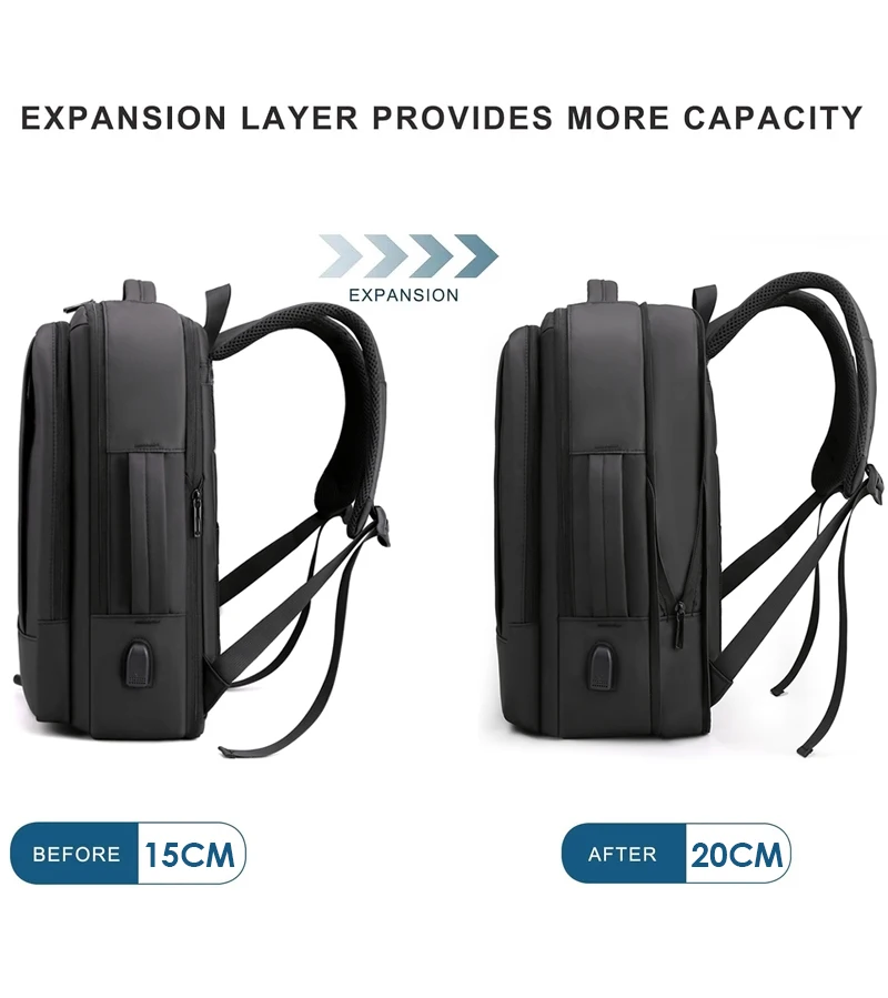 Zaino da viaggio classico Zaino da lavoro da uomo Borsa USB espandibile per la scuola Zaino alla moda impermeabile per laptop di grande capacità