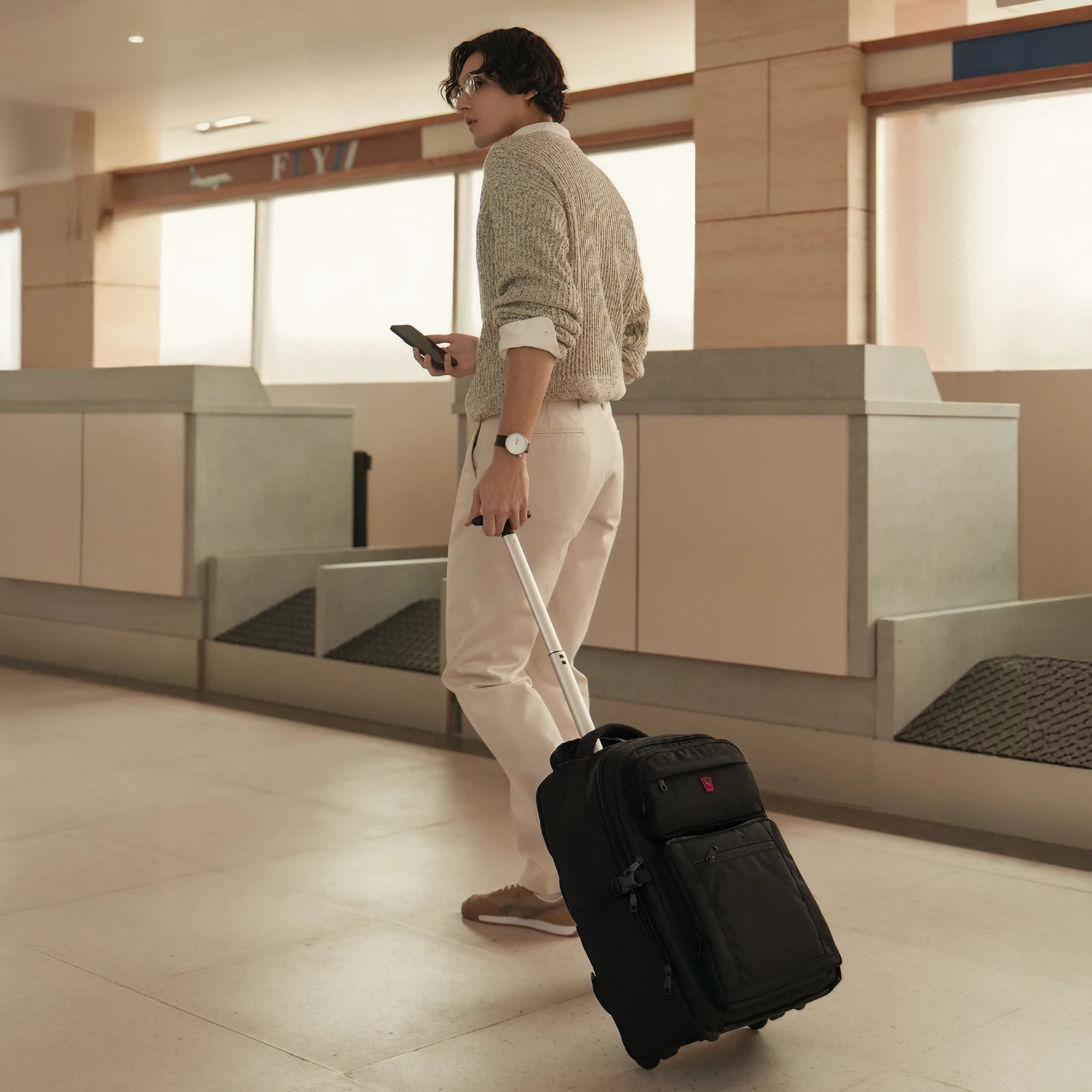 Zaino da viaggio d’affari alla moda OIWAS con funzione leva e rullo, set da viaggio di grande capacità, adatto sia per uomini che per donne Leggero e portatile: con soli 2,29 kg, questo zaino con ruote è facile da trasportare, garantendo mobilità senza ingombro. Bagaglio a mano Ricardo: set di bagagli Wesonite Softside|Grande capacità e scomparto per laptop: dotato di una capacità di 29,1 litri, questo zaino OIWAS è adatto a un laptop da 17 pollici, ideale per affari o viaggi. Opzioni di utilizzo versatili: trasformati da uno zaino a un carrello o una borsa, adattandosi facilmente a vari scenari. Materiale e costruzione durevoli: realizzato in poliestere ad alta densità, questo zaino resiste all’usura per un uso duraturo. L’asta di trazione è realizzata in materiale in lega, che è molto robusto e resistente alle cadute. Design ergonomico e comfort: presenta uno scomparto imbottito per laptop e cinghie regolabili per un comodo trasporto e rotolamento. Marca: OIWAS Numero articolo: OCB5060 Specifica: 33 * 18 * 49 cm/13 * 7,1 * 19,3 pollici (lunghezza totale del tirante 97 cm/38,1 pollici) Capacità: circa 30 litri Peso: circa 2,28 kg Scomparto digitale: laptop da 17 pollici Materiale del tessuto: tessuto Materiale interno: tessuto Colore: nero Metodo di apertura e chiusura: cerniera Come usare: Carrello / Palmare / Spalle Il pacchetto include: 1 borsa per trolley/zaino