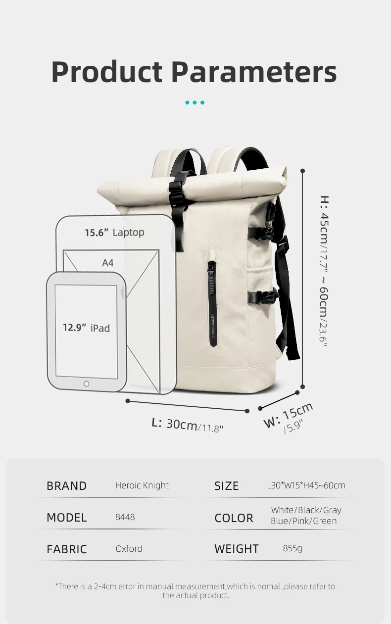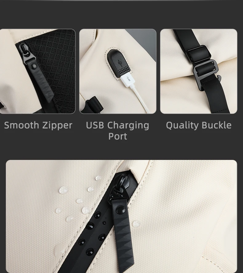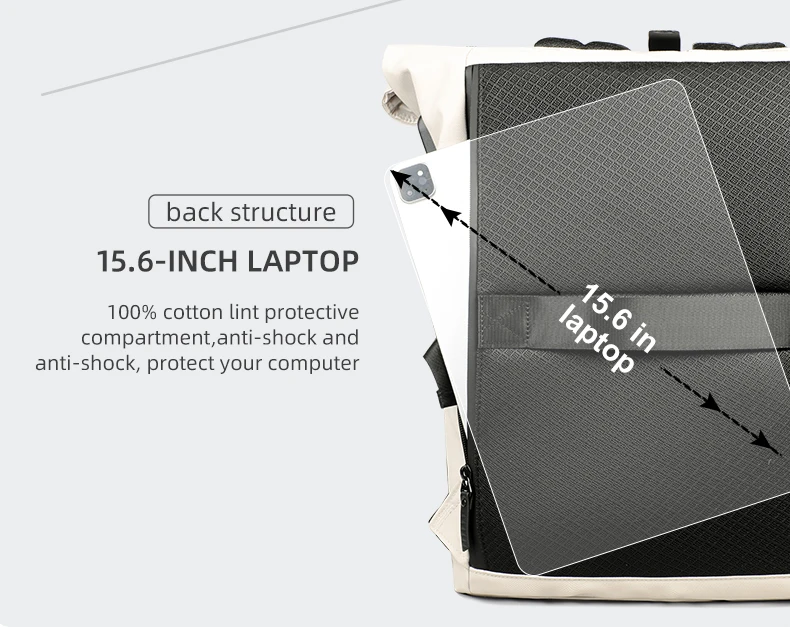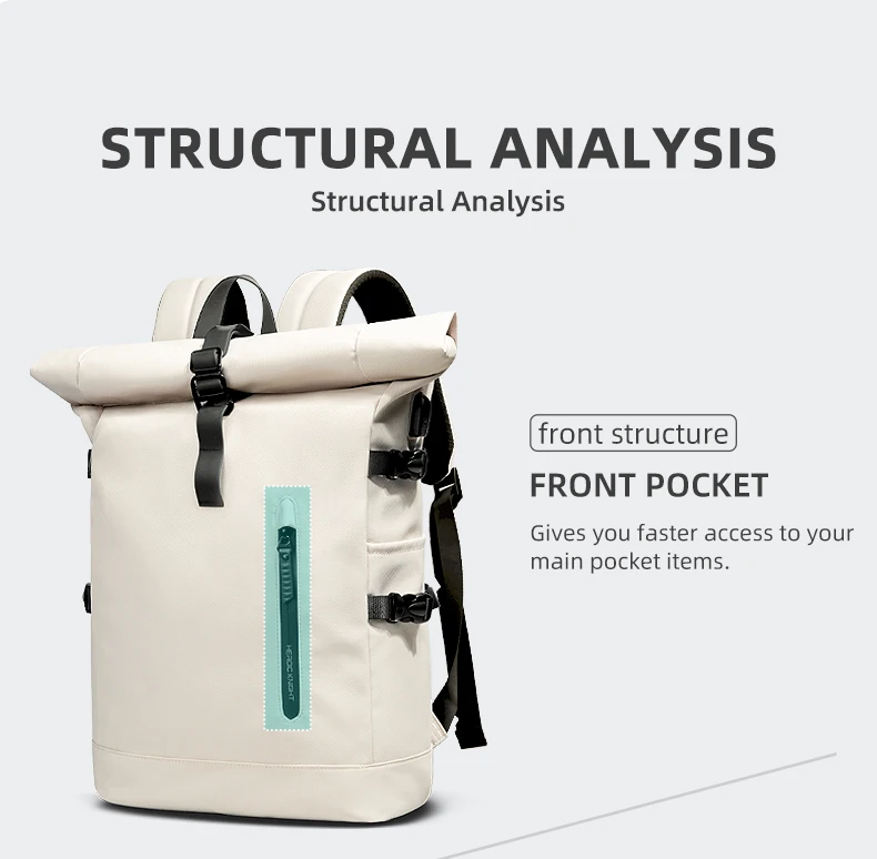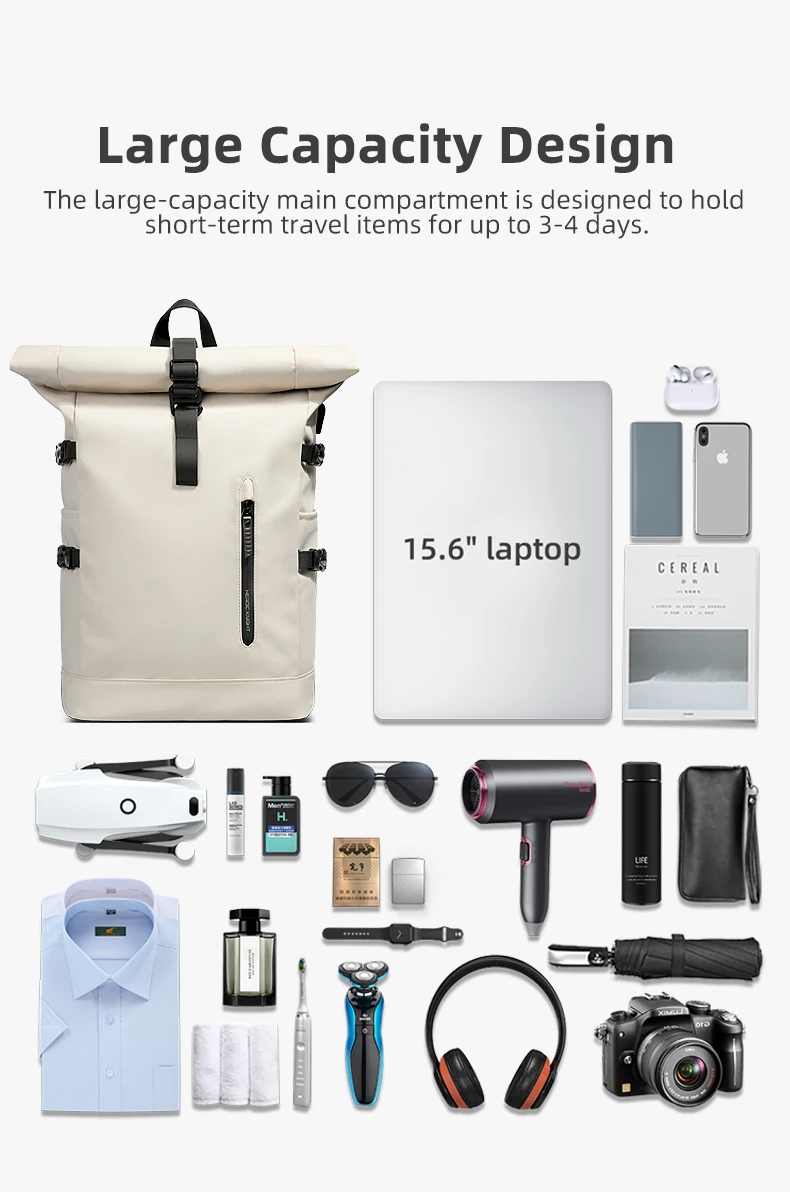 L’esclusivo design roll top non solo rende lo zaino più alla moda, ma semplifica anche la regolazione della capacità dello zaino per soddisfare le diverse esigenze di viaggio.