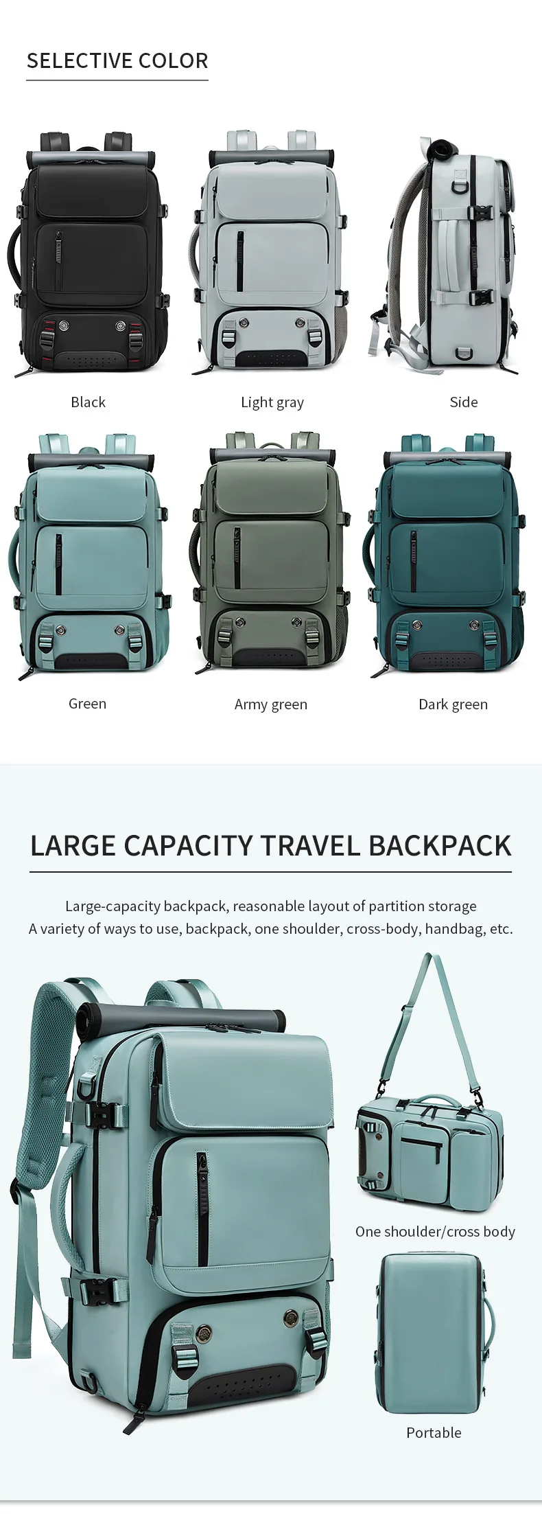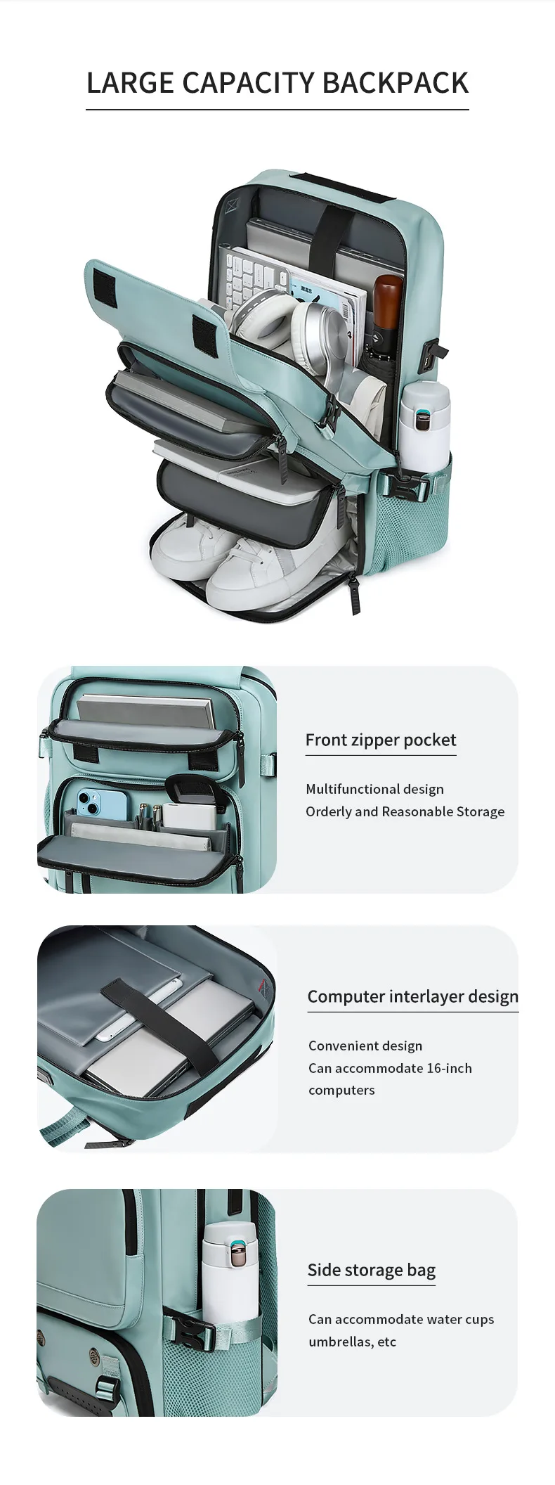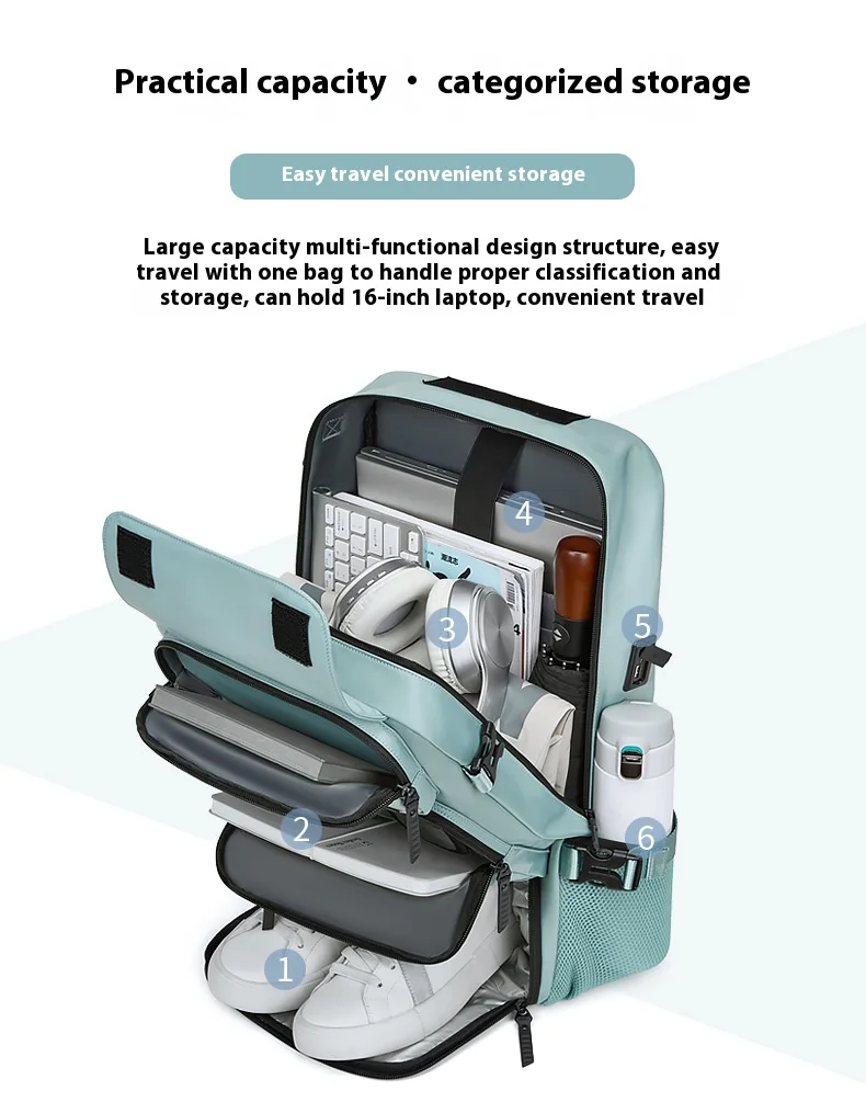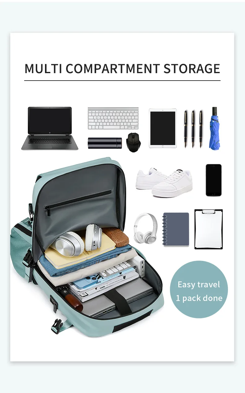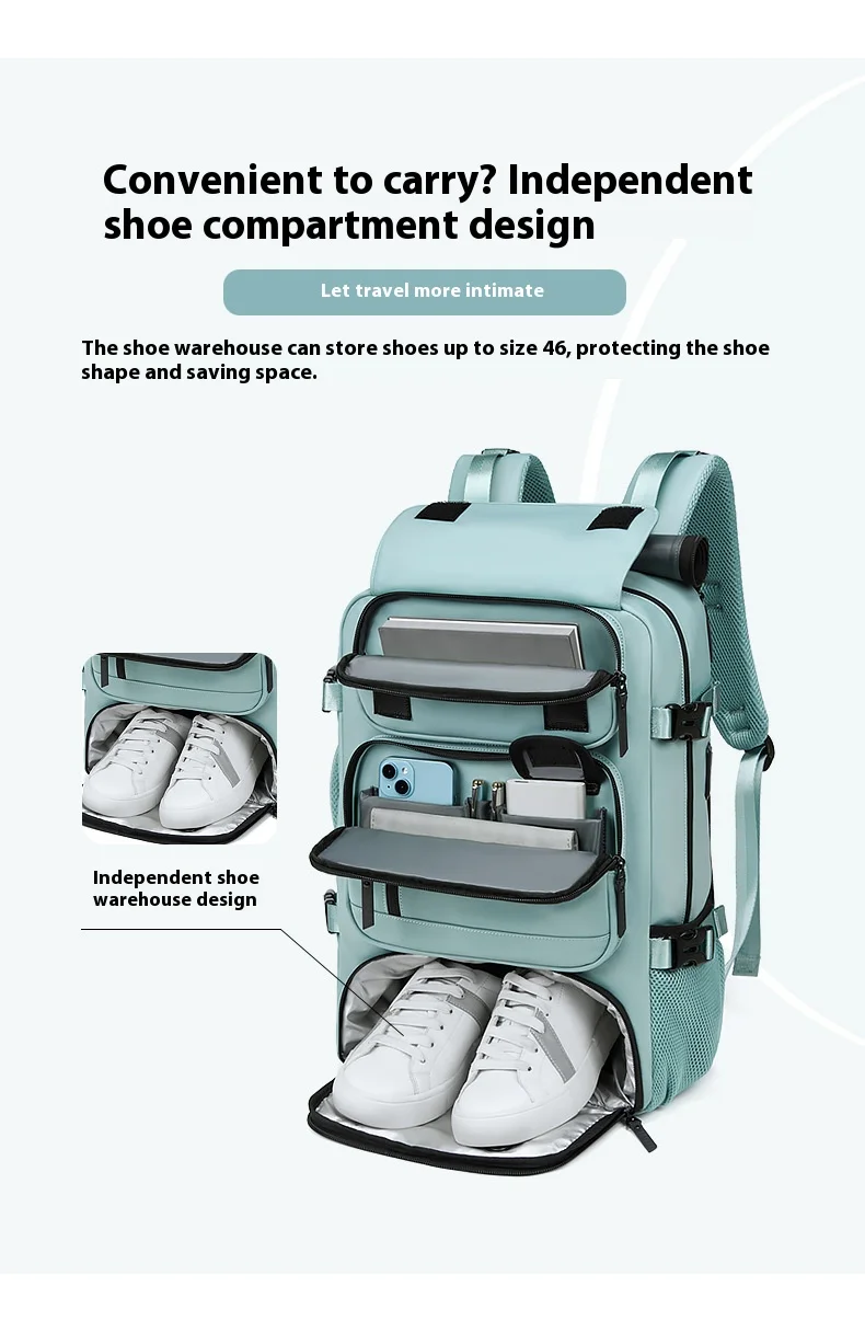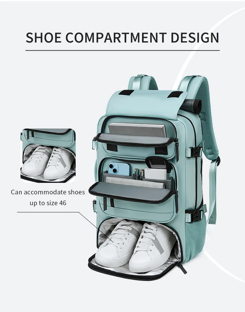 Zaino da viaggio grande Zaino da tavolo Ricarica USB Zaino da viaggio impermeabile per esterni Scomparto per scarpe indipendente