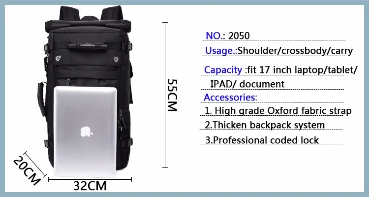 Zaino da viaggio impermeabile KAKA 50L uomo donna multifunzione 17.3 zaini per Laptop borsa per bagagli da esterno maschile mochilas migliore qualità