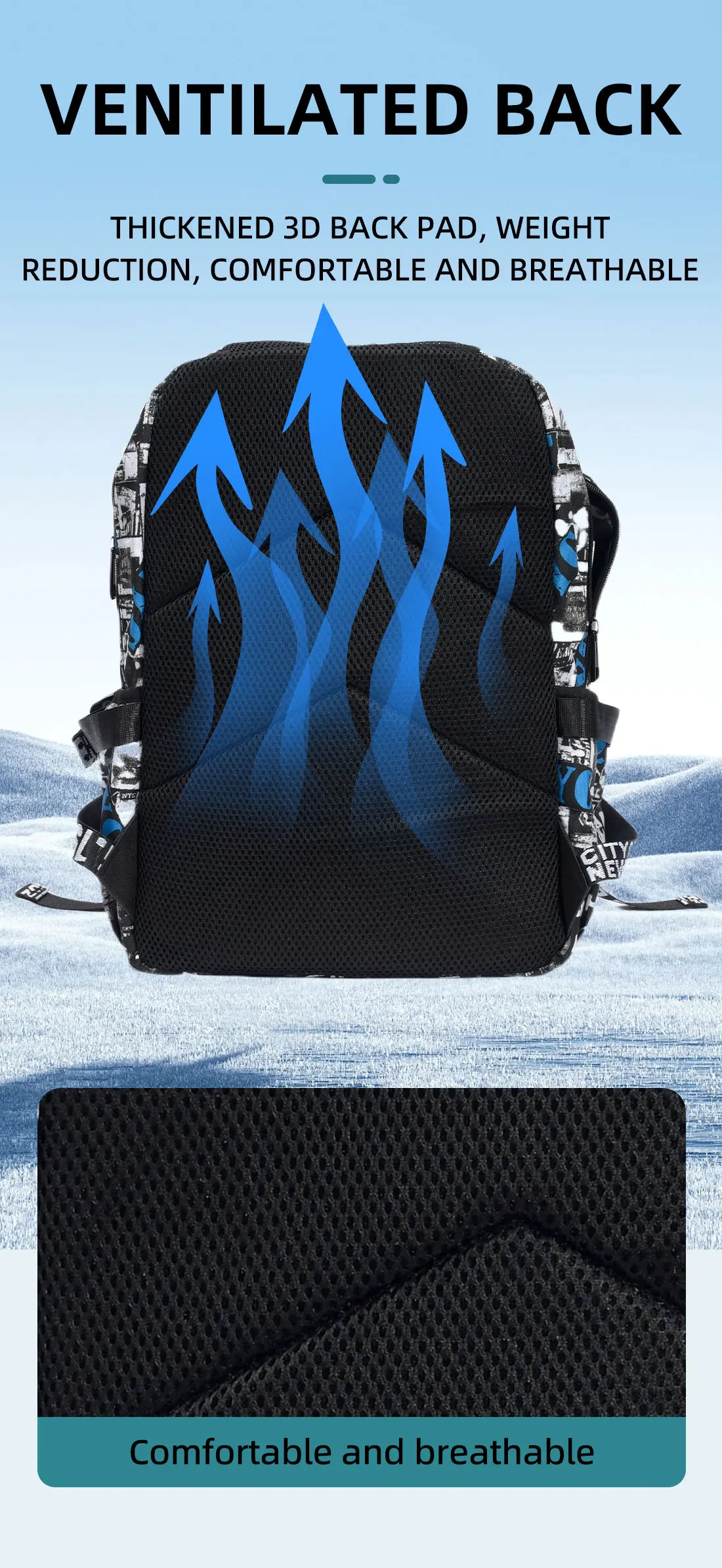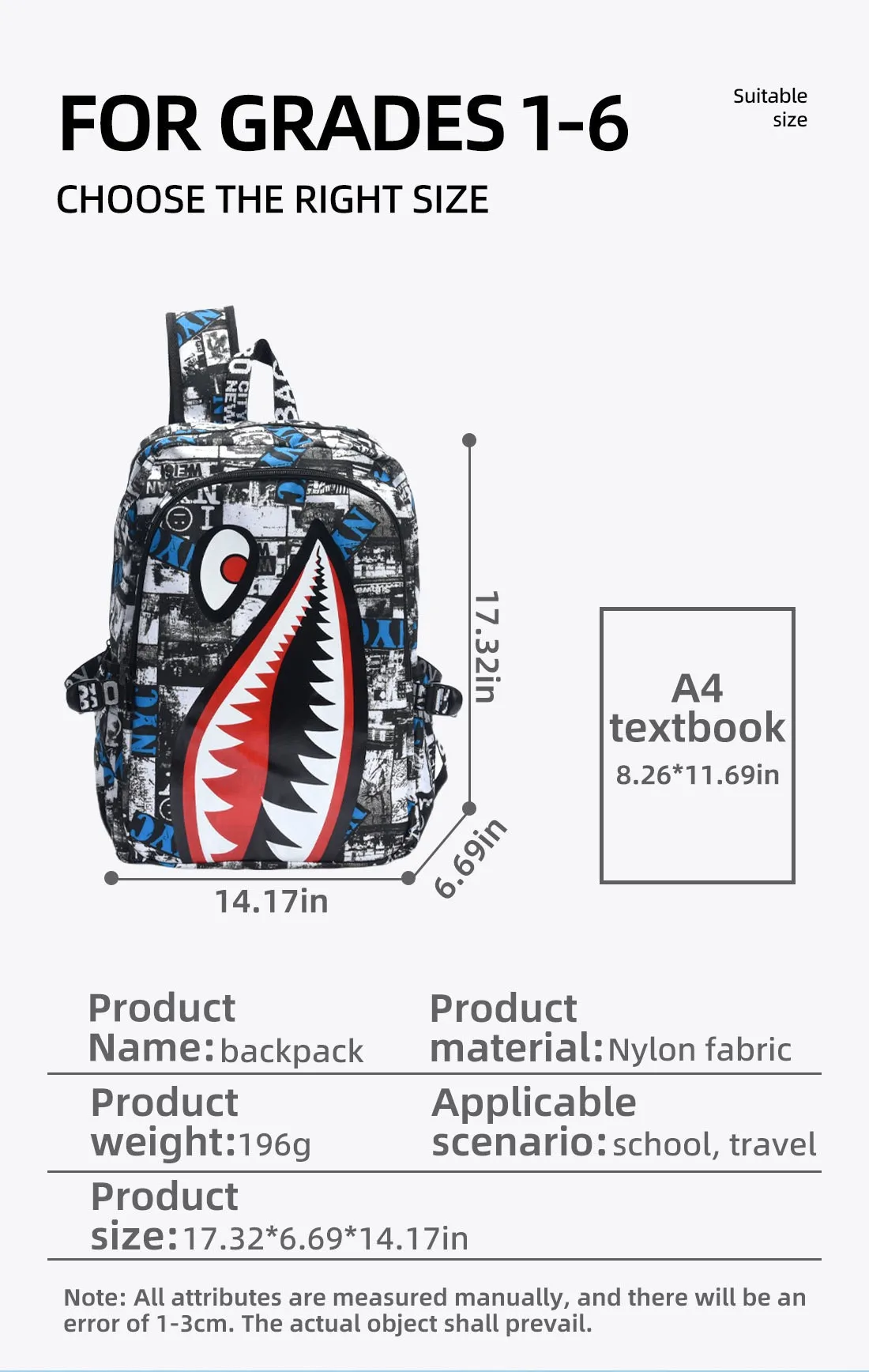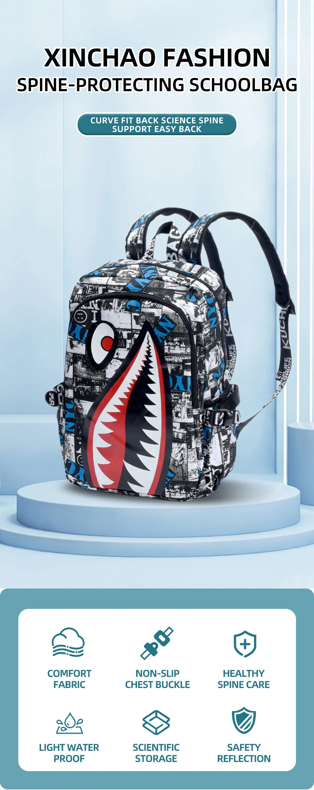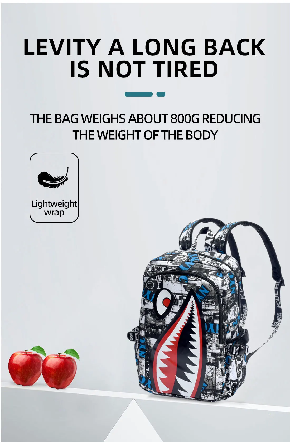 Zaino dal design alla moda con design a forma di squalo Zaino da uomo impermeabile e durevole Zaino per adolescenti di grandi dimensioni con ricarica USB Borsa a tracolla maschile