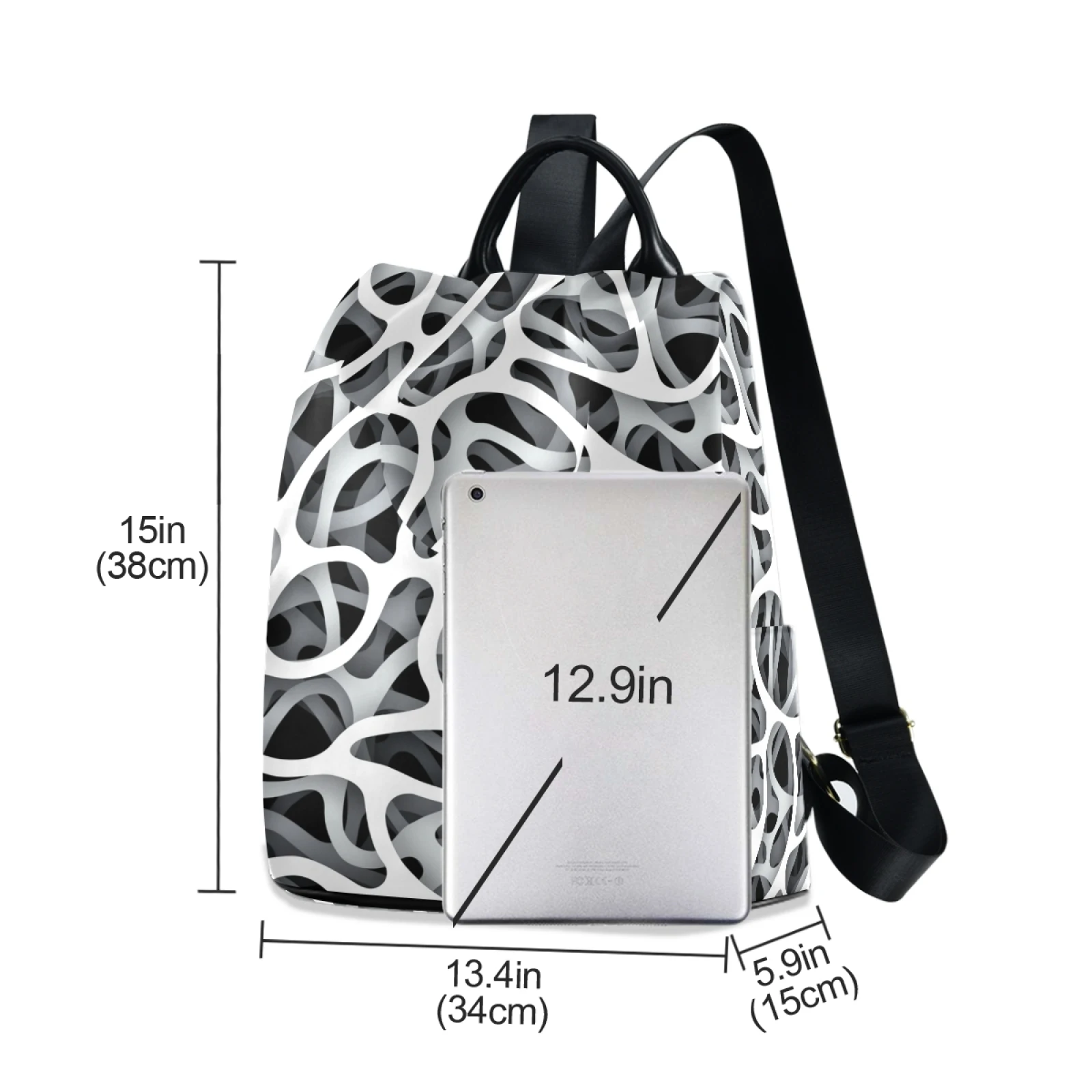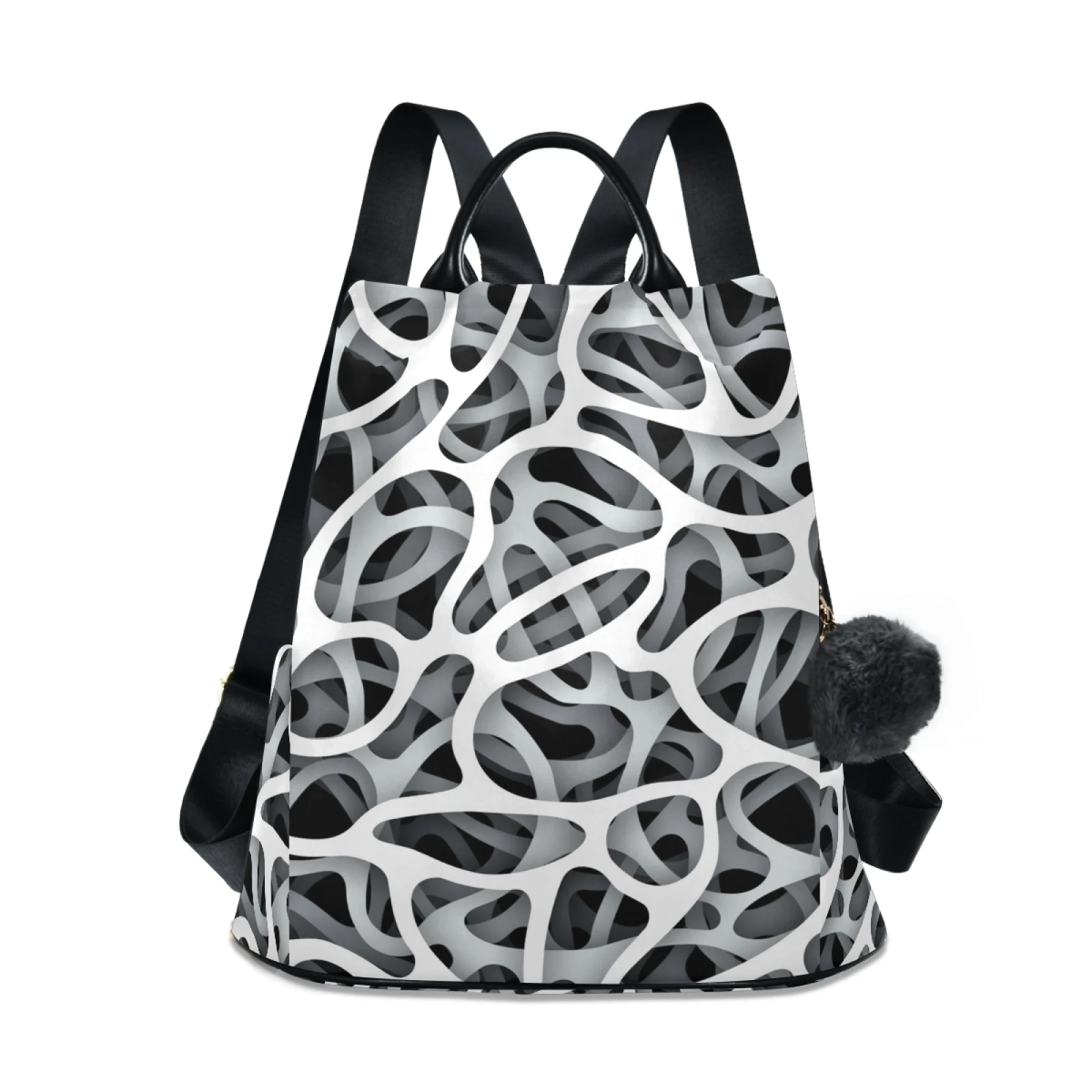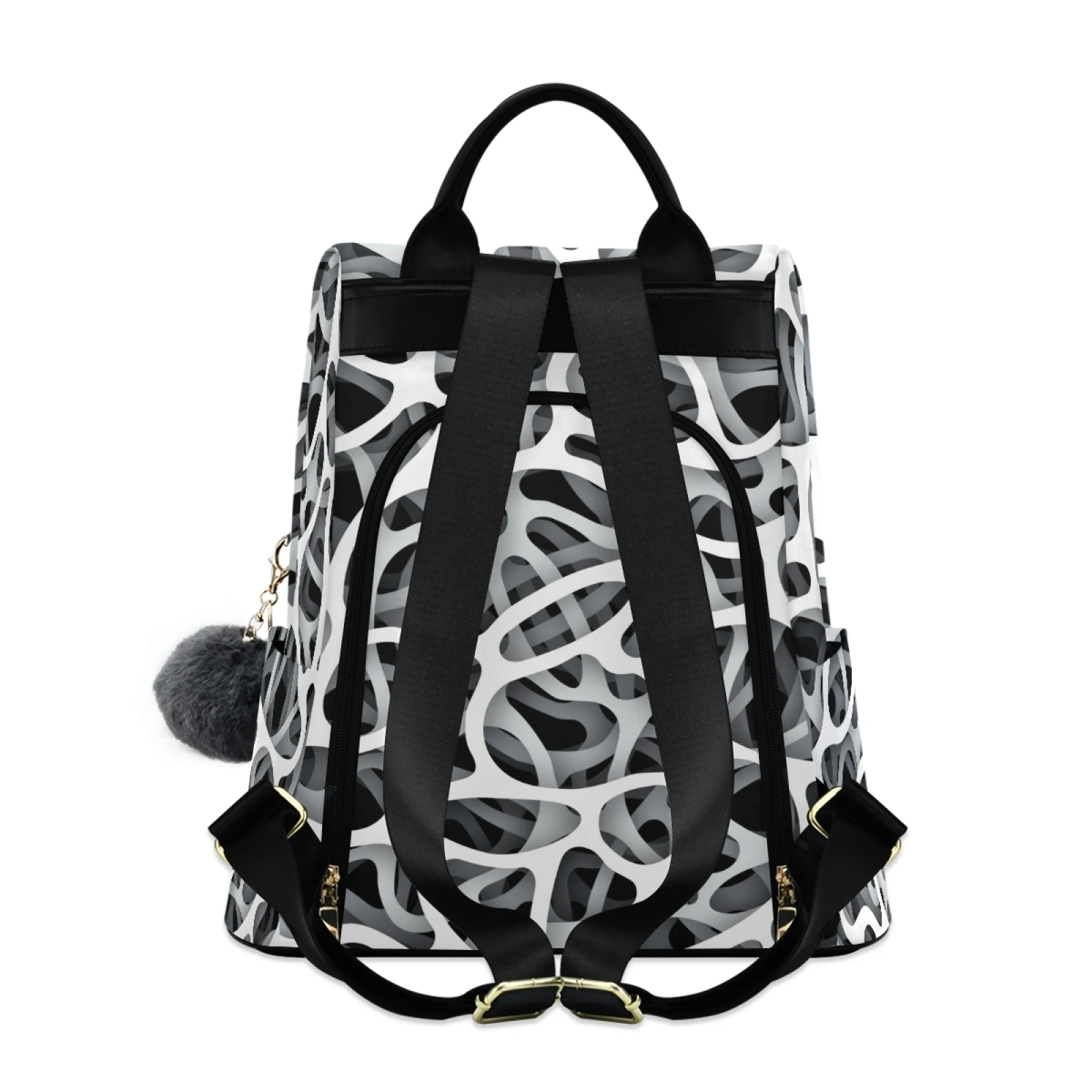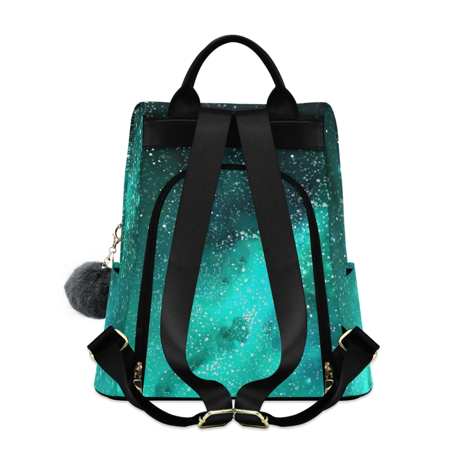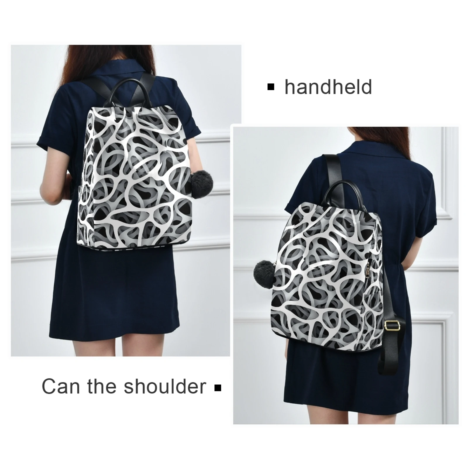:The body of the bag is fully printed, and the front is not divided, which can fully display the printed drawings; the main bag of the bag is zipped on the back, and there are two small pockets and a zipper bag inside the main bag; there are a zipper bag and a plug pocket on both sides of the bag, so the storage space is various, and the back opening main bag is anti-theft. Leather handle, high quality heavy strap, exquisite pull head and fastener, and a plush ball key chain.
