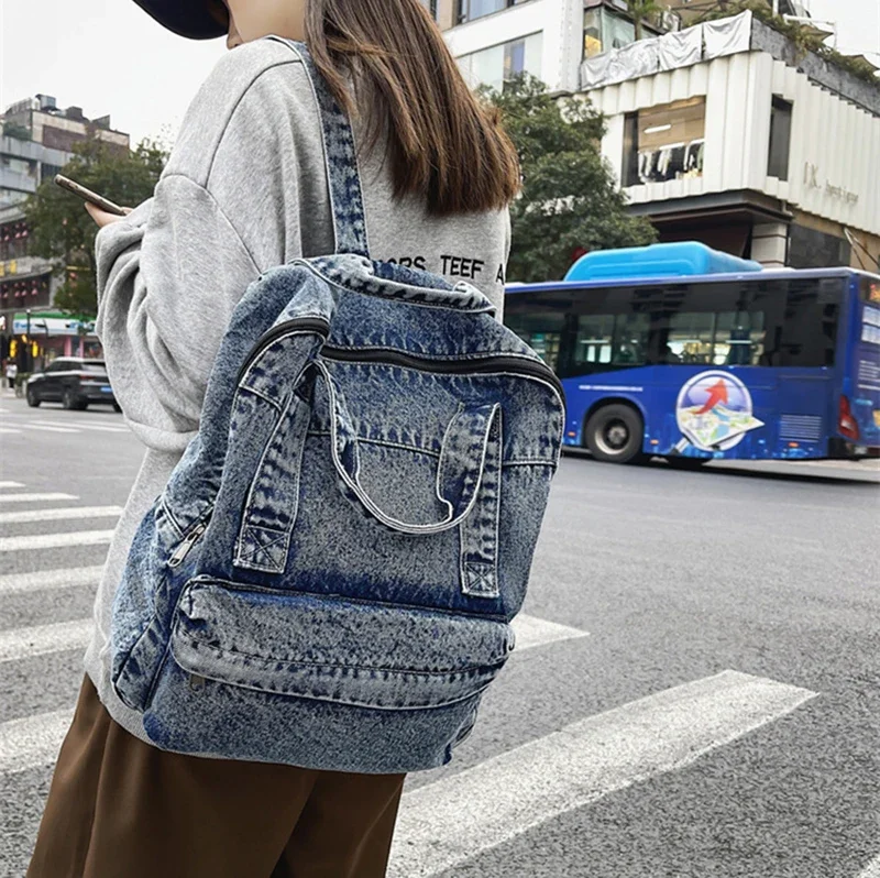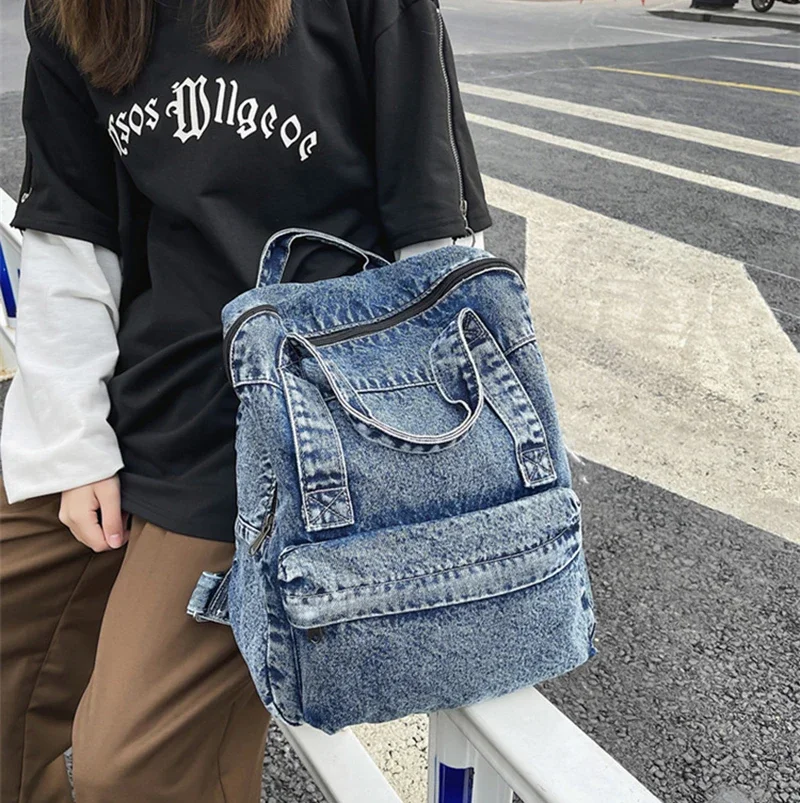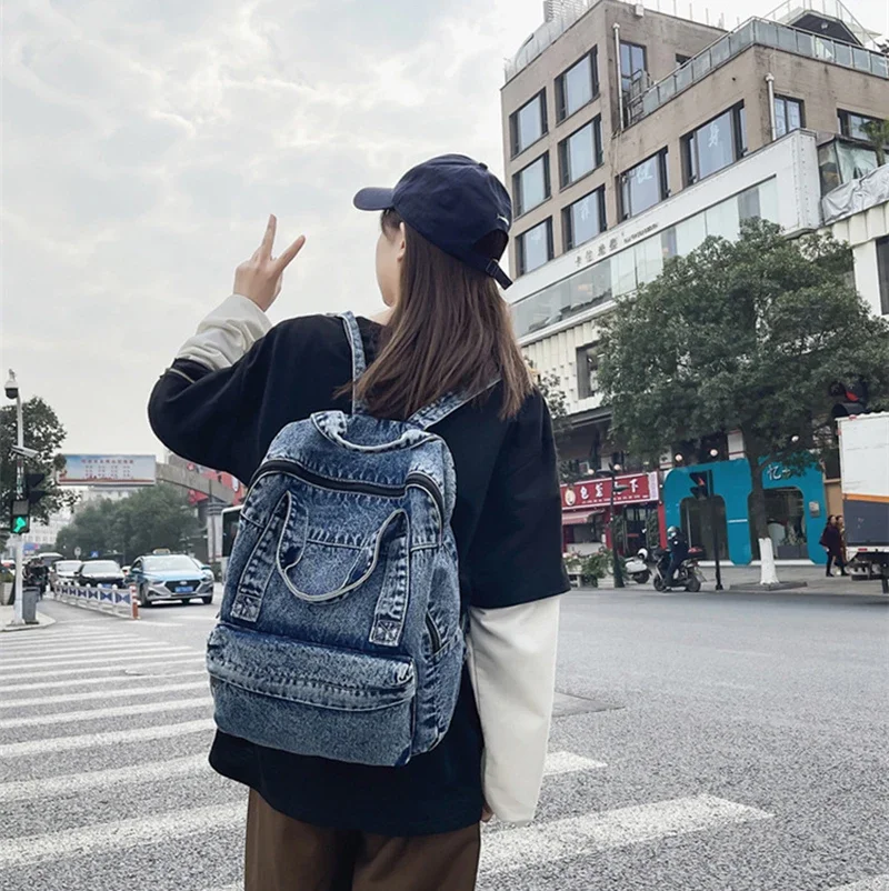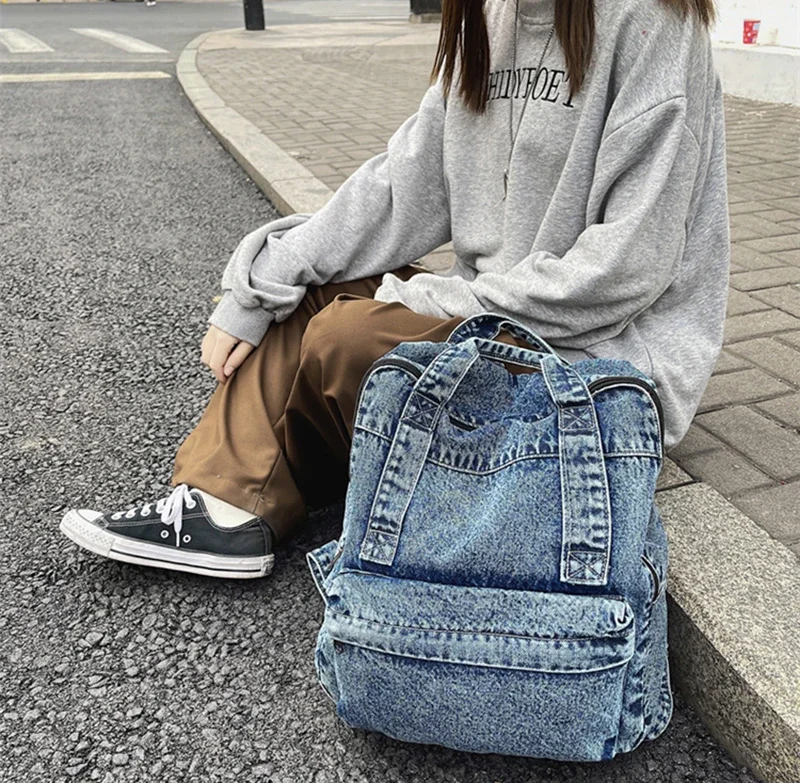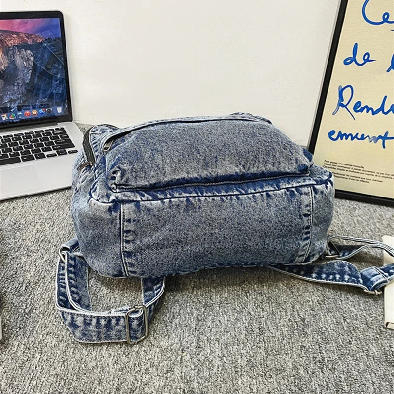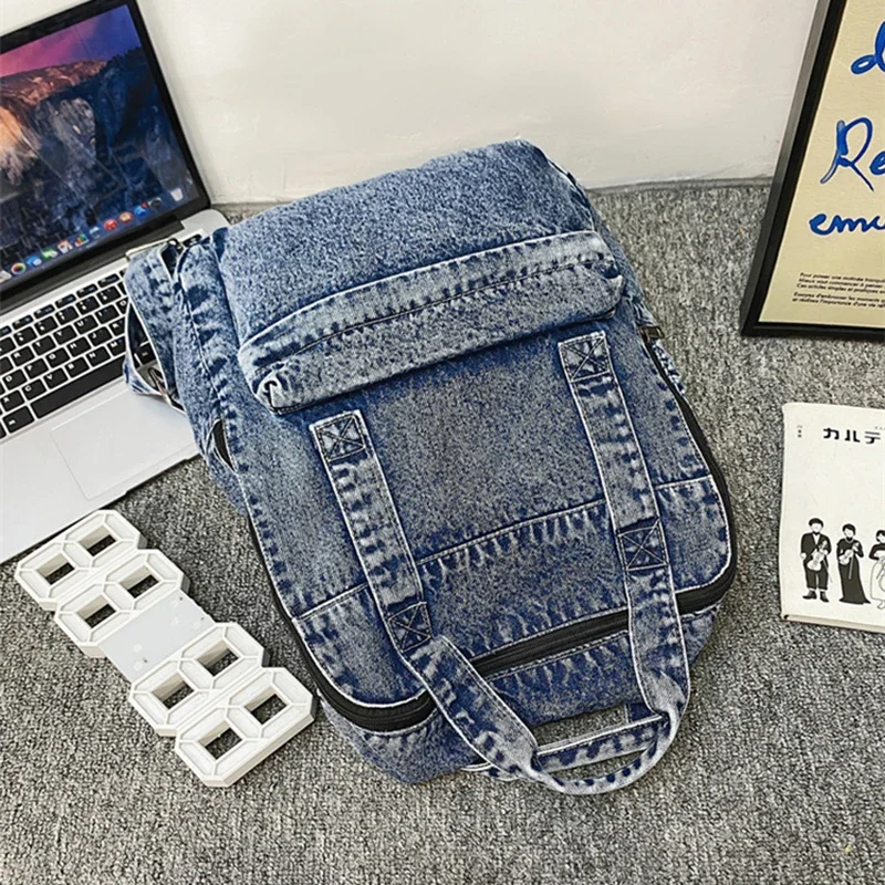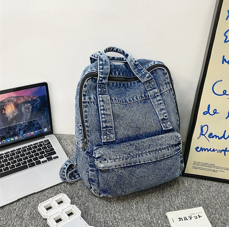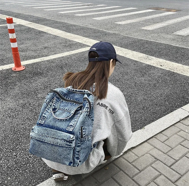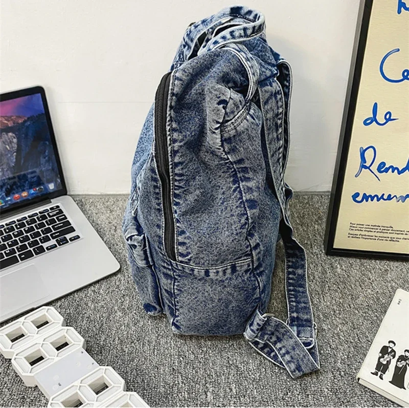 Zaino in denim per donna e uomo Zaino per laptop casual di grande capacità Borse da scuola per studenti universitari Borsa da viaggio blu moda libro