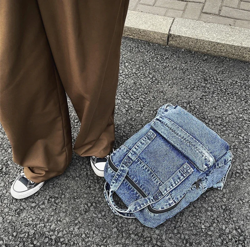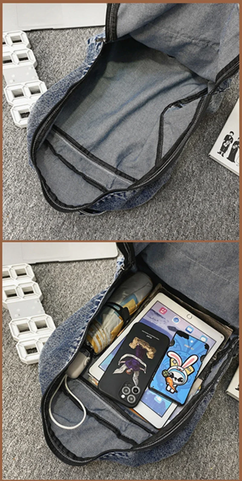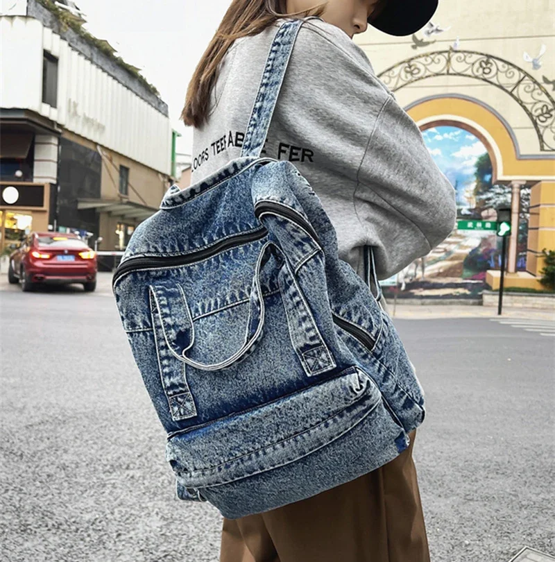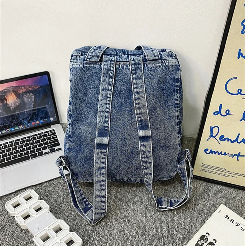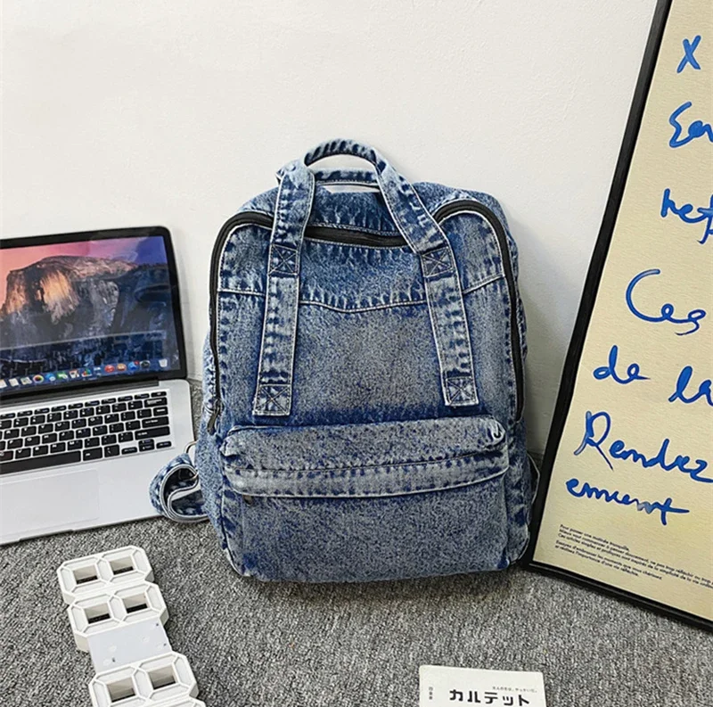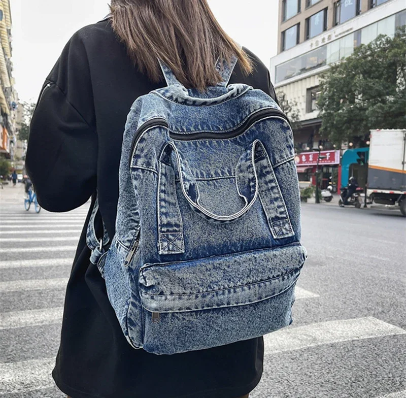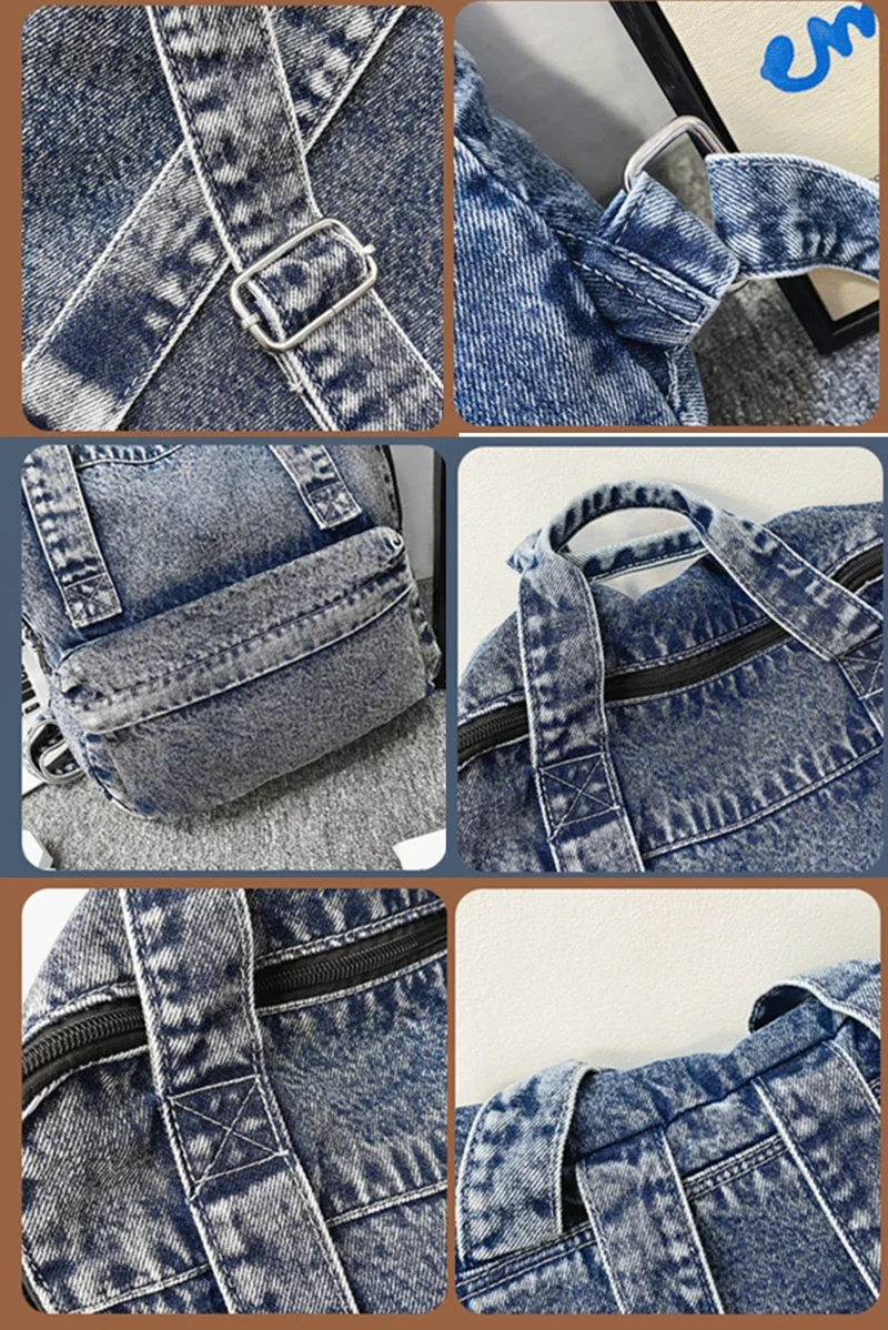 Zaino in denim per donna e uomo Zaino per laptop casual di grande capacità Borse da scuola per studenti universitari Borsa da viaggio blu moda libro