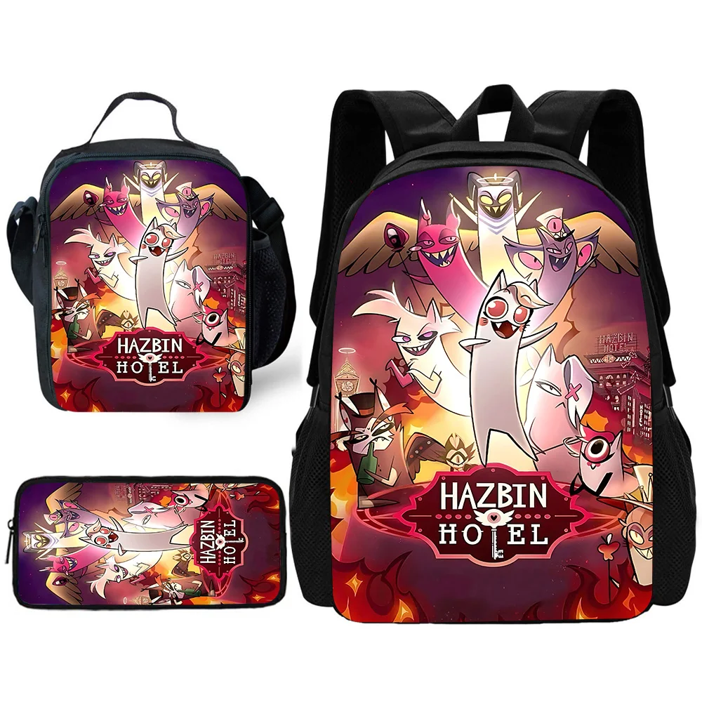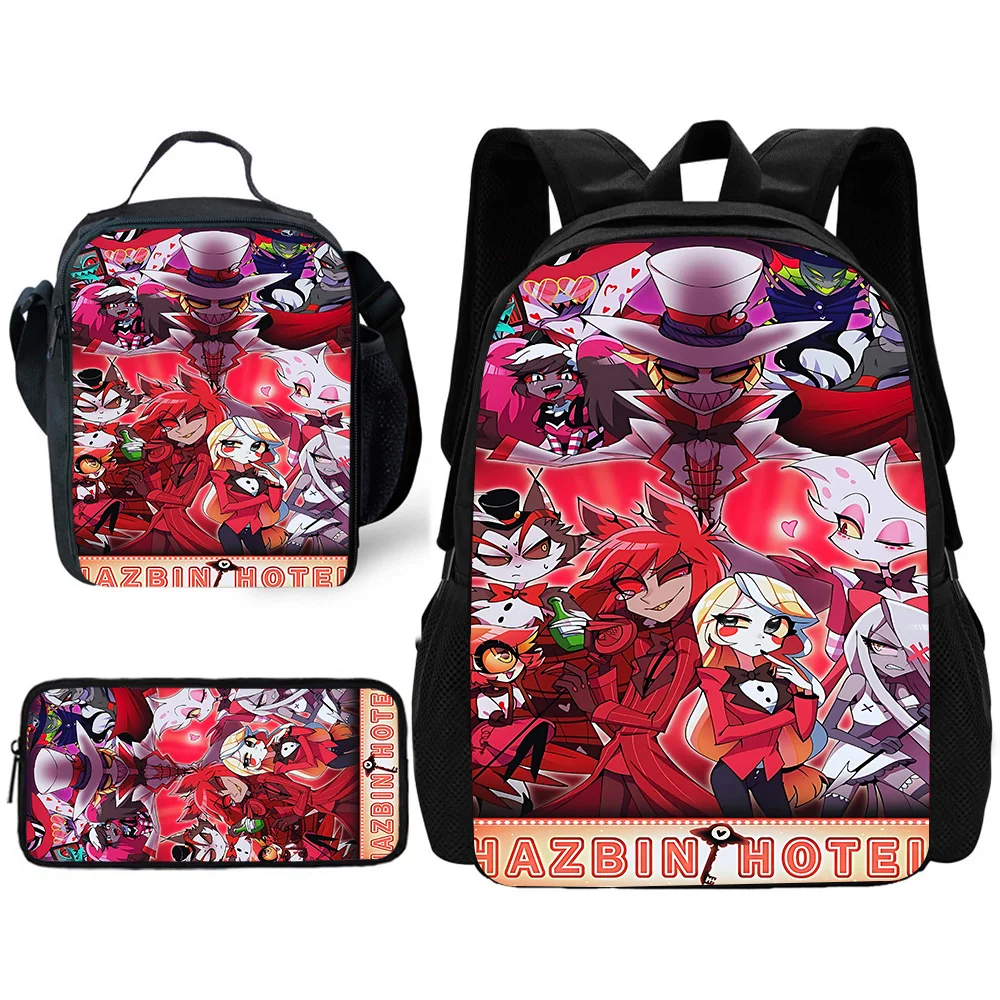 Zaino per hotel H-Hazbins per bambini con cartoni animati per la scuola con borse per il pranzo, borse per matite, borse per la scuola per ragazzi e ragazze, miglior regalo