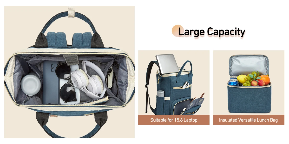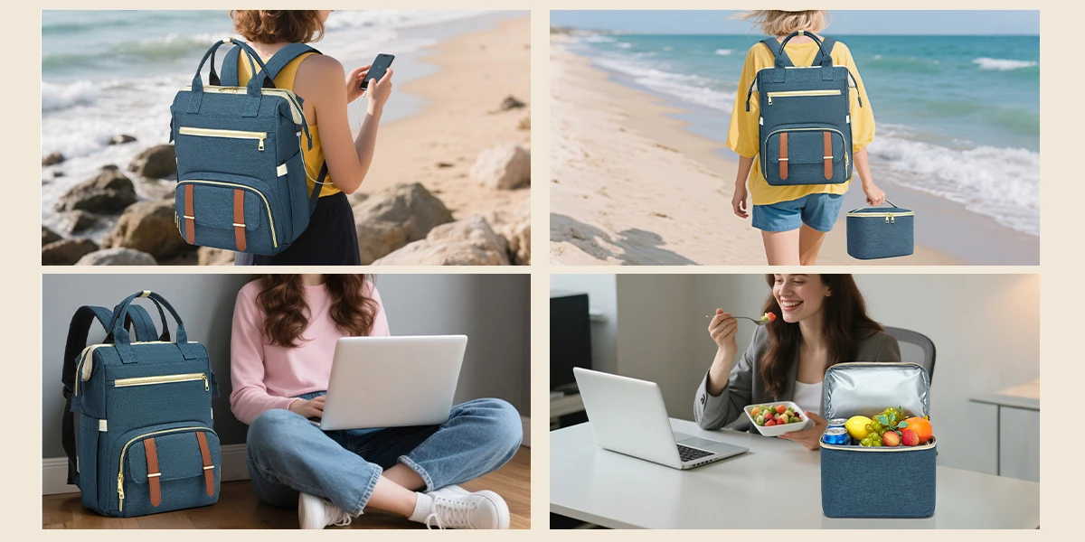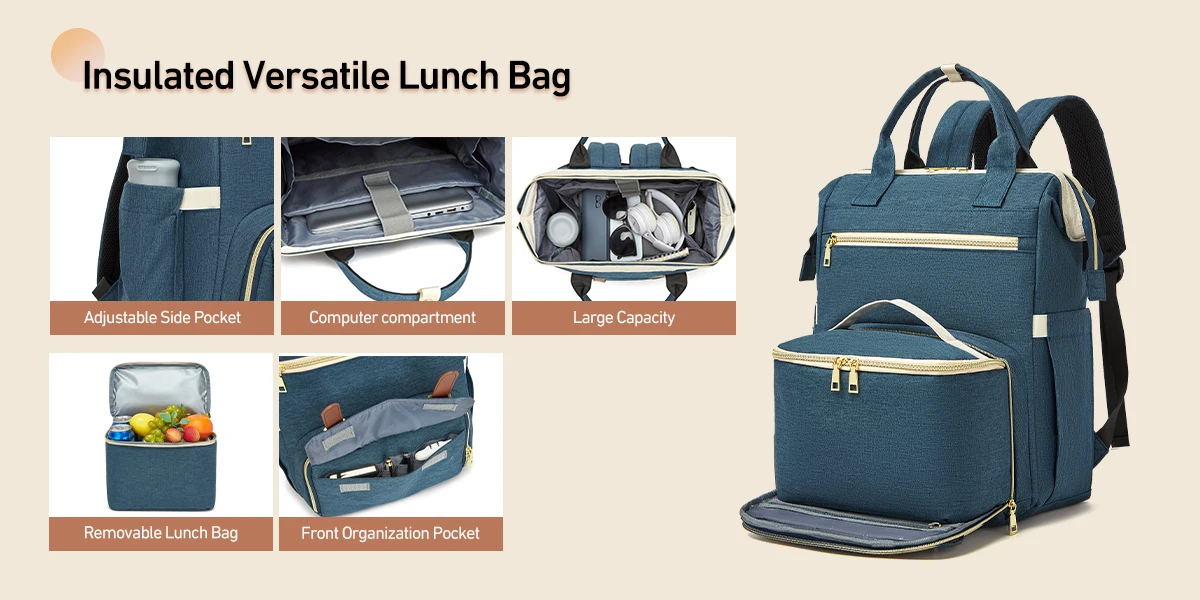 Zaino per il pranzo con scomparto termico isolato Borsa per laptop da 15,6 pollici Porta di ricarica USB per borsa da lavoro per insegnanti da lavoro per donne