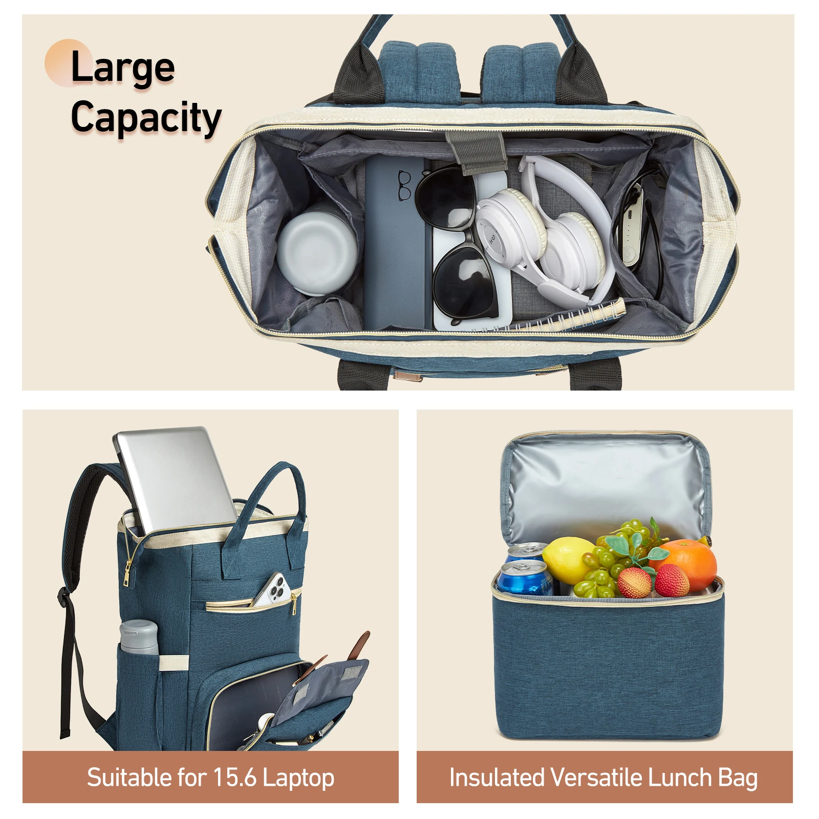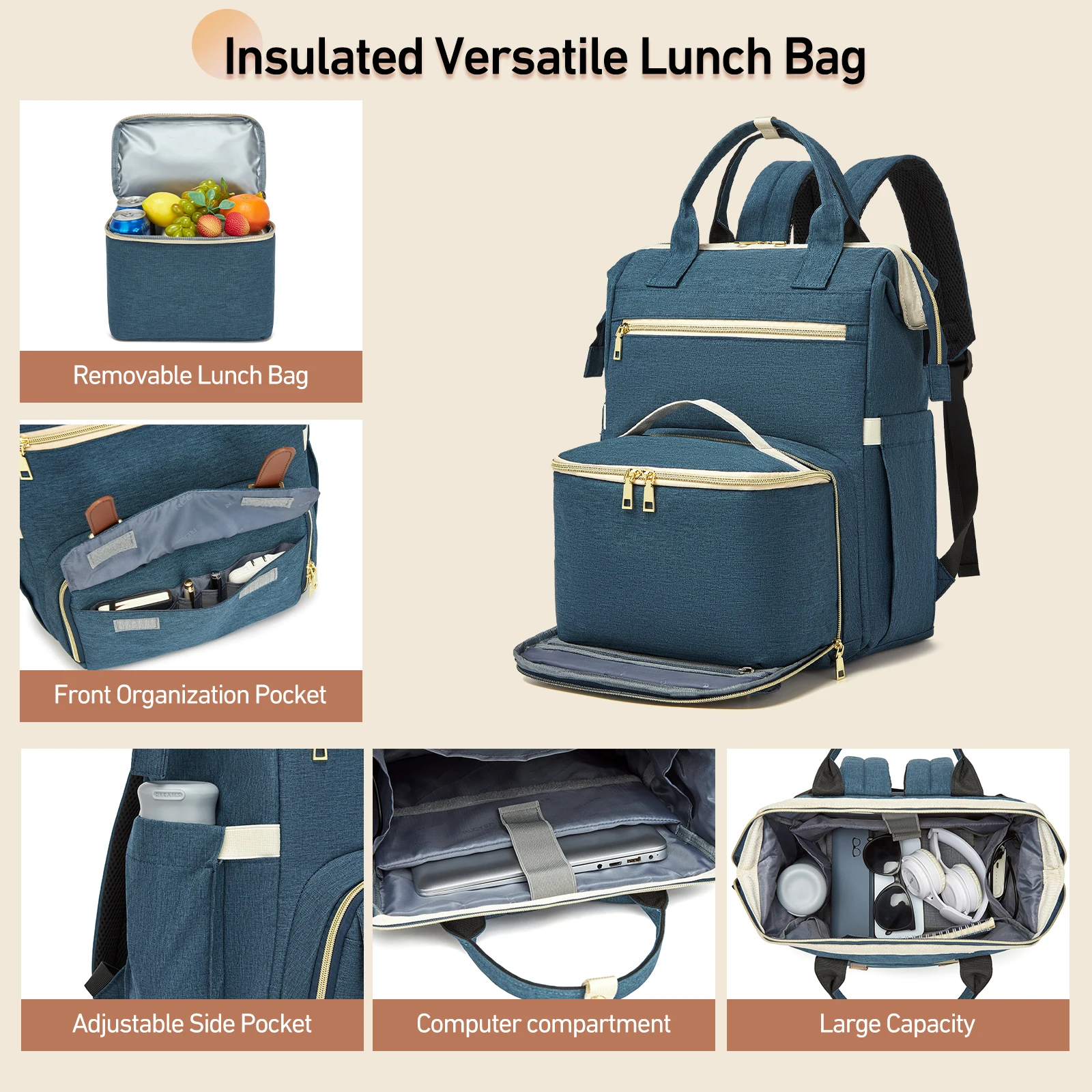 Zaino per il pranzo con scomparto termico isolato Borsa per laptop da 15,6 pollici Porta di ricarica USB per borsa da lavoro per insegnanti da lavoro per donne