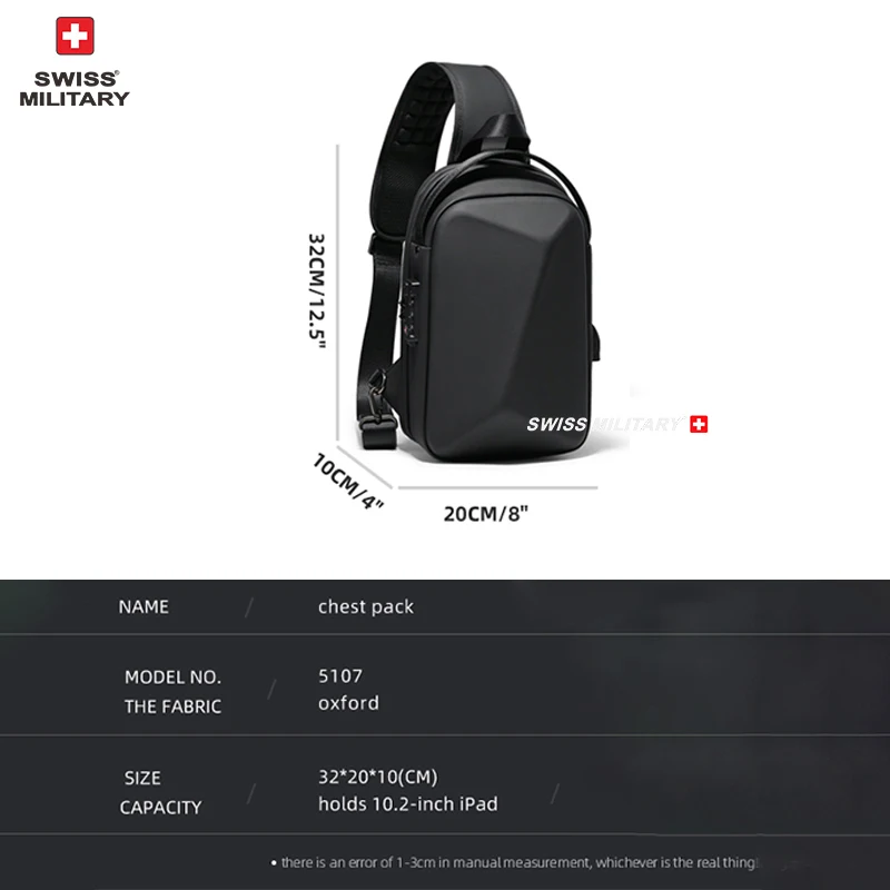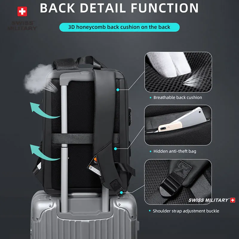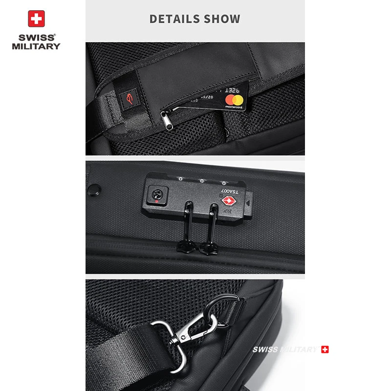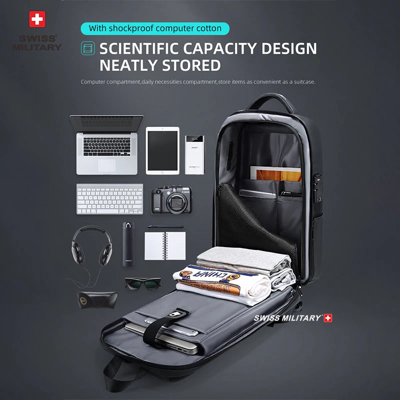Zaino per laptop di marca militare svizzera Zaino antifurto impermeabile casual Zaino da viaggio per uomo d’affari con ricarica USB MochilaMarca: SWISS MILITARE Dimensioni: zaino: 45 * 32 * 21 cm petto: 32 * 20 * 10 cm Colore: NeroImballaggio: Imballato Peso: 0,6 kg/1,3 kg